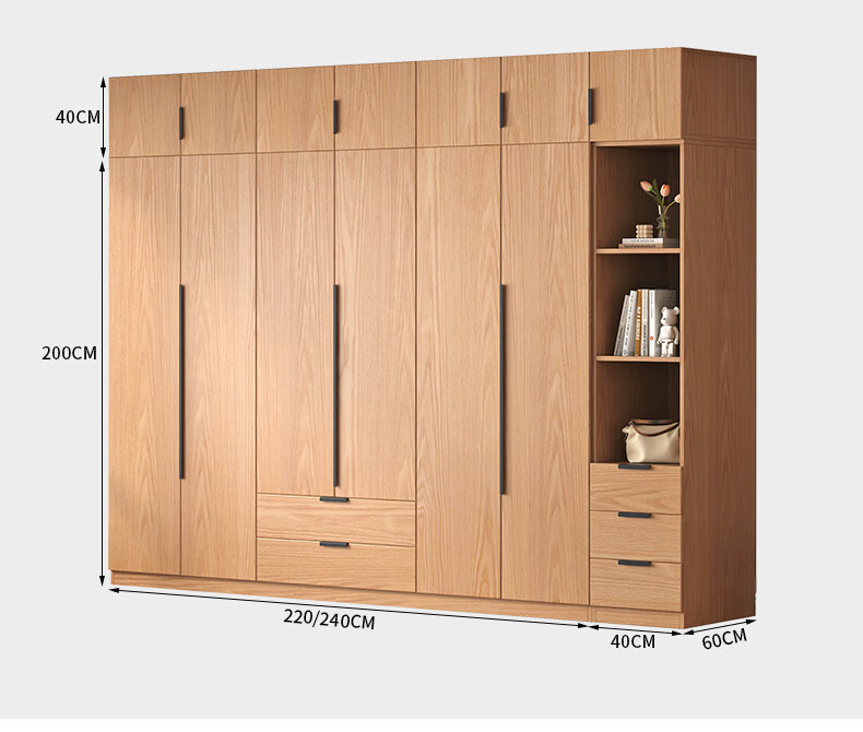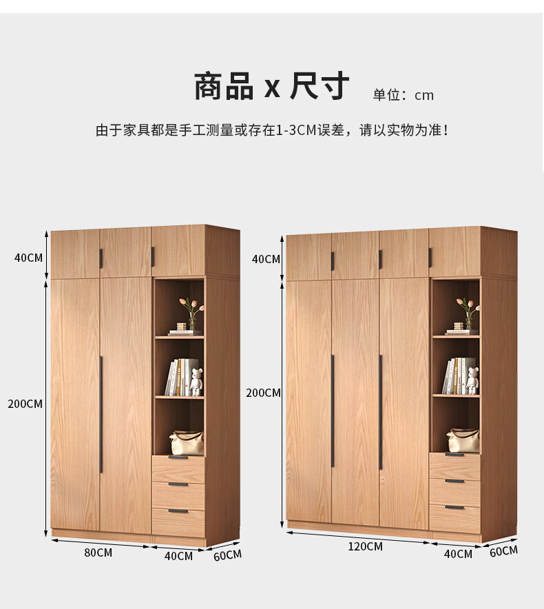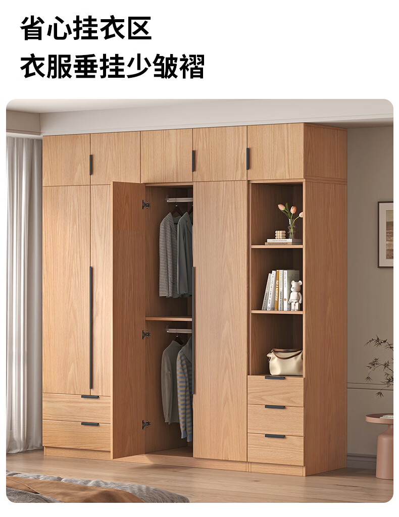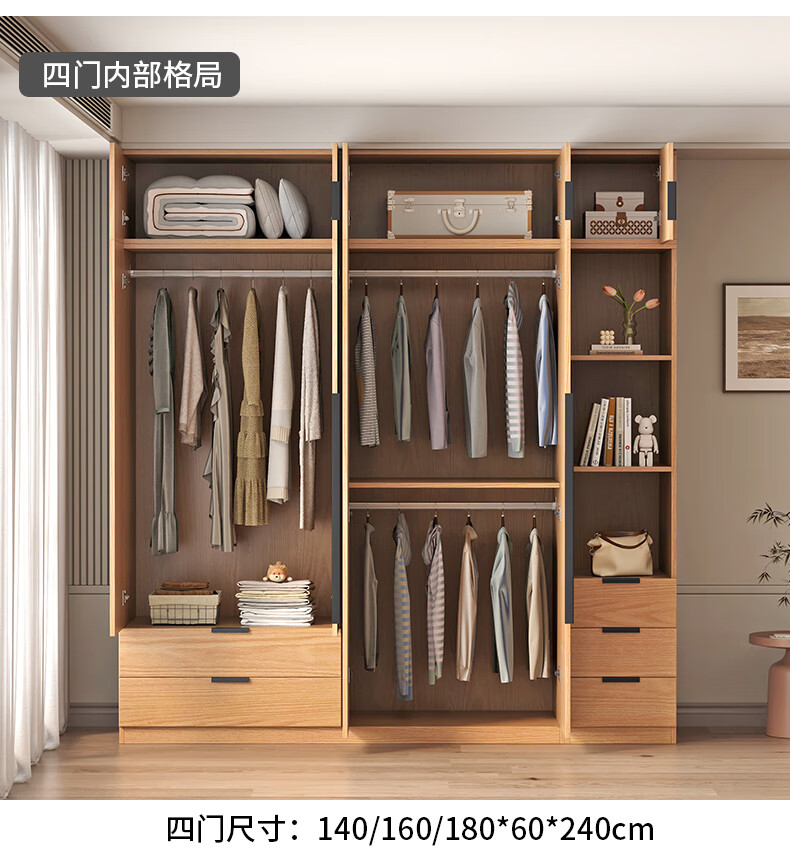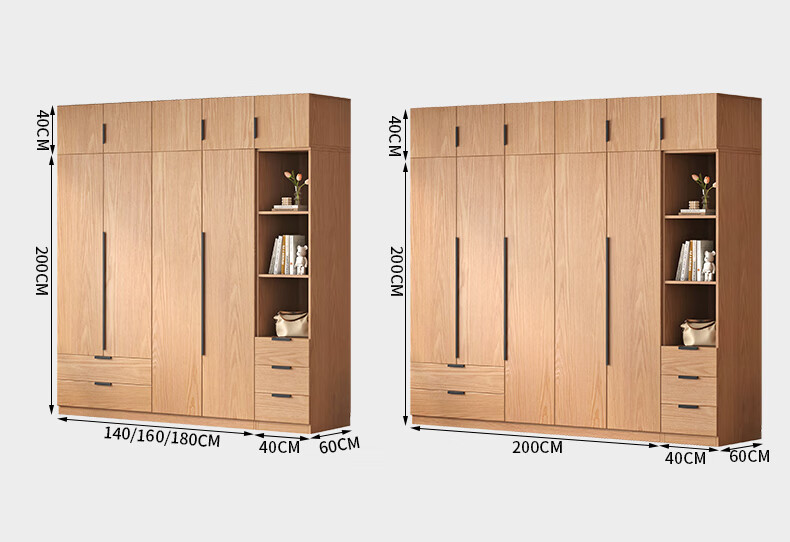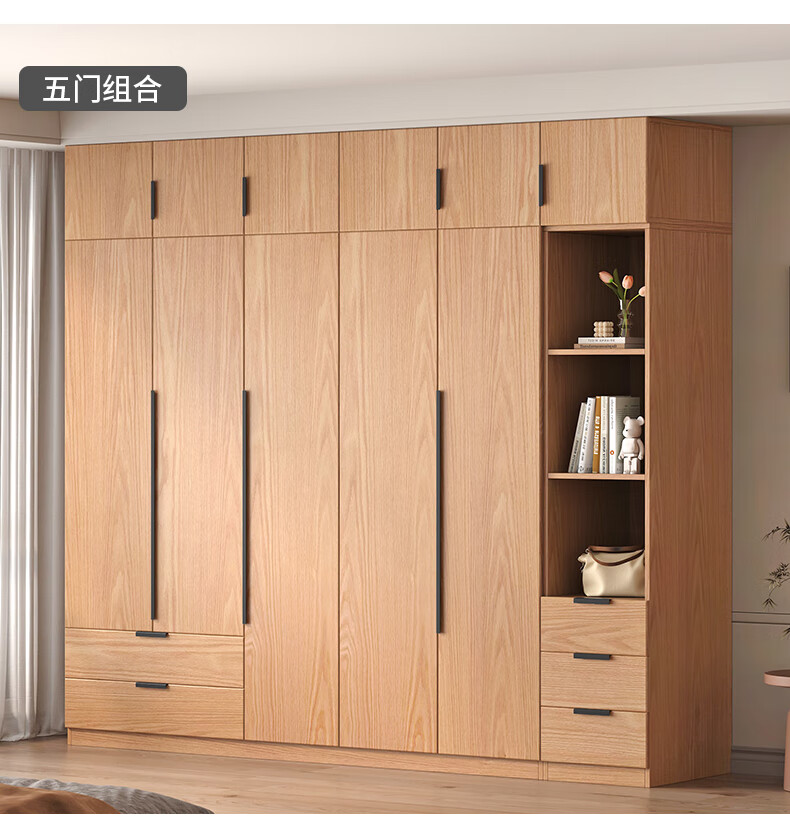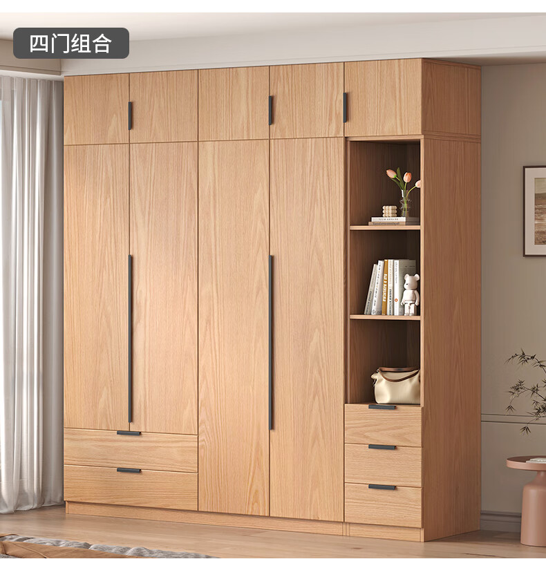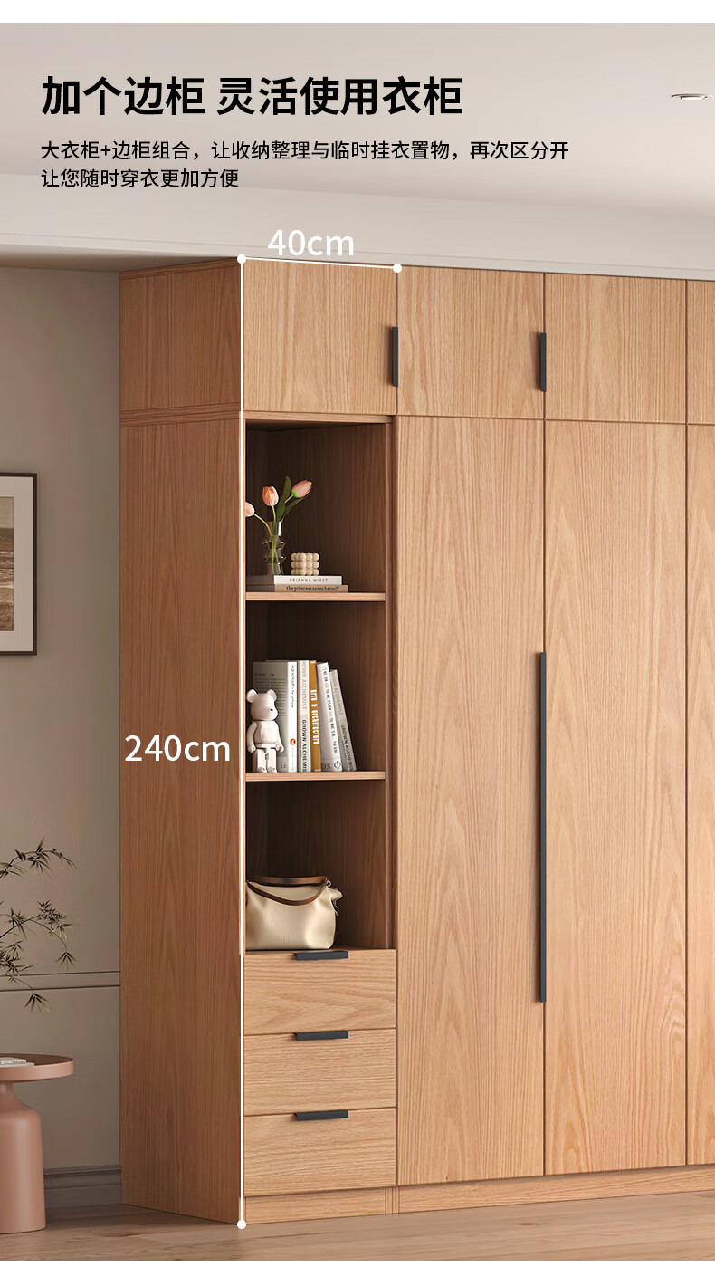 Fat Donglai same style wardrobe solid wood home bedroom ENF grade all solid wood wardrobe solid wood color oak customized economical log C length 80 depth 60 height 200 main cabinet/FAS oak wardrobe complete installation