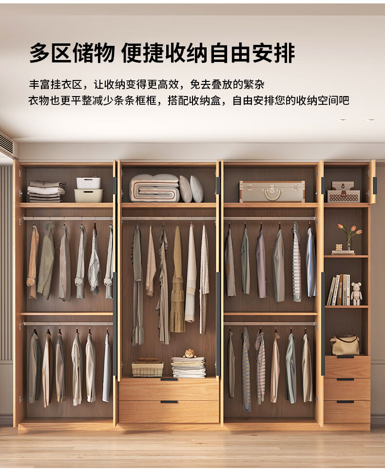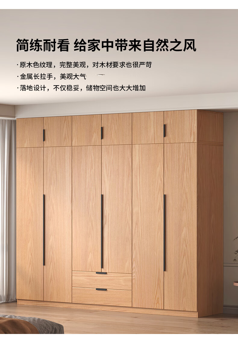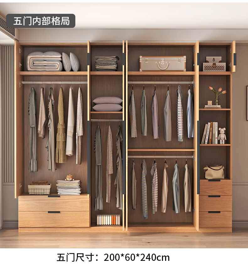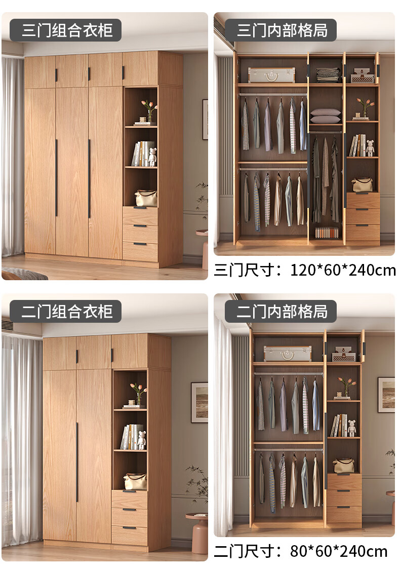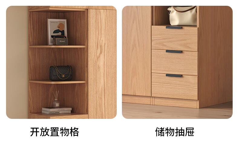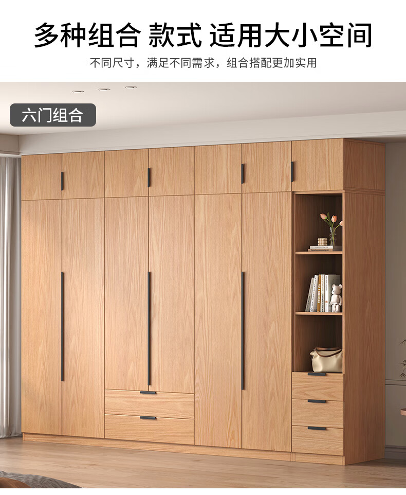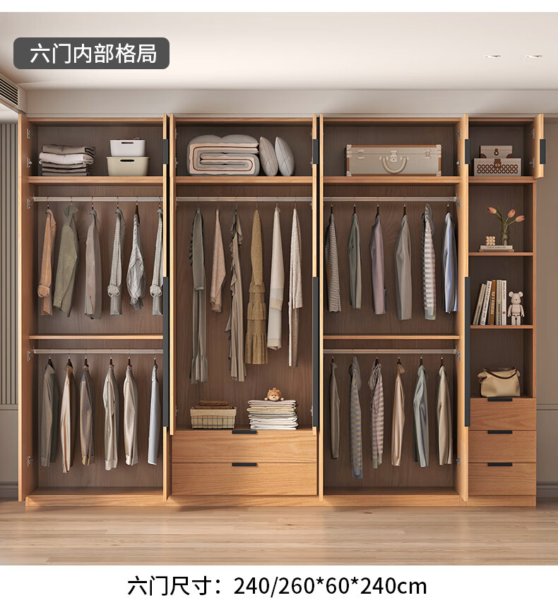 Fat Donglai same style wardrobe solid wood home bedroom ENF grade all solid wood wardrobe solid wood color oak customized economical log C length 80 depth 60 height 200 main cabinet/FAS oak wardrobe complete installation