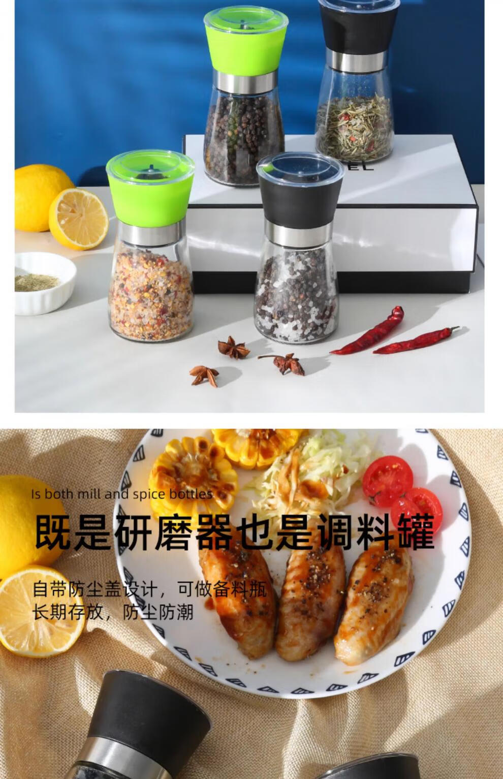 Fat Donglai same style pepper grinder manual grinding bottle household pepper grinder freshly ground black pepper grinder black 1 pack