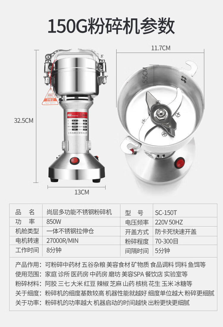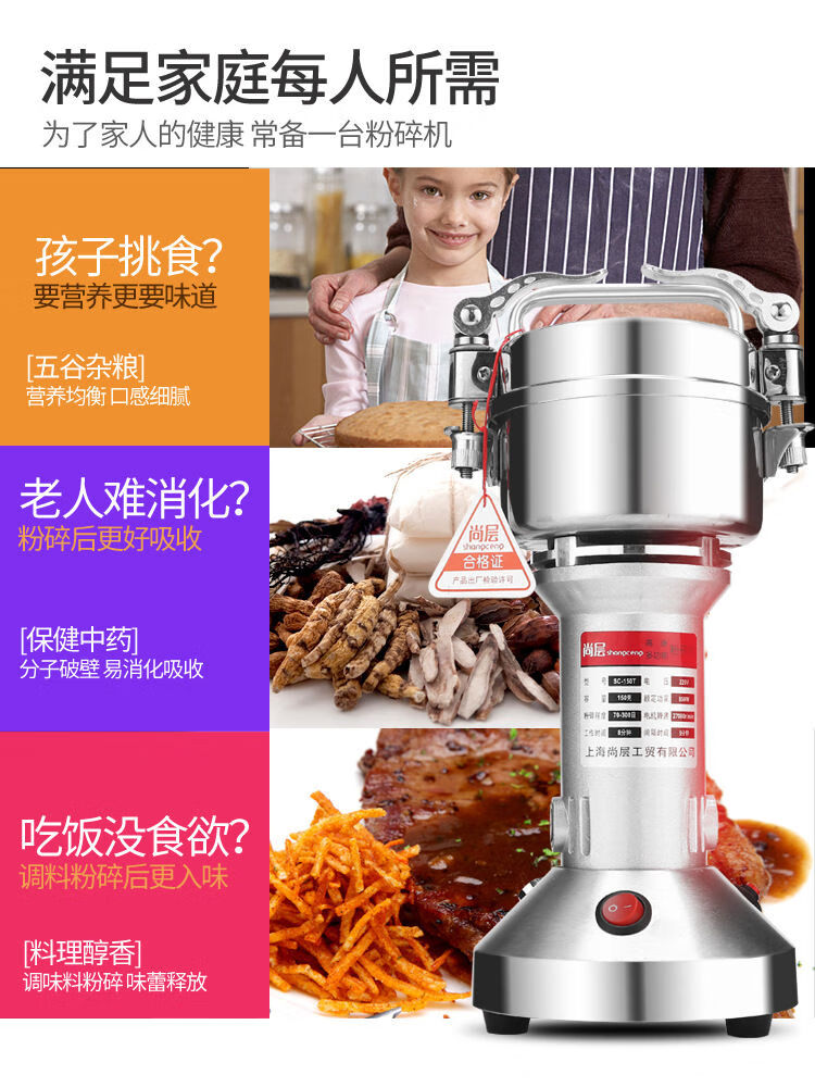 Shang layer 150g traditional Chinese medicine small grinder multifunctional household electric grain mill fish bait powder machine 150g