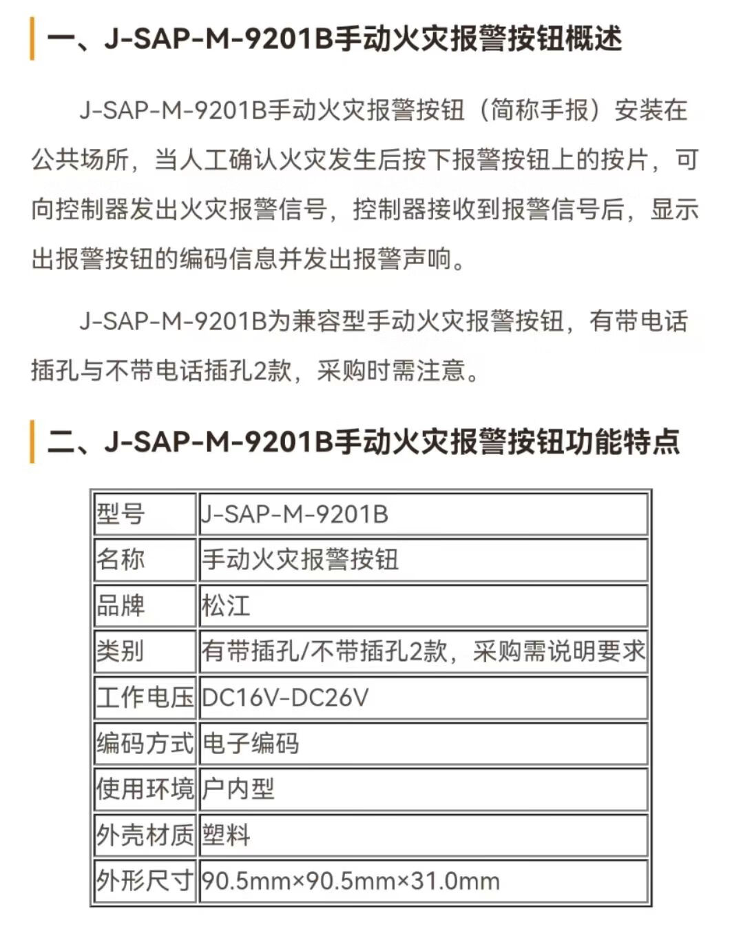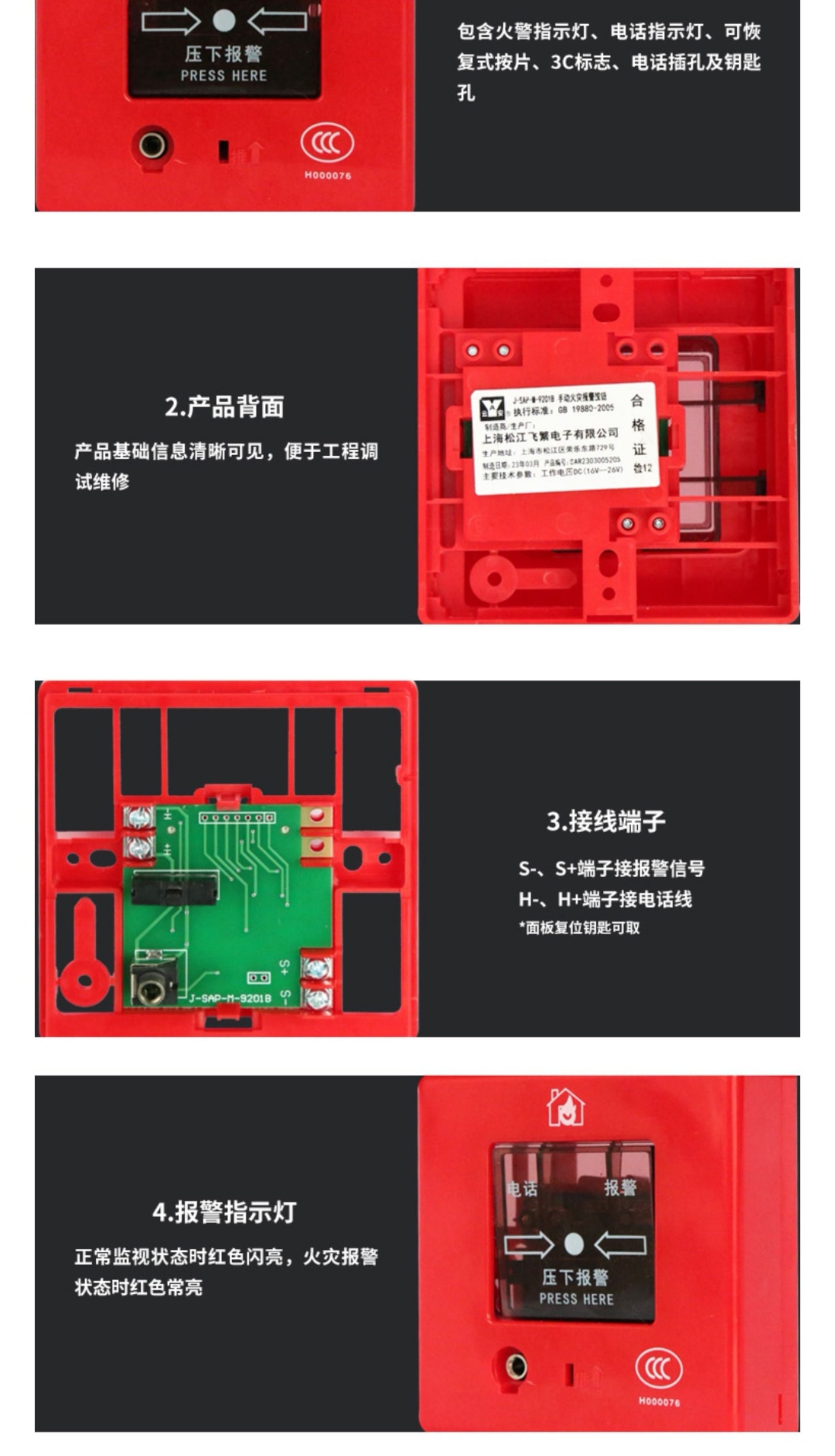 Shanghai Songjiang hand alarm J-SAP-M-9201B manual fire alarm button with telephone jack Songjiang hand alarm hand alarm 9201B (complete set)