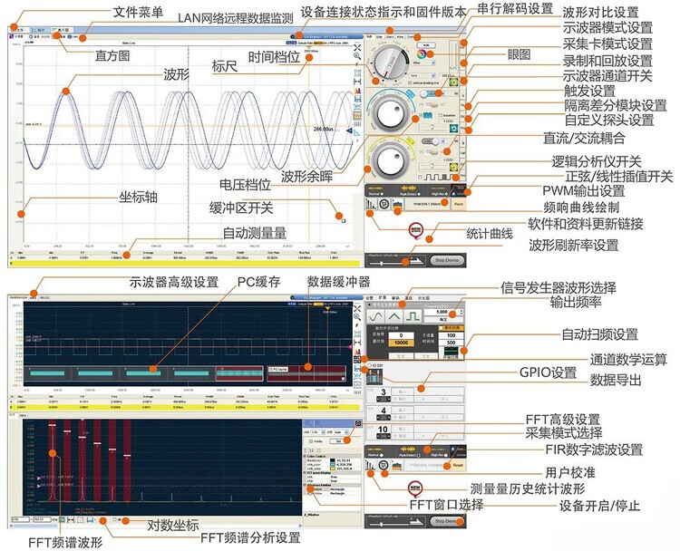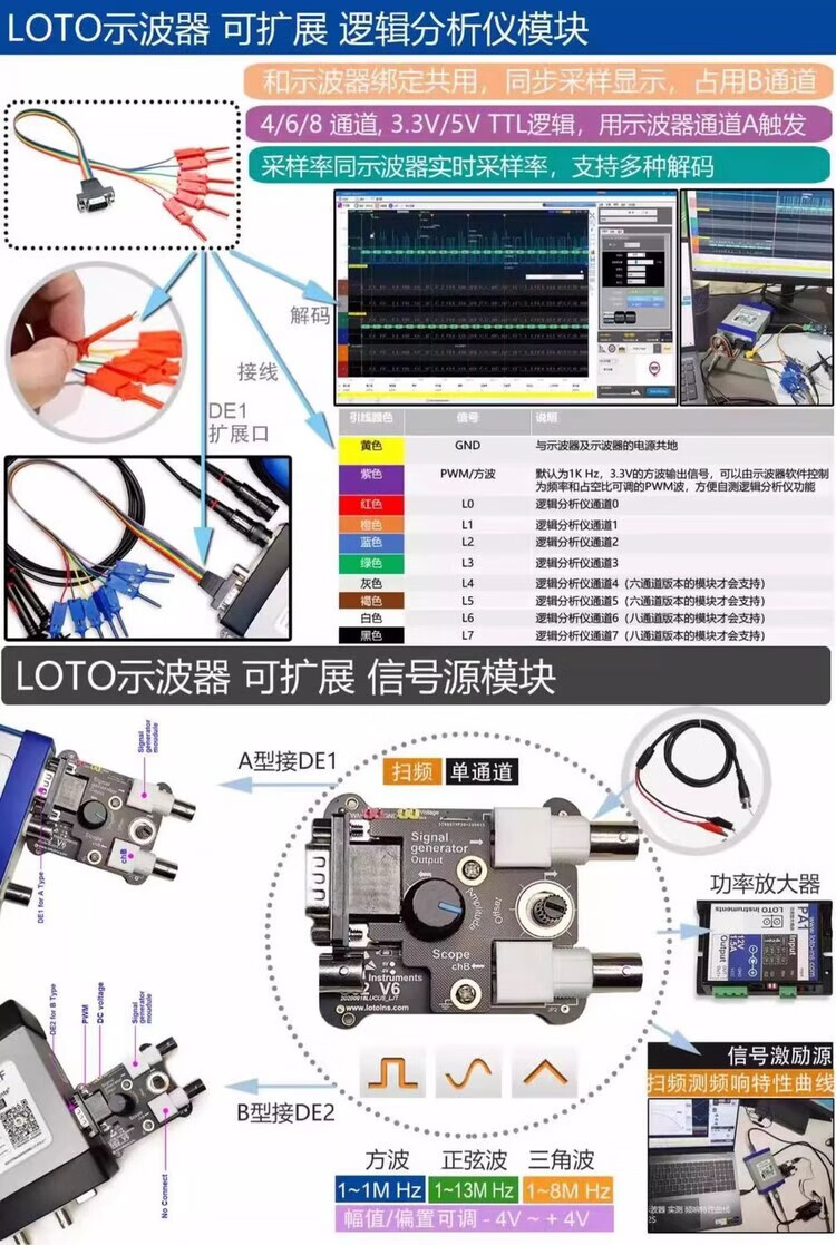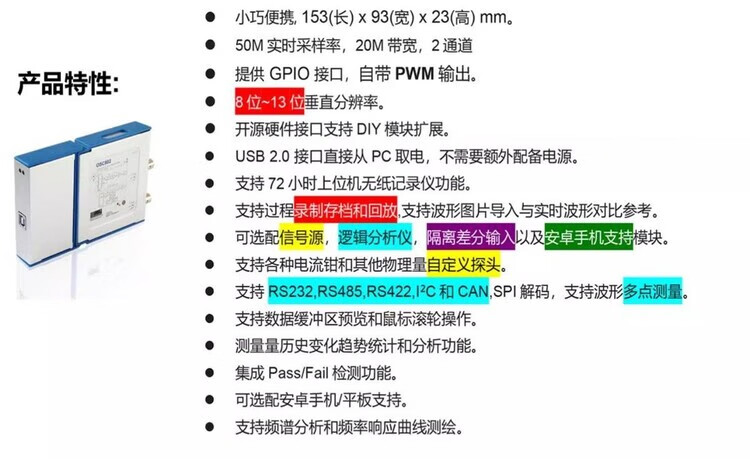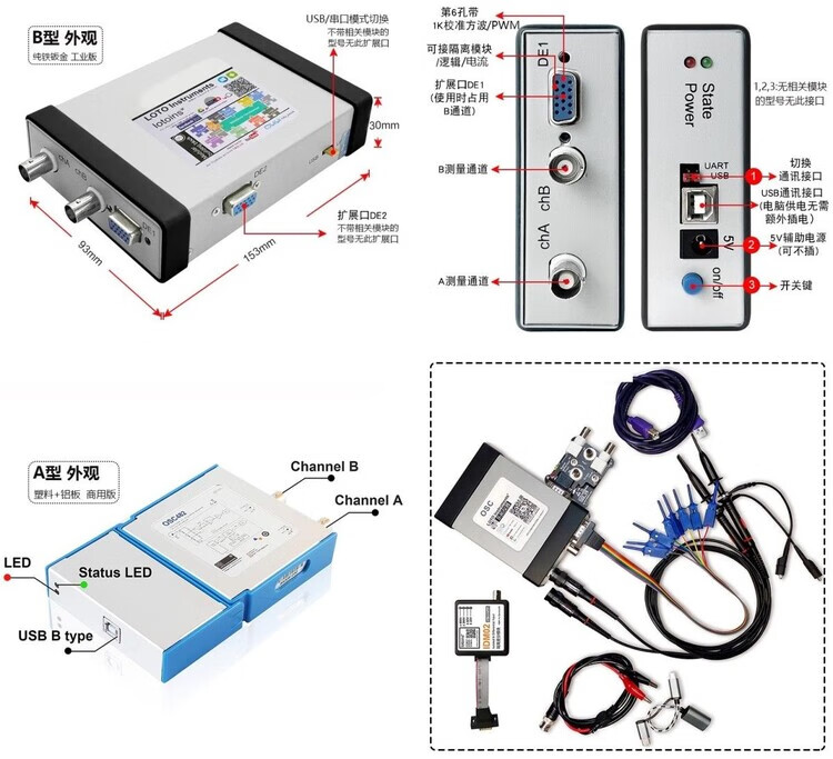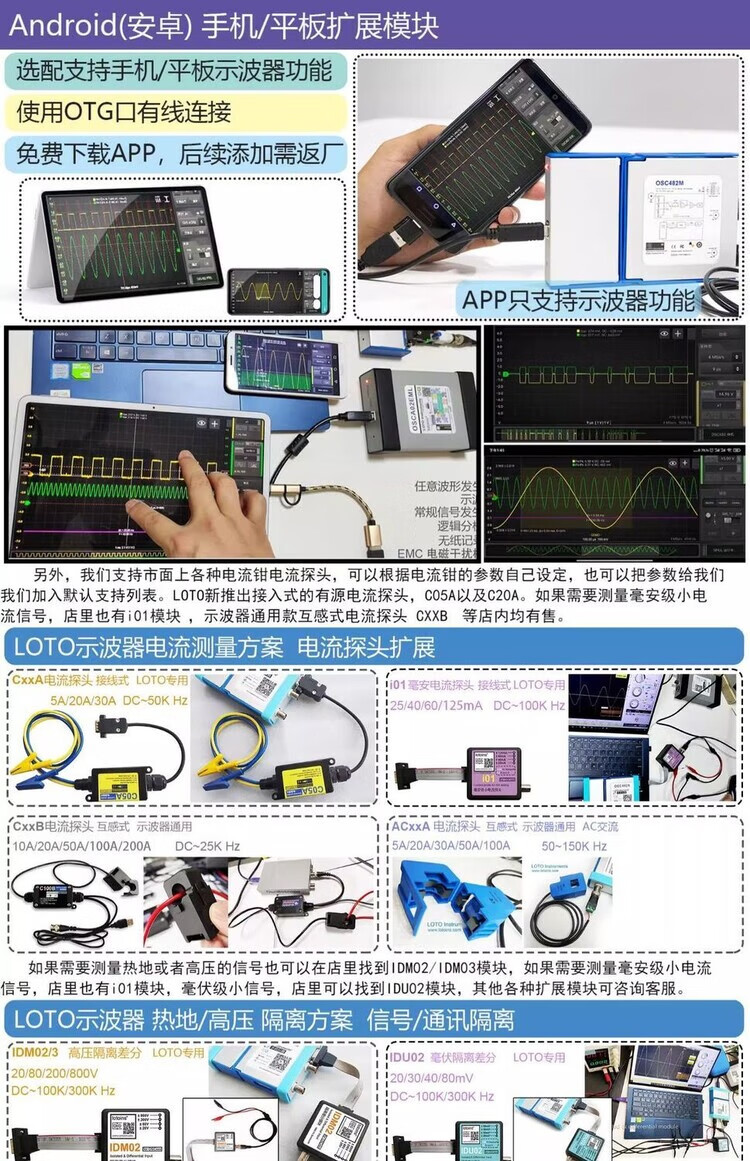 OSC482 computer oscilloscope + mobile phone + signal source + logic analysis + isolation + current + spectrum Android usb OSC482HK (482H + EMC)