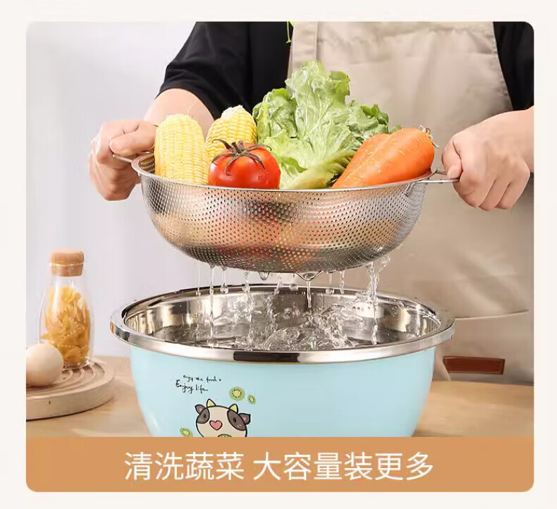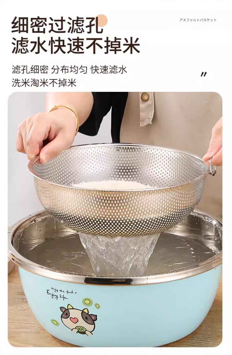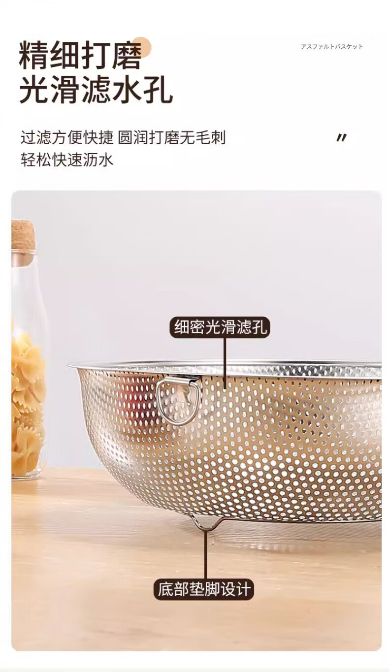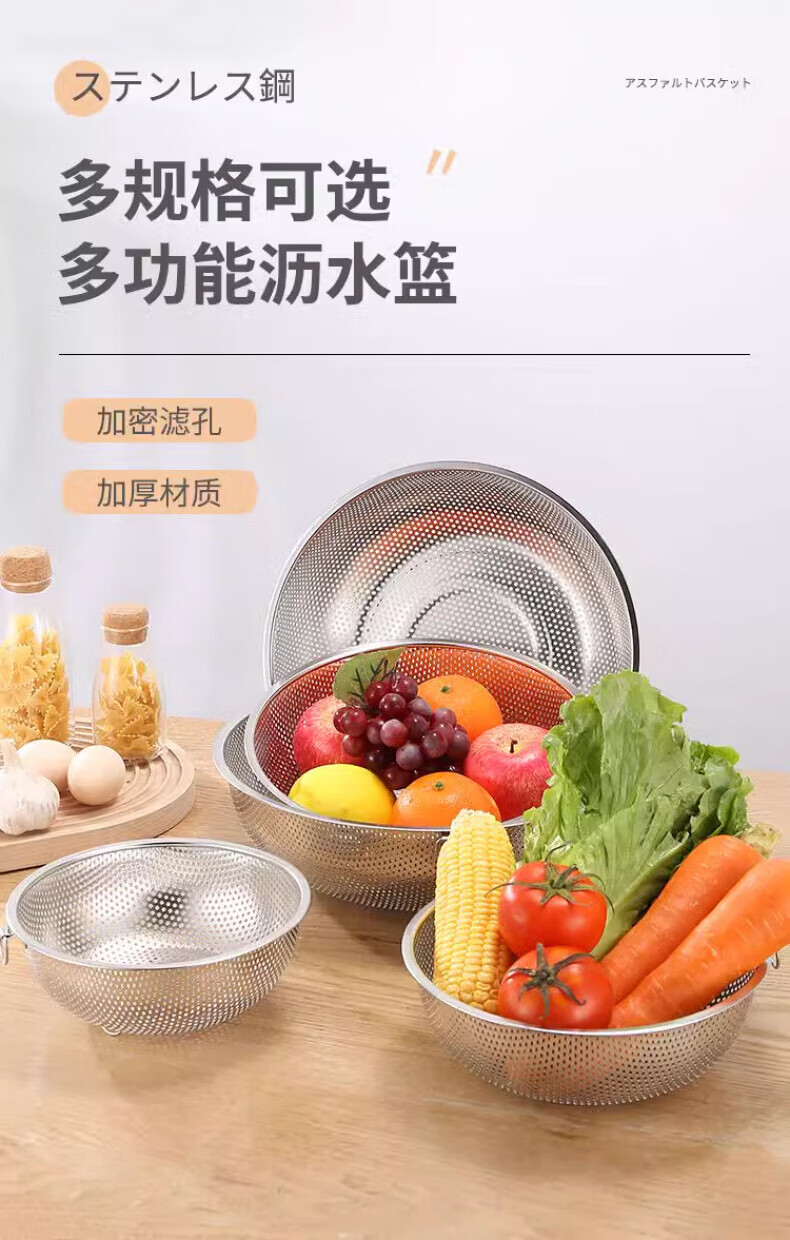 Zwilling German quality 304 stainless steel drain basket, vegetable drain basin, fruit basket, rice basket, multi-purpose basket, saves more space, single ring drain basket, outer diameter 16.5CM