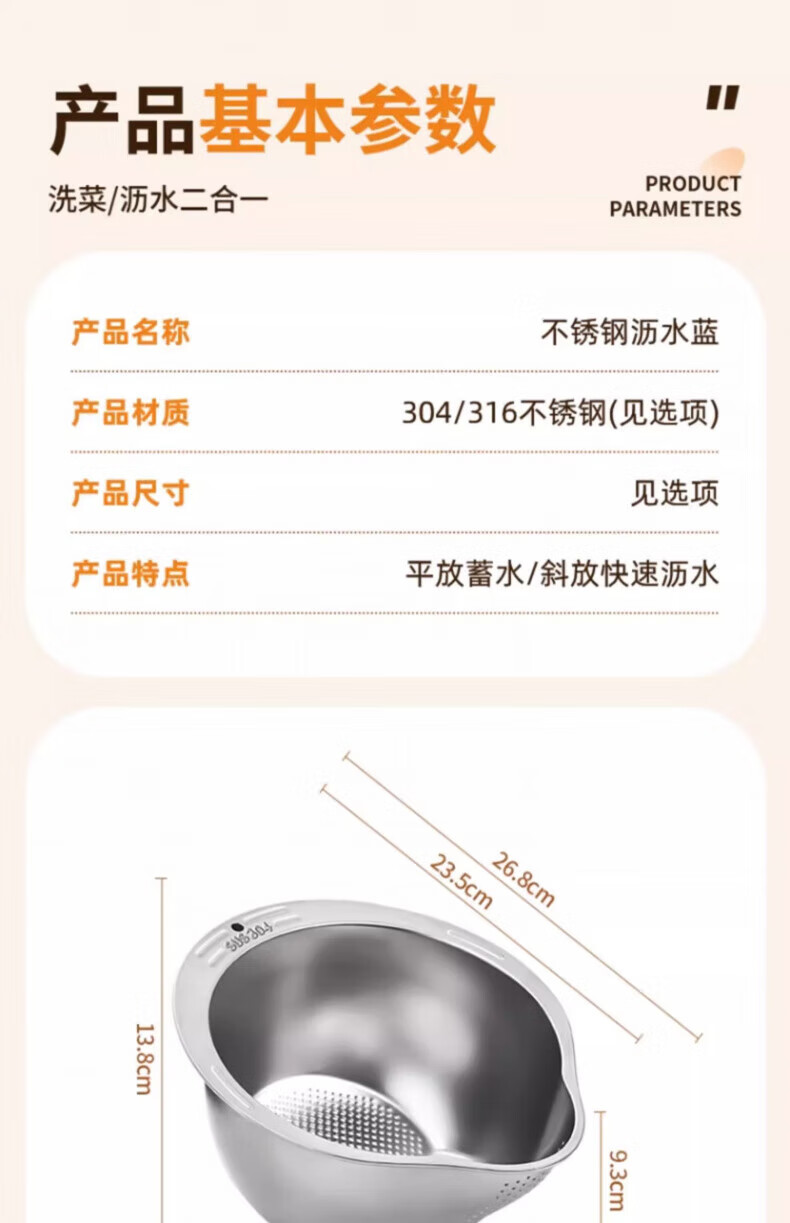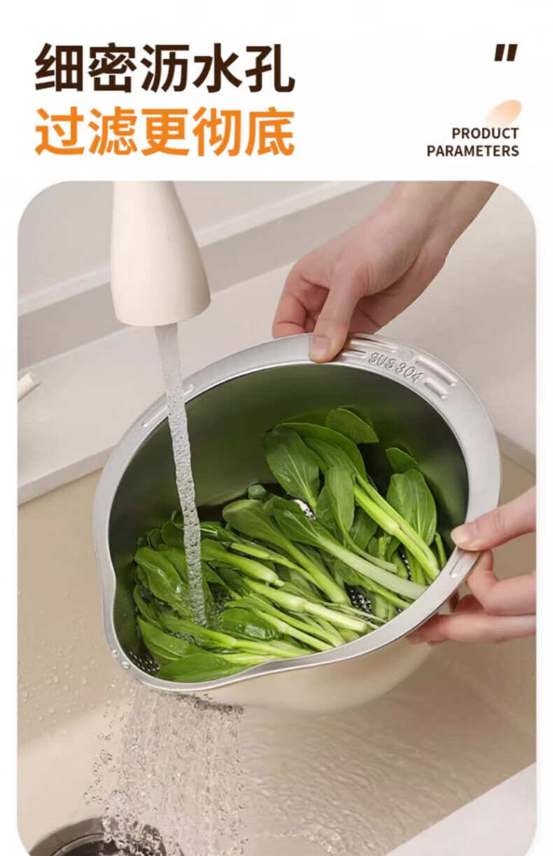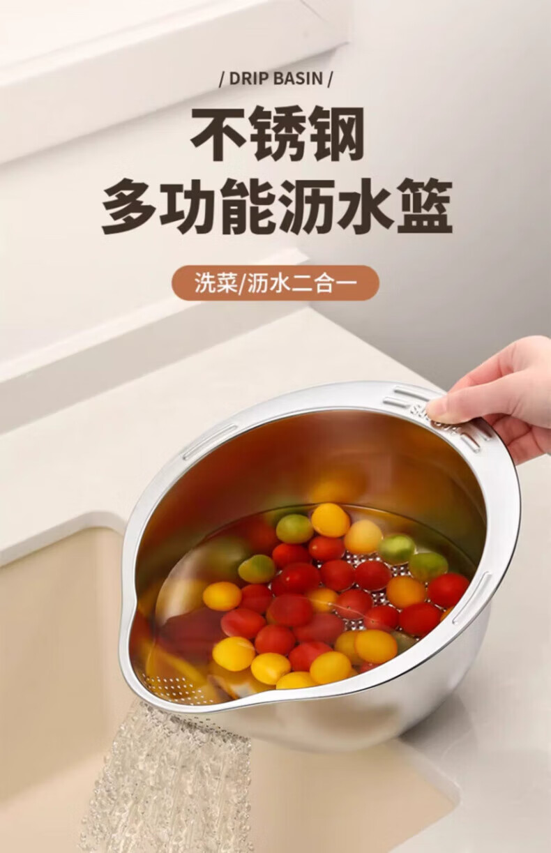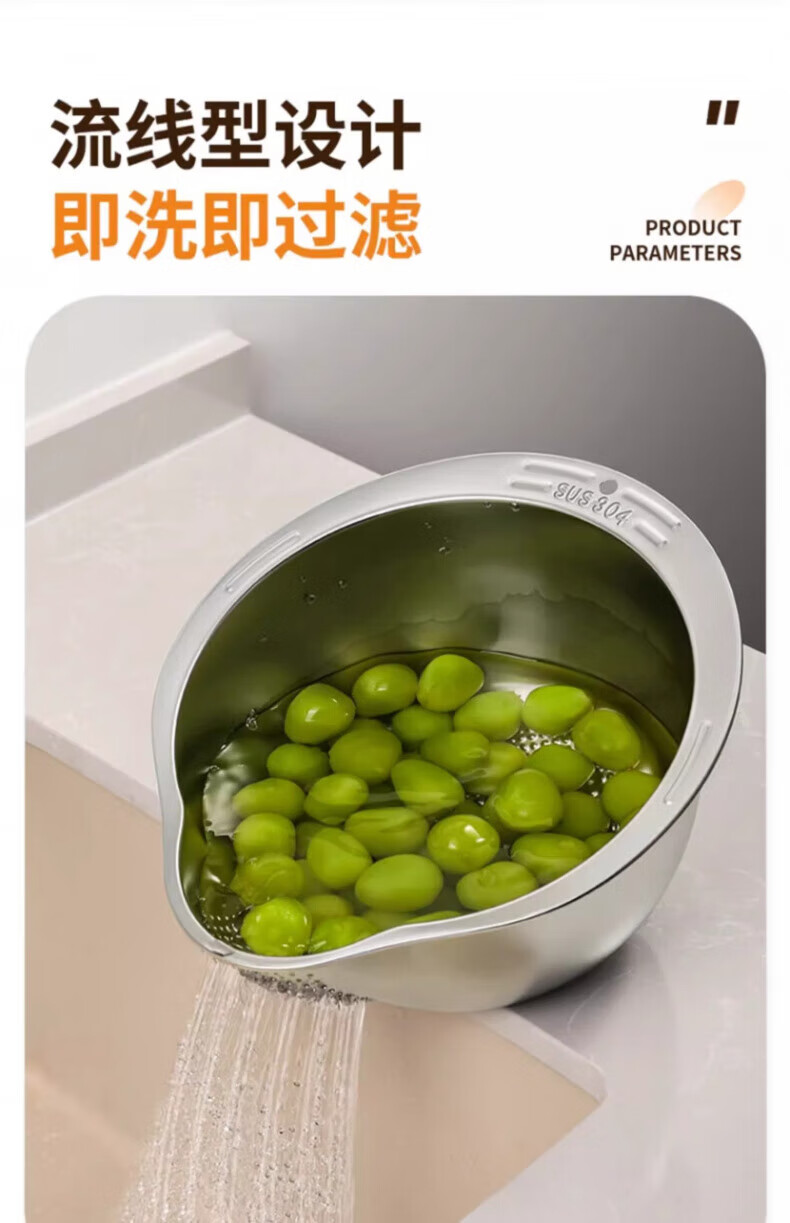 Zwilling German Seiko 316 stainless steel drain basket multi-functional rice washing artifact rice washing sieve fruit plate home kitchen special store manager second generation upgraded model 304 stainless steel drain basket (silver) +