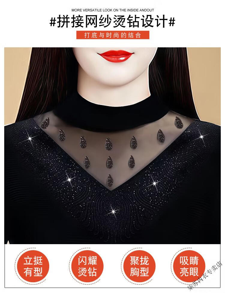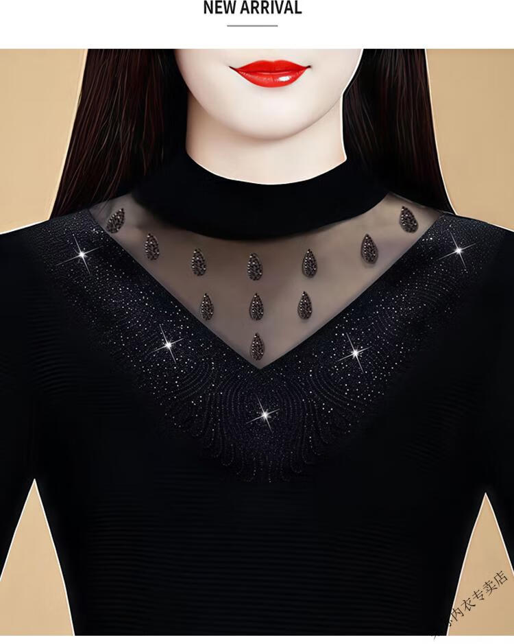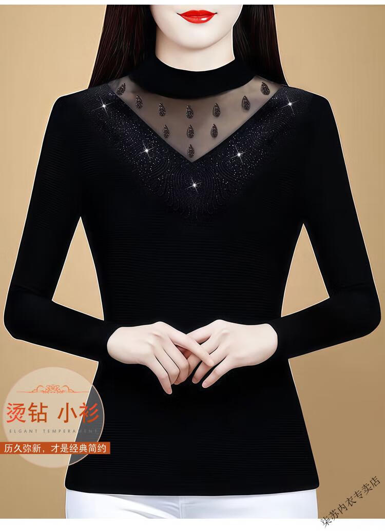 Initial diameter high-elastic mesh women's half turtleneck bottoming shirt 2025 autumn and winter new style plus velvet to keep warm and slim, western style long-sleeved top, black plus velvet XL