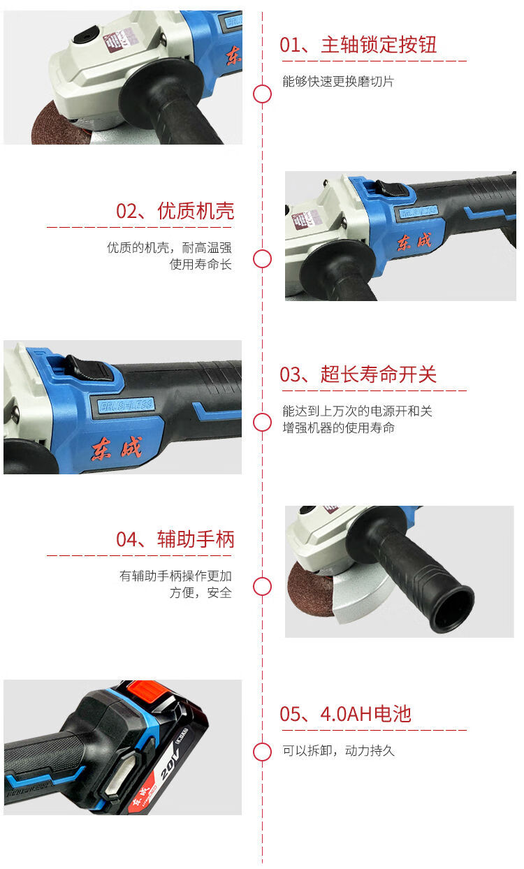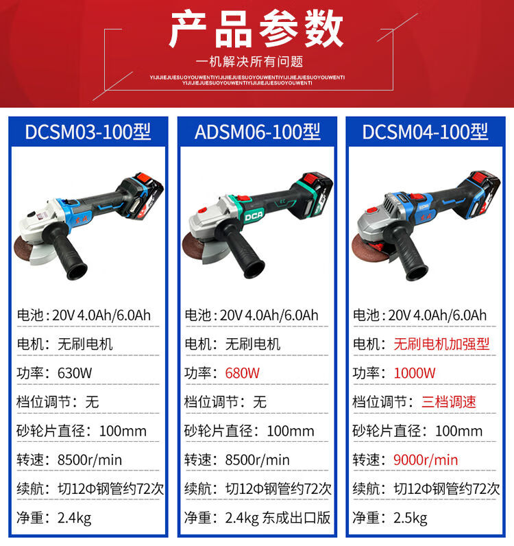 Dongcheng 20V brushless lithium electric angle grinder DCSM03-100E wireless lithium electric grinder Dongcheng rechargeable grinder Dongcheng 03-100 plastic box model 4.0Ah dual battery standard