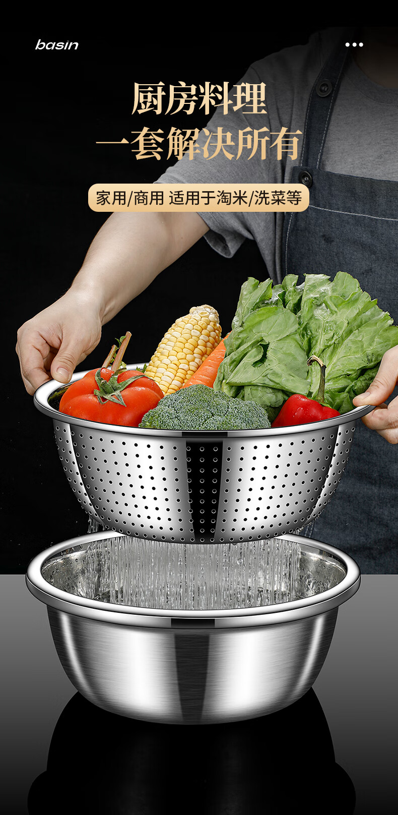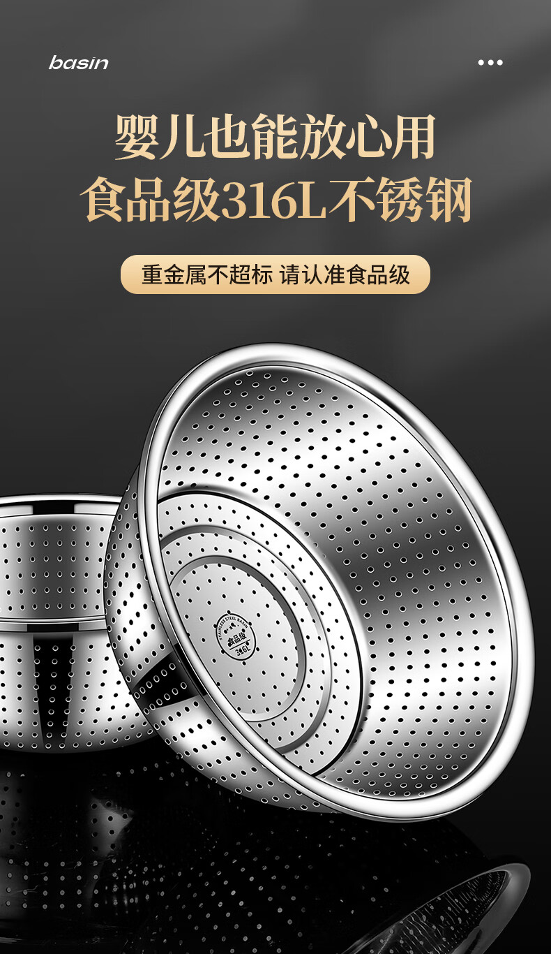 Shuwilling German quality 304 food grade stainless steel basin wash basin drain basket leaky basin kitchen household 316 drain basket 316 extra thick stainless steel leaky basin 18cm