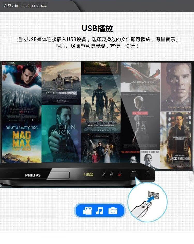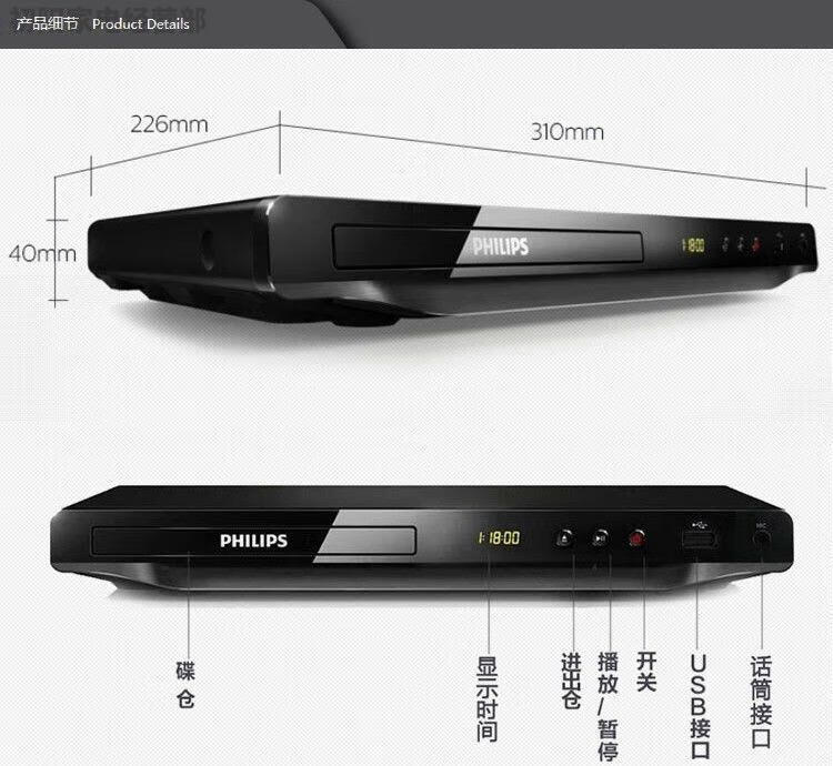 Philips Smart Player DVP3690 Karaoke HD DVD Disc Player DVP3650/3600 Screen Display Microphone Interface Model 3690