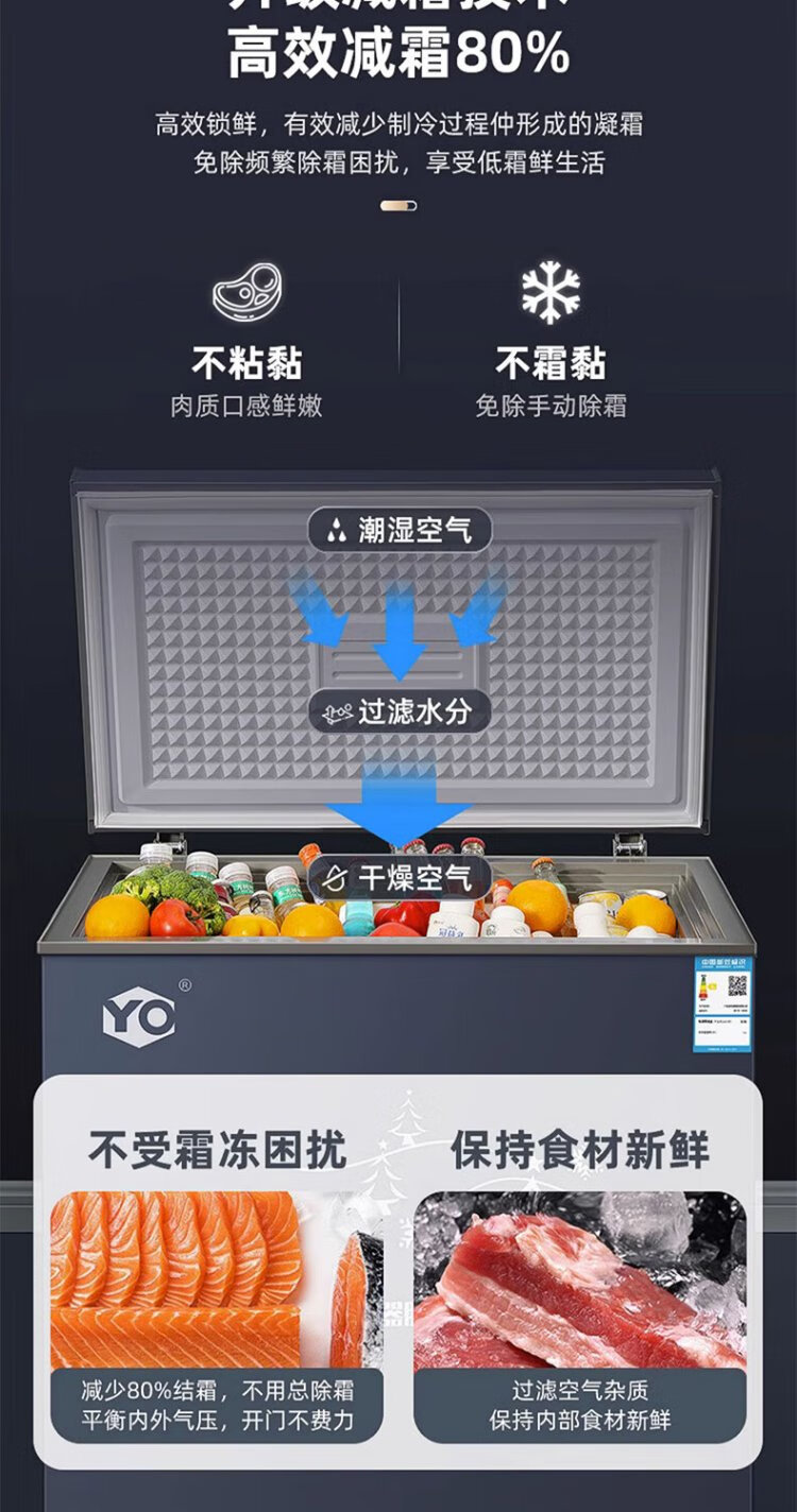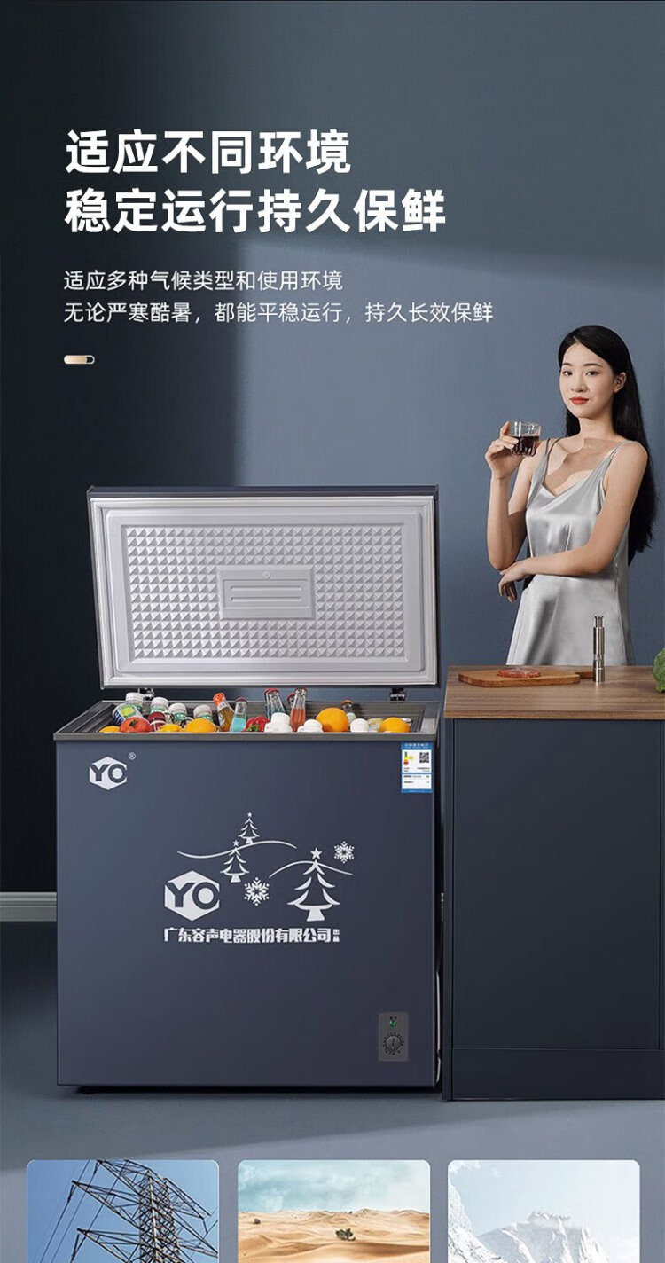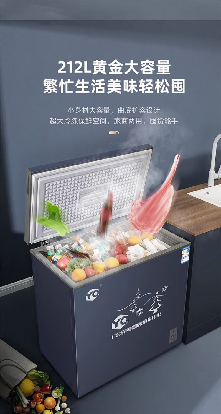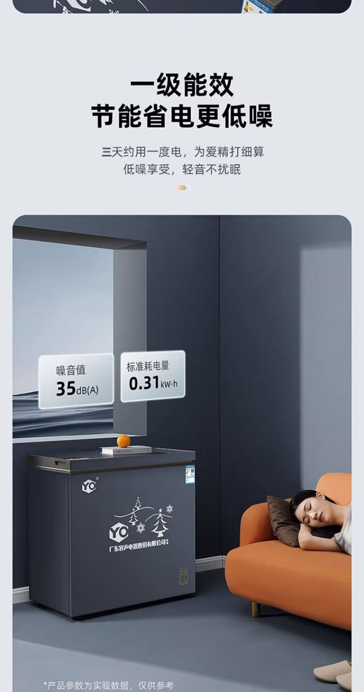 YO Guangdong Rongsheng Electric Co., Ltd. Refrigerator variable frequency horizontal small freezer household small frozen fresh-keeping refrigerated large capacity commercial breast milk storage cabinet energy saving 110L single temperature micro-frost + frequency conversion | copper tube + first-level energy efficiency