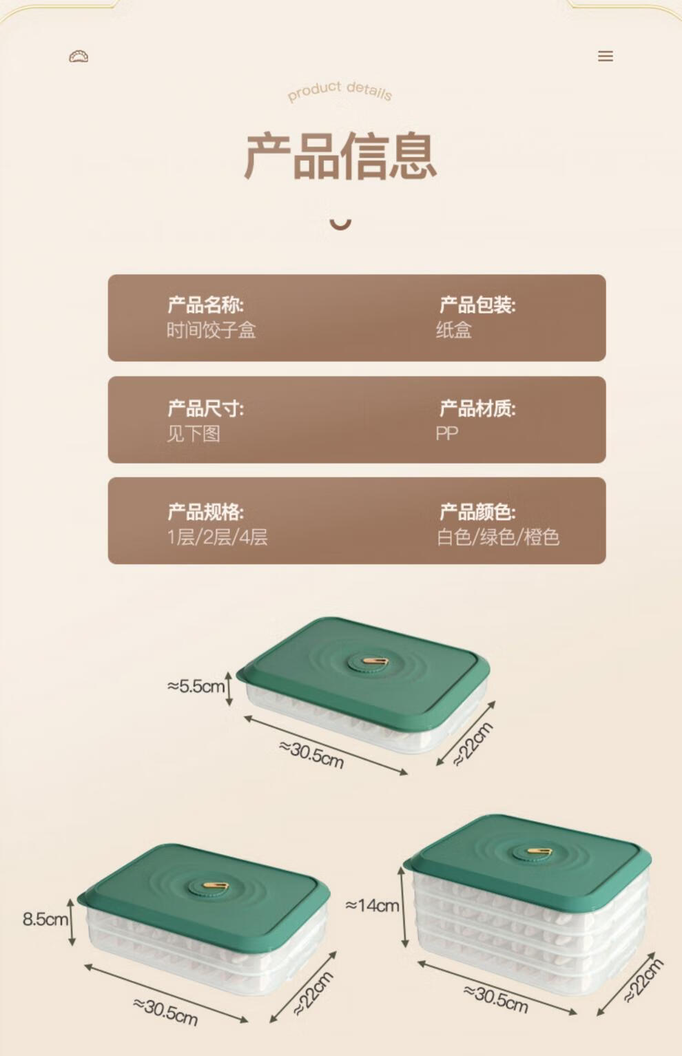 DUTRIEUX German quality dumpling box food grade crisper multi-layer dumpling wonton quick-frozen household refrigerator storage box special one layer green time dumpling box