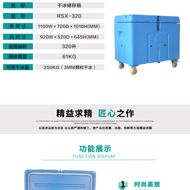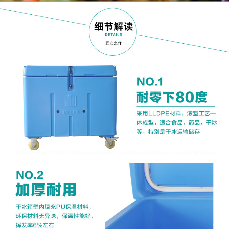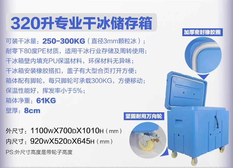 Special ultra-large capacity 320L dry ice storage box, rotomolded thermal insulation refrigeration, resistant to minus 80 degrees low temperature, with wheels for cleaning, 100 liters (packed with 55KG dry ice), stored for 4-5 days