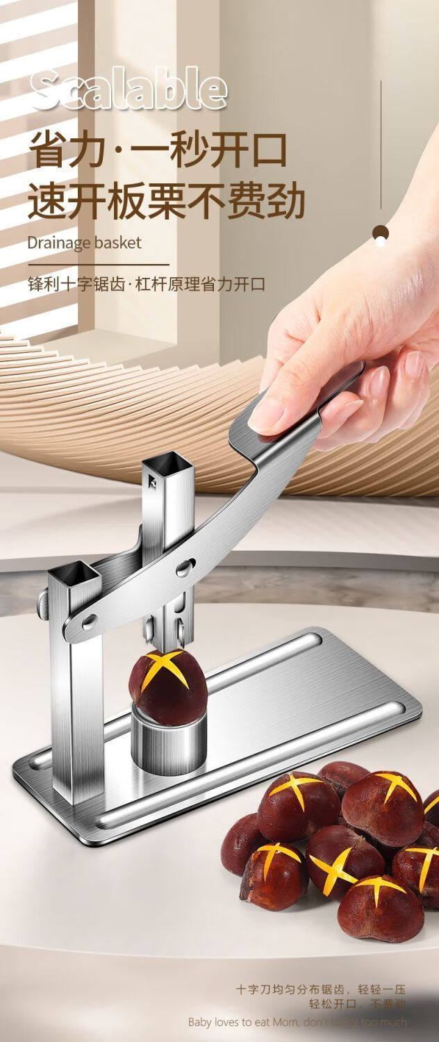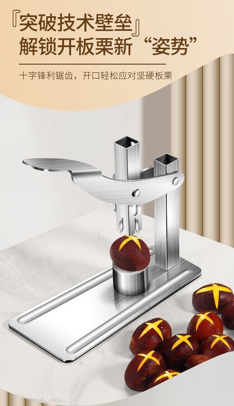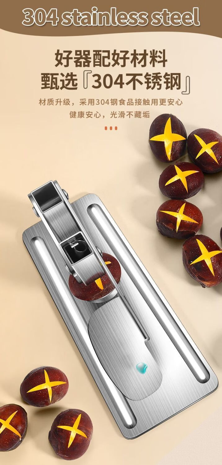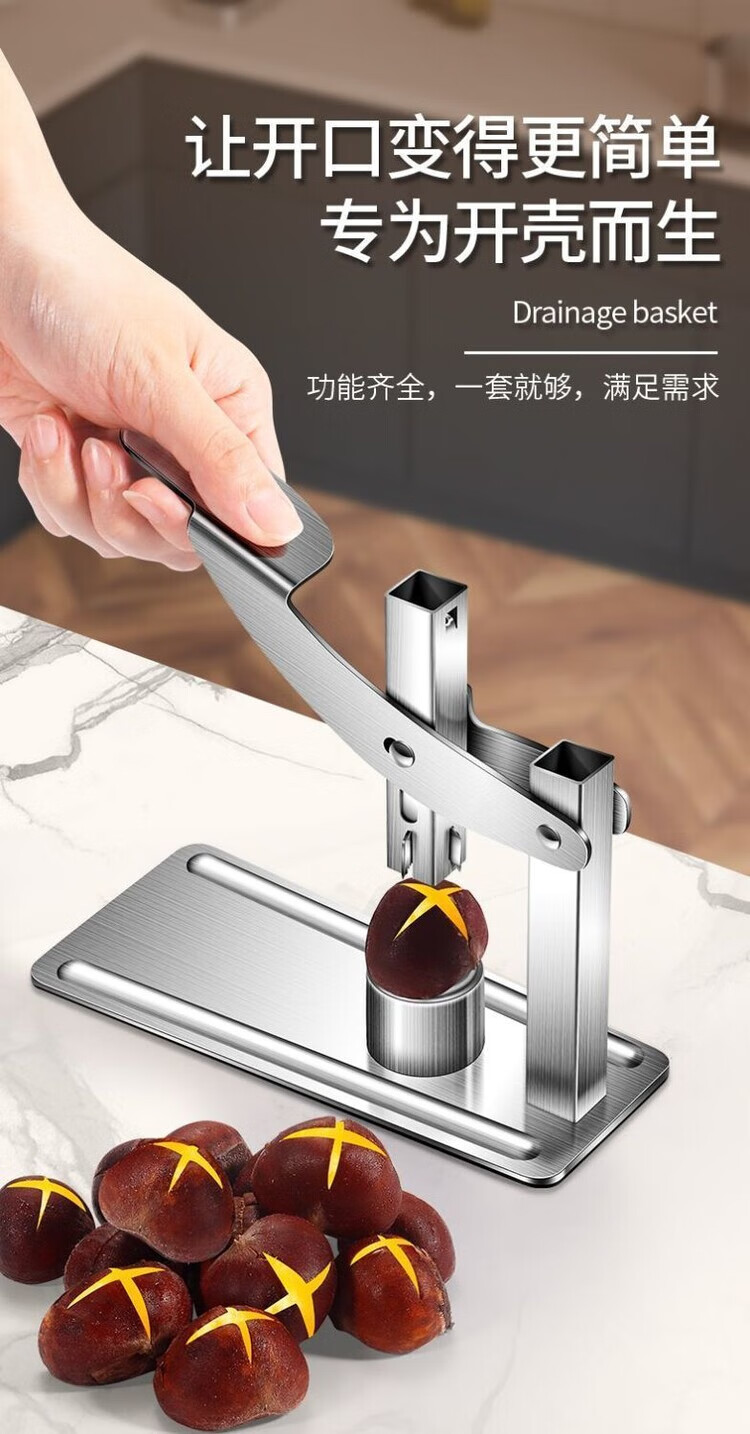 Harvest new stainless steel chestnut opening stainless steel fried chestnut special shelling machine peeling artifact commercial manual all steel press chestnut opener free armor *2