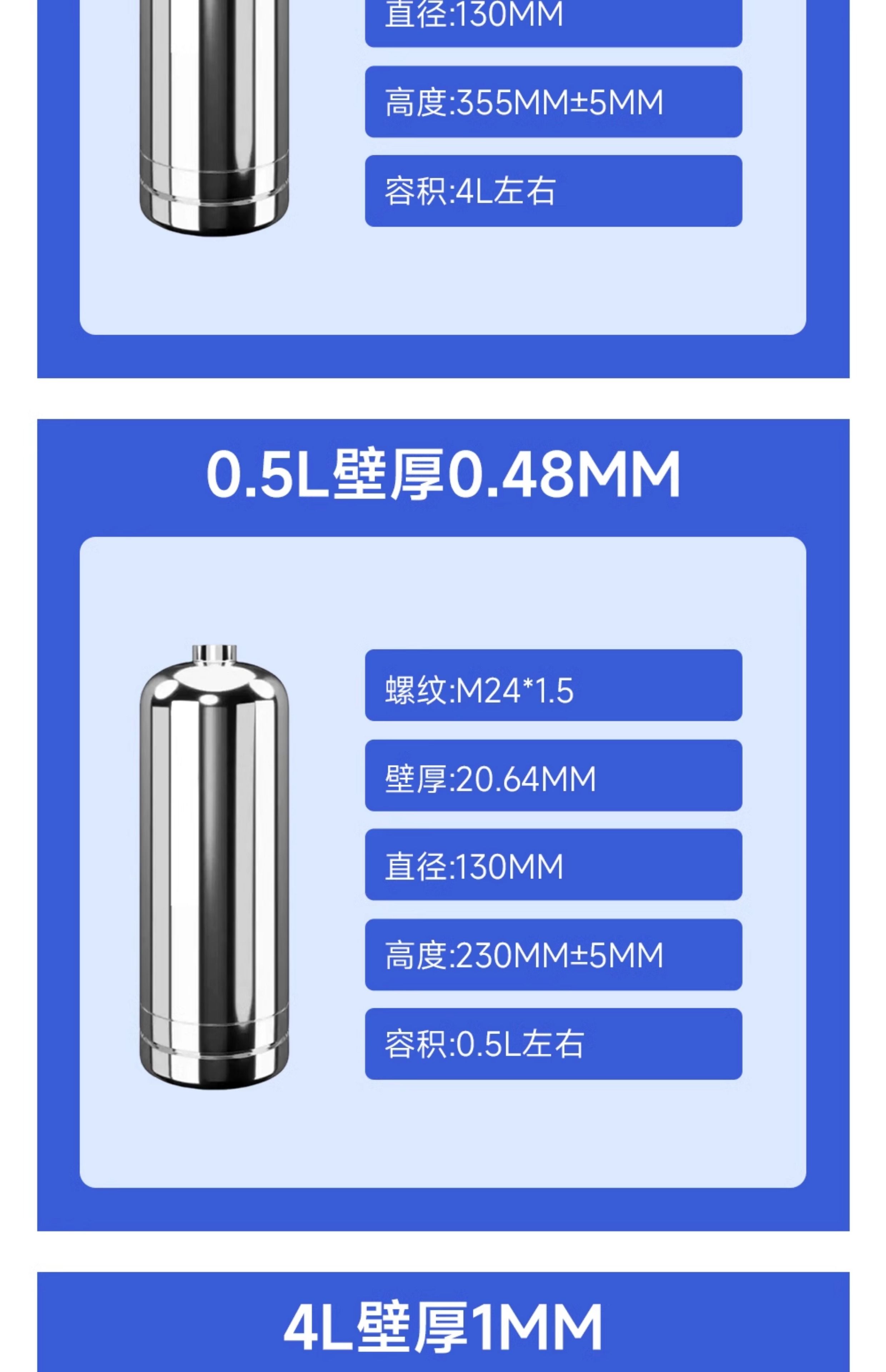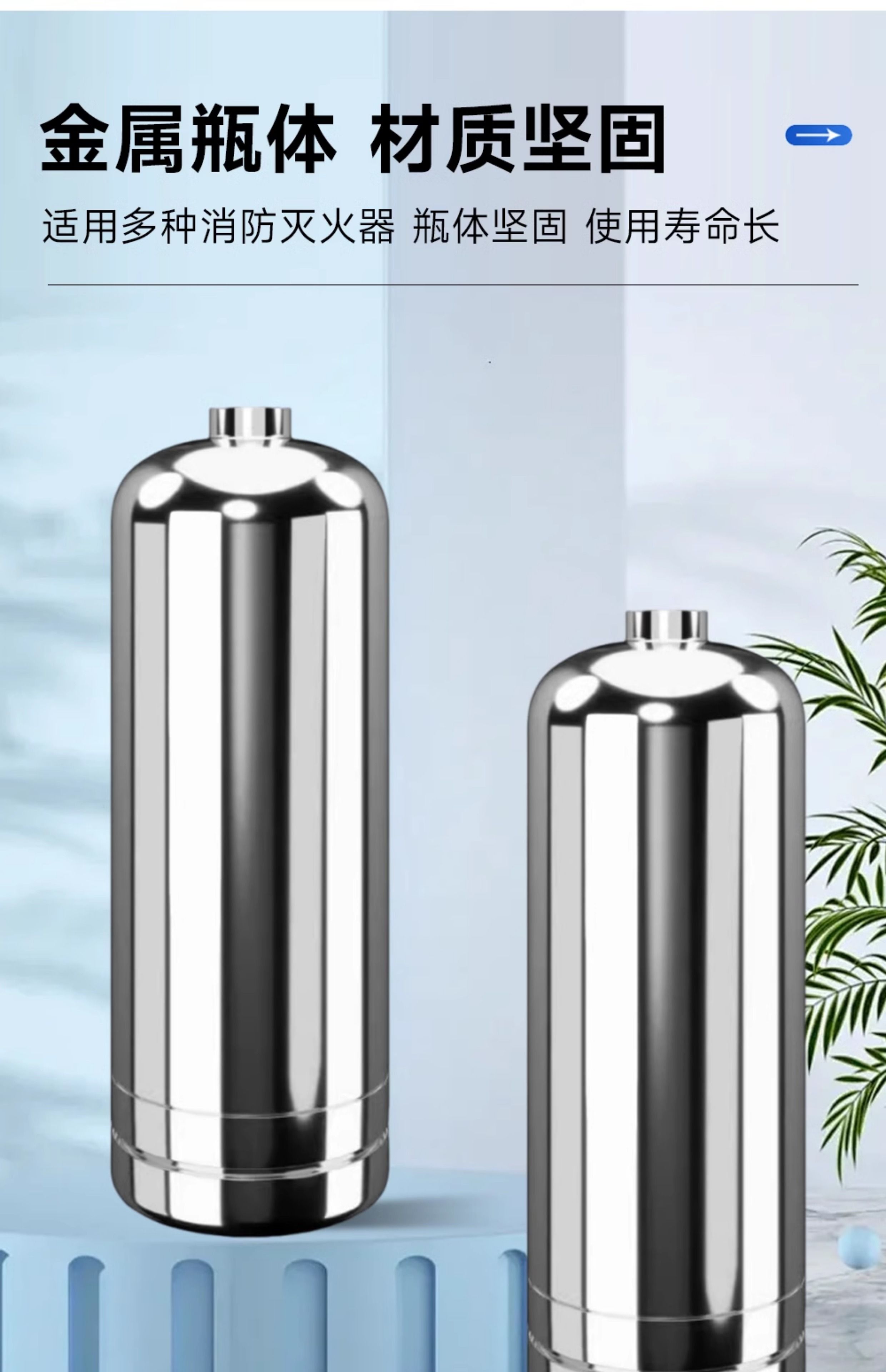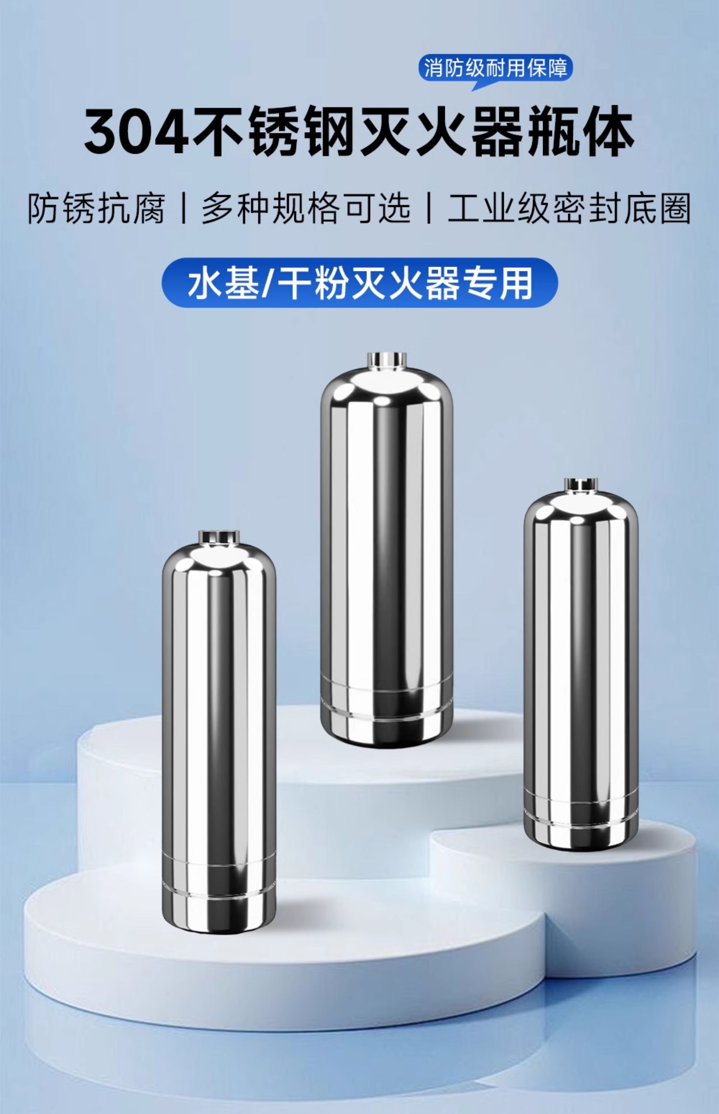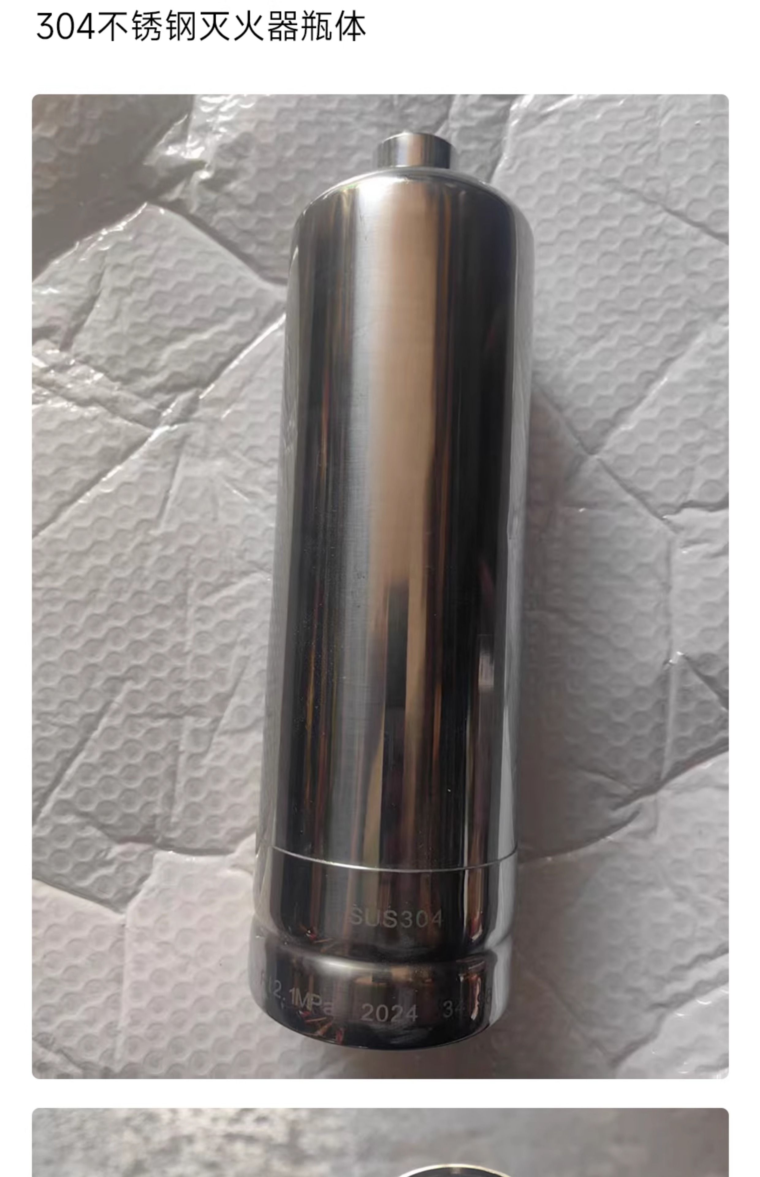 304 stainless steel fire extinguisher bottle cylinder 1.3L/2.8L/4L water-based/dry powder ring type stainless steel bottle 4L wall thickness 1mm