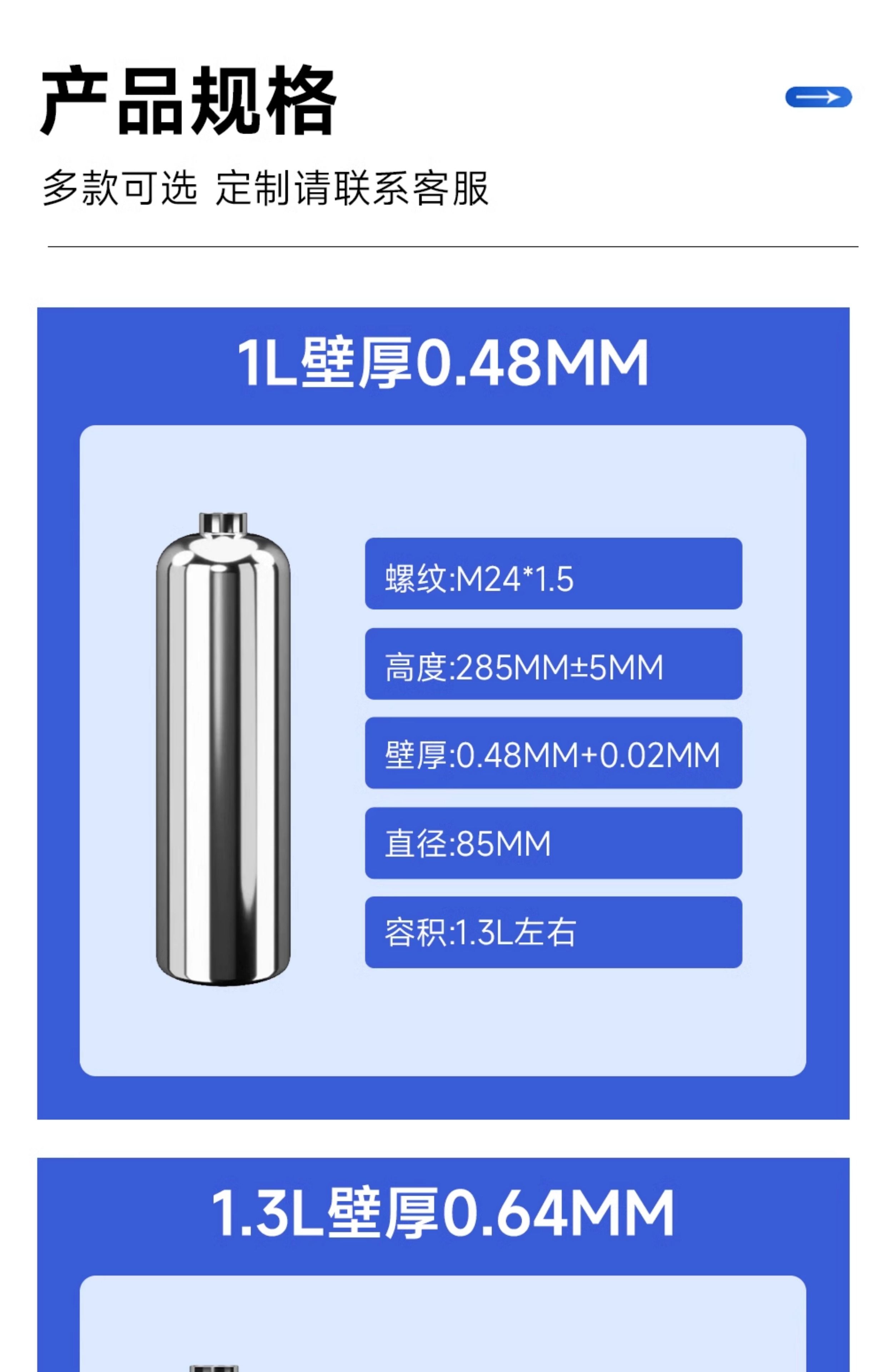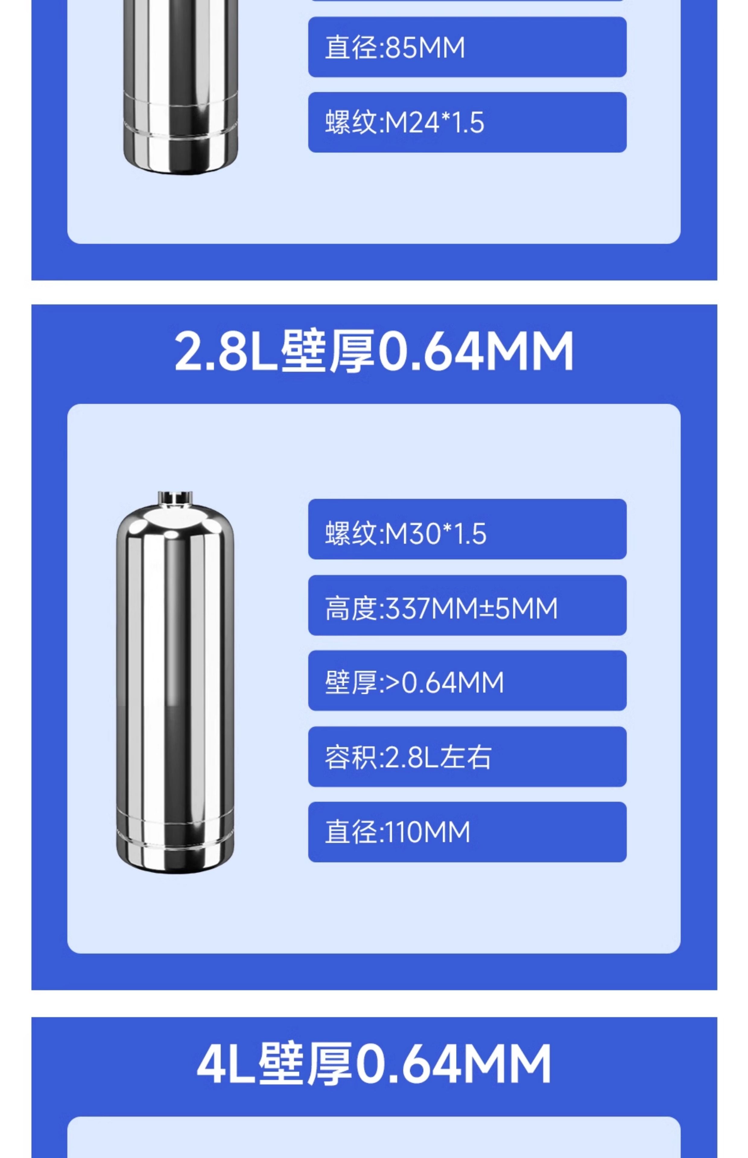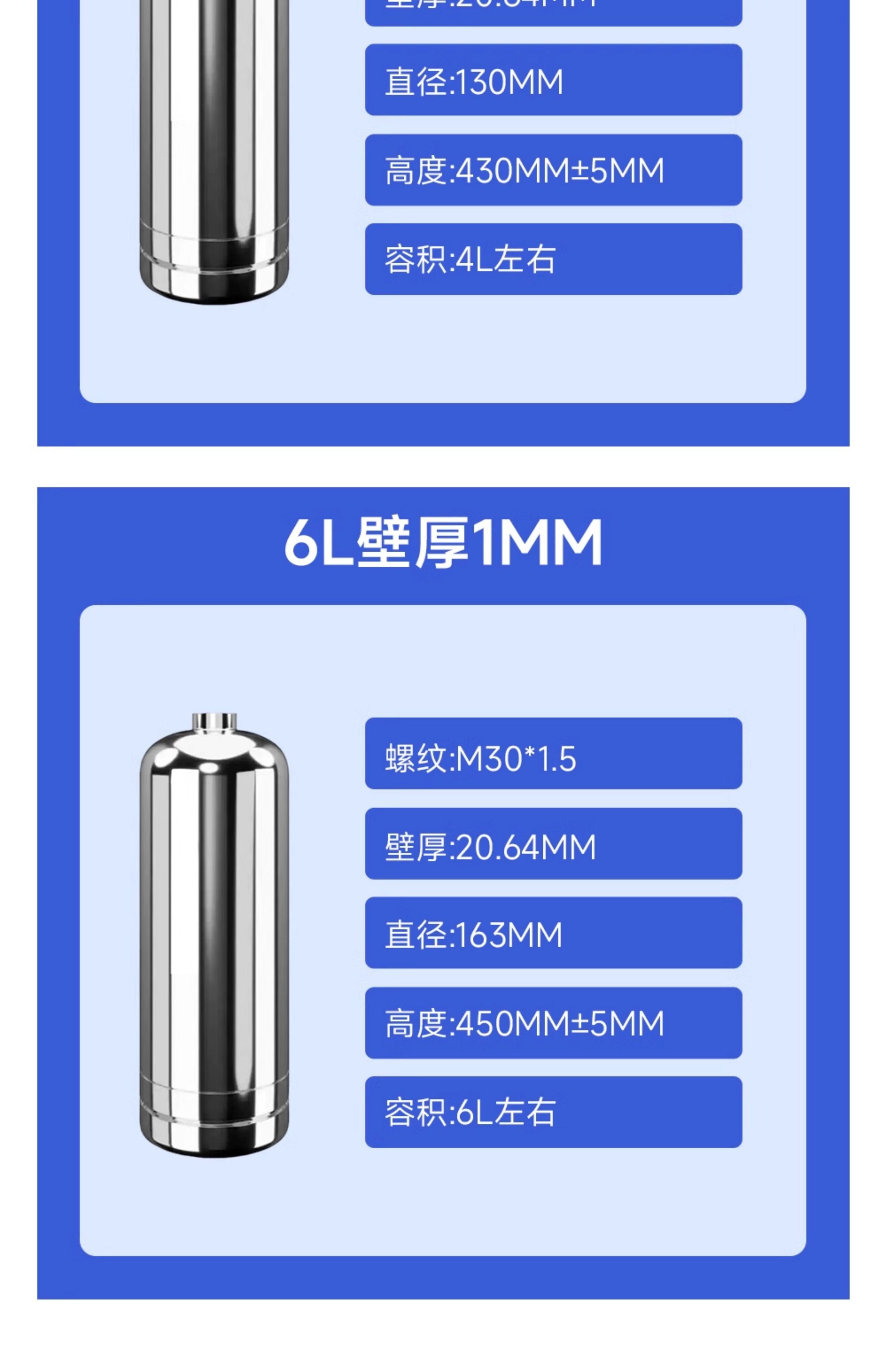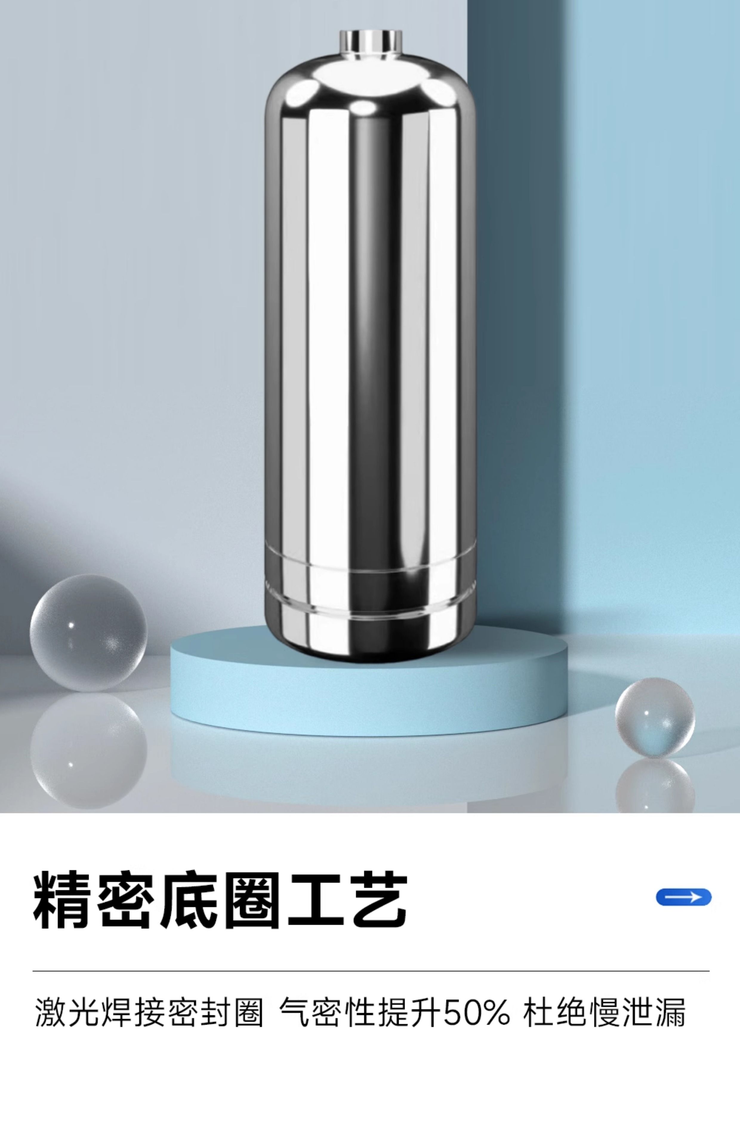 304 stainless steel fire extinguisher bottle cylinder 1.3L/2.8L/4L water-based/dry powder ring type stainless steel bottle 4L wall thickness 1mm