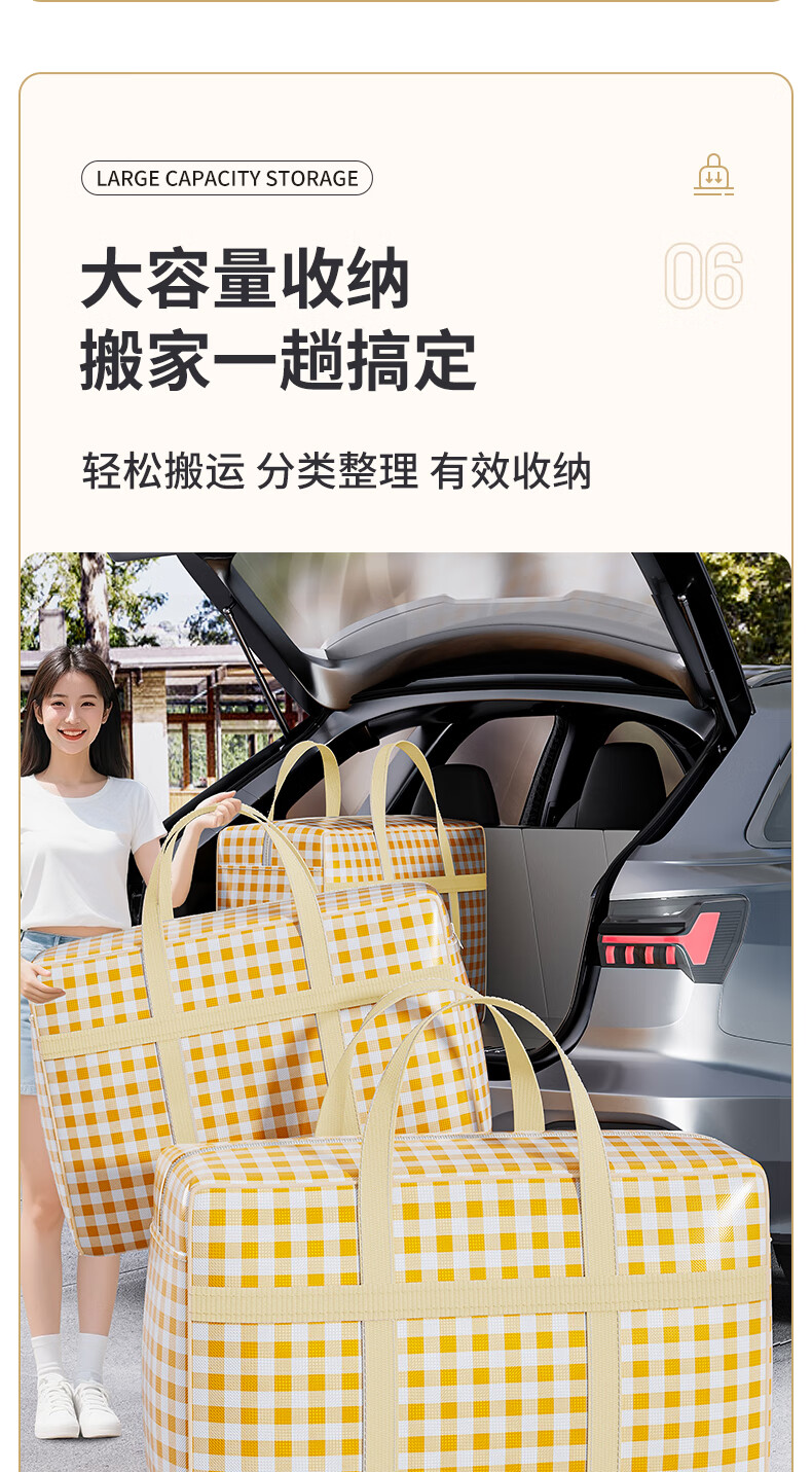 Youna moving packing bag quilt storage bag organization bag large capacity student dormitory clothing quilt special artifact extra large - yellow plaid 80*50*25cm