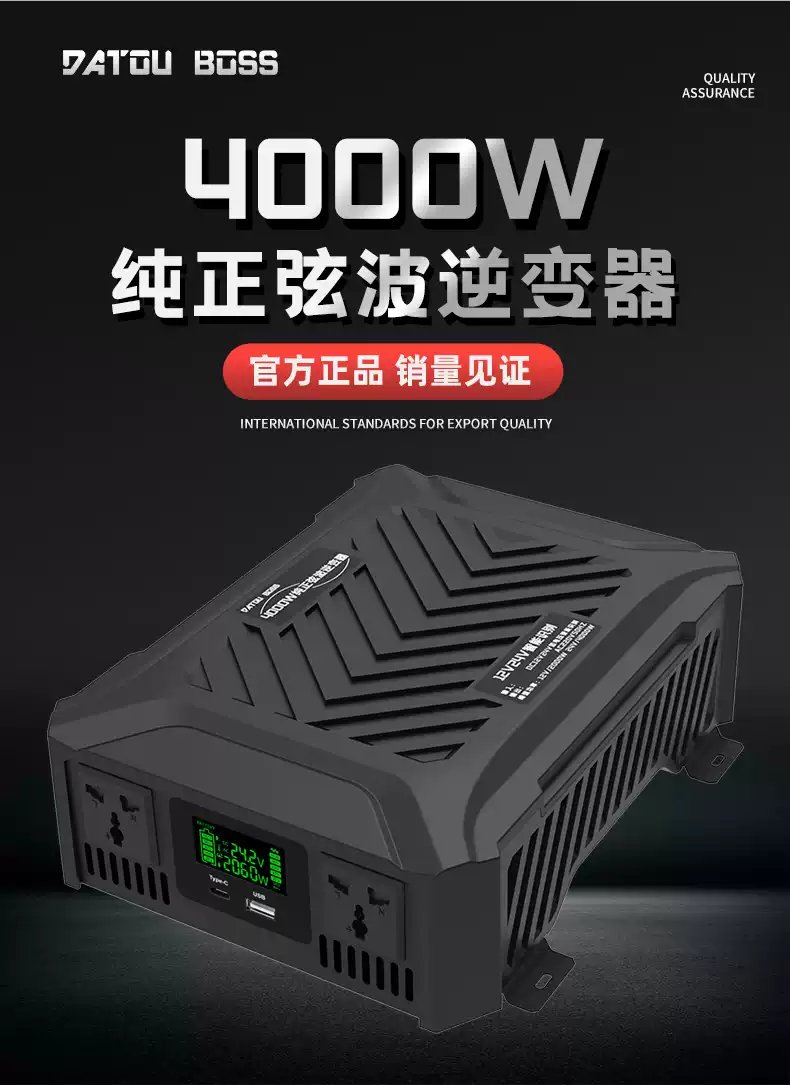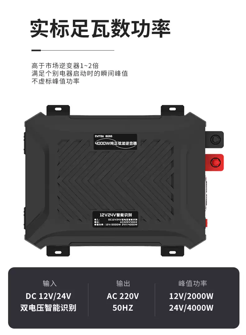 Pure sine wave inverter for intelligent identification of high-power trucks, black 4000W 220V12V