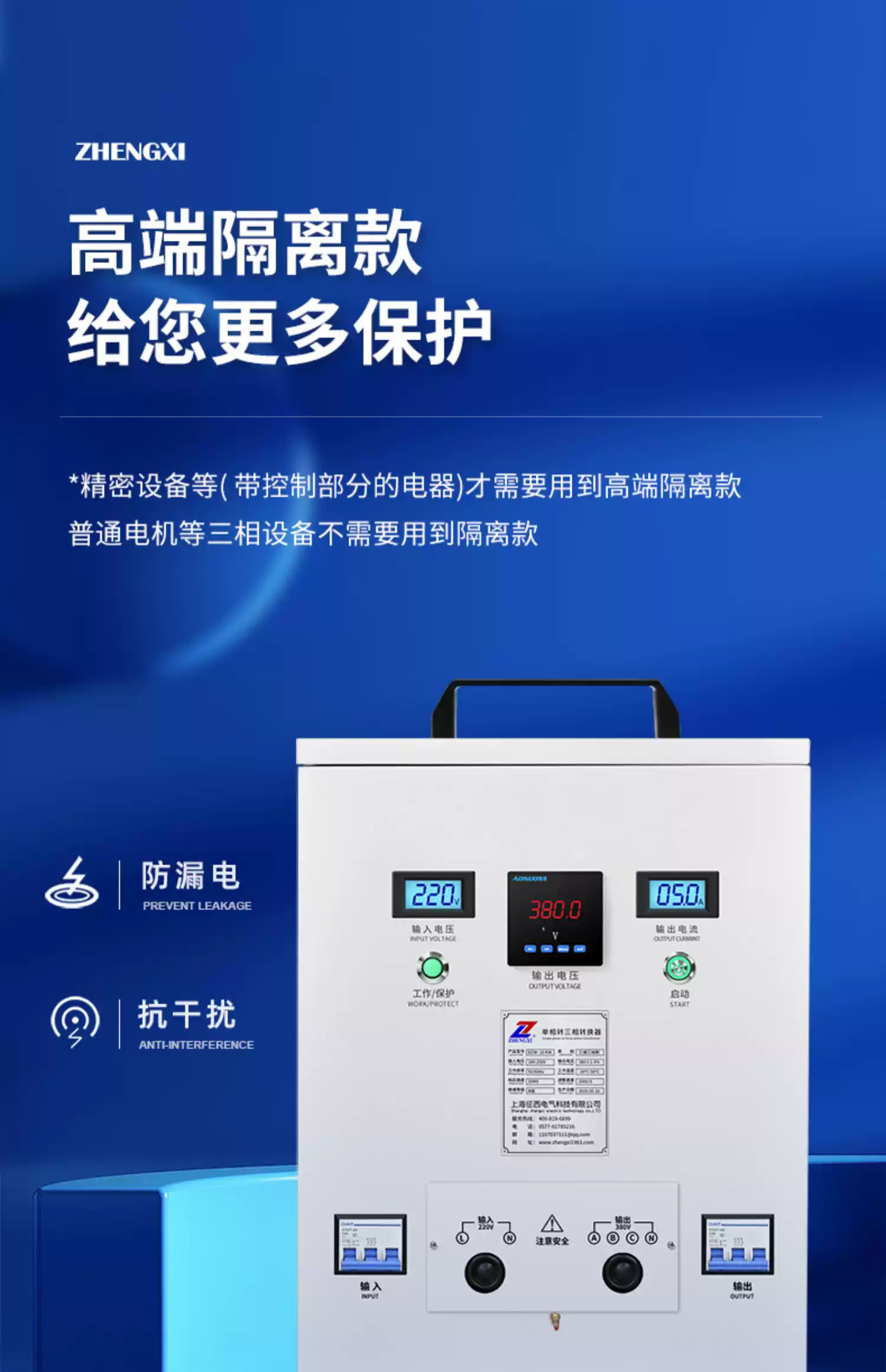 Zhengxi to single-phase to three-phase boost inverter voltage converter power isolation transformer three-phase three-wire 60VA