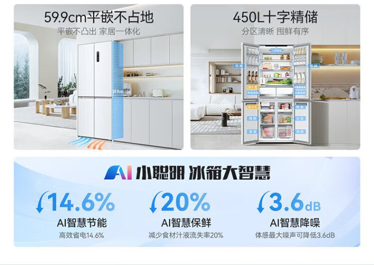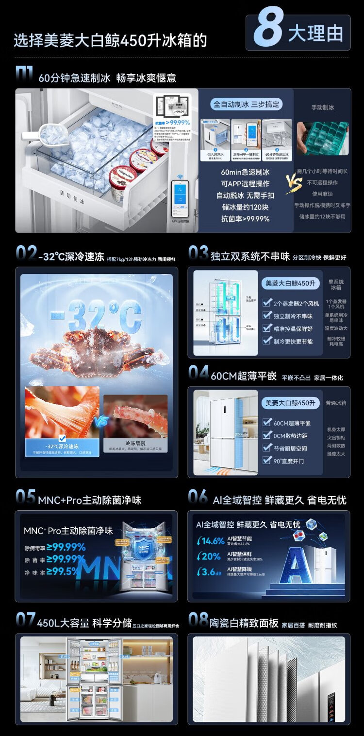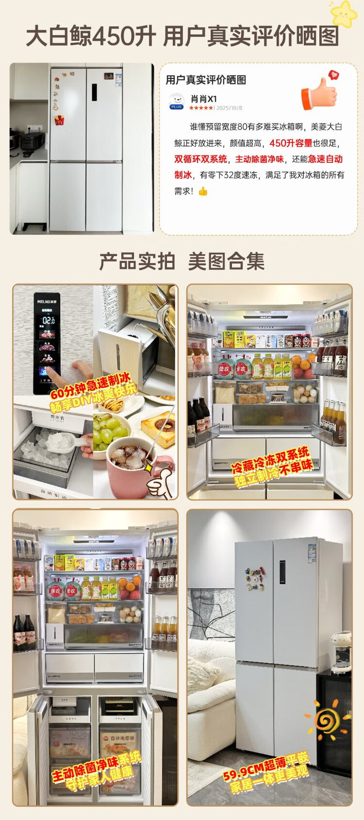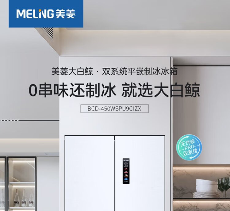 MeiLing Beluga Refrigerator 450L cross-door ultra-thin zero-level embedded automatic ice making bottom cooling dual system dual cycle first-level air cooling subsidy refrigerator White Beluga-BCD-450WSPU9CIZX