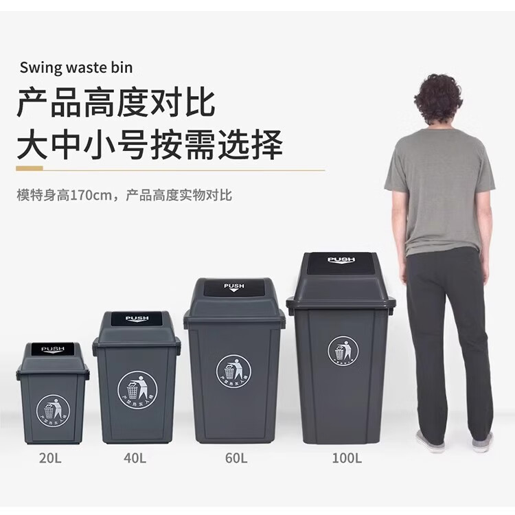 Can be invoiced Trash can universal wheel large outdoor sanitation large capacity commercial outdoor mobile wheel jazz gray 30L wheeled with cover