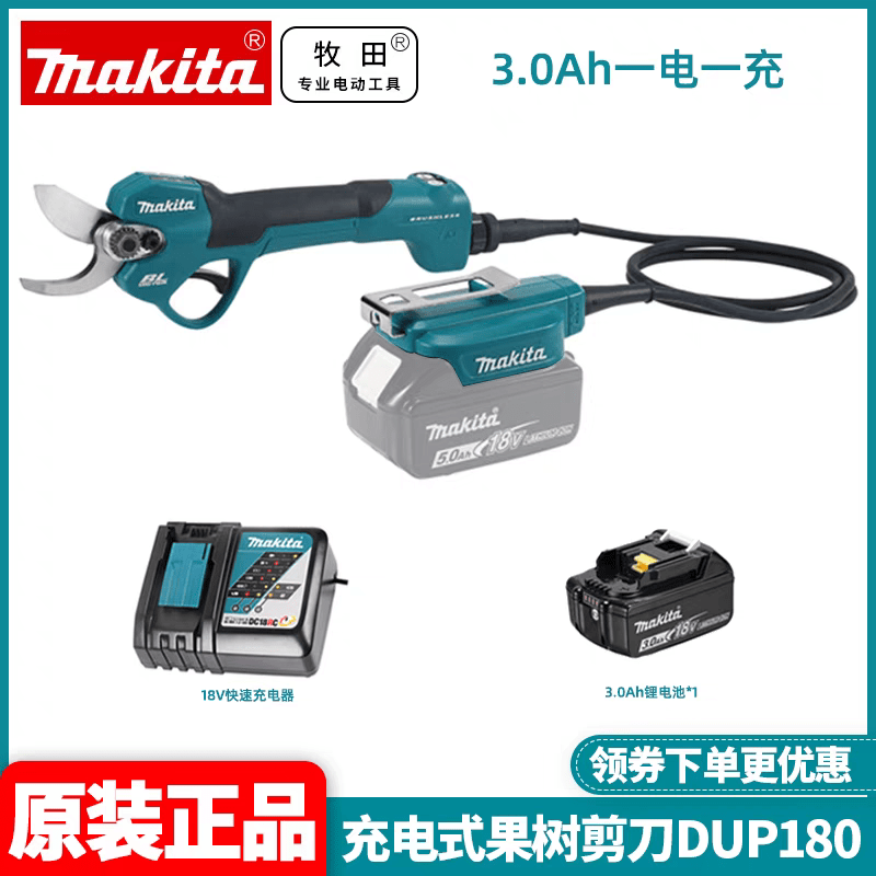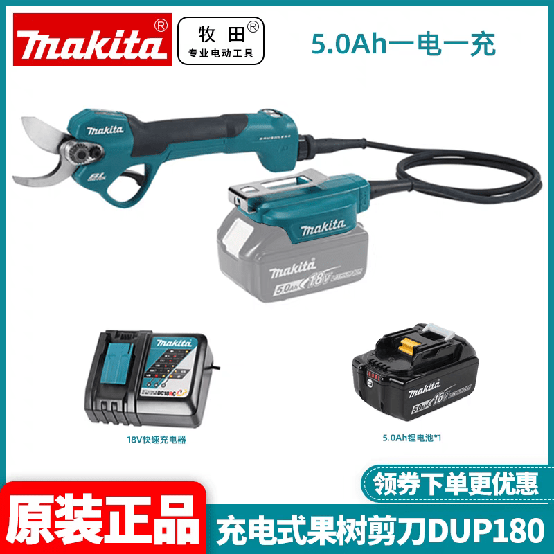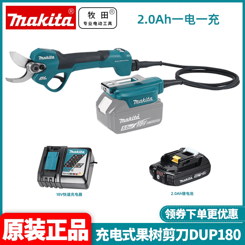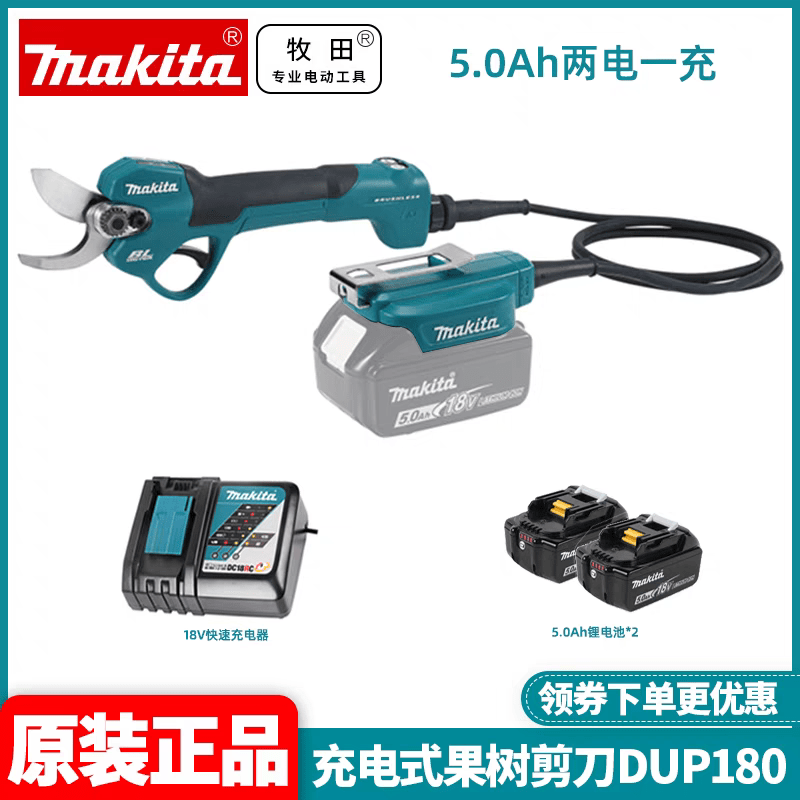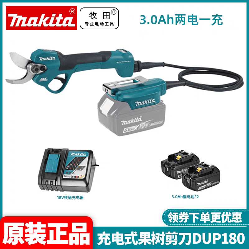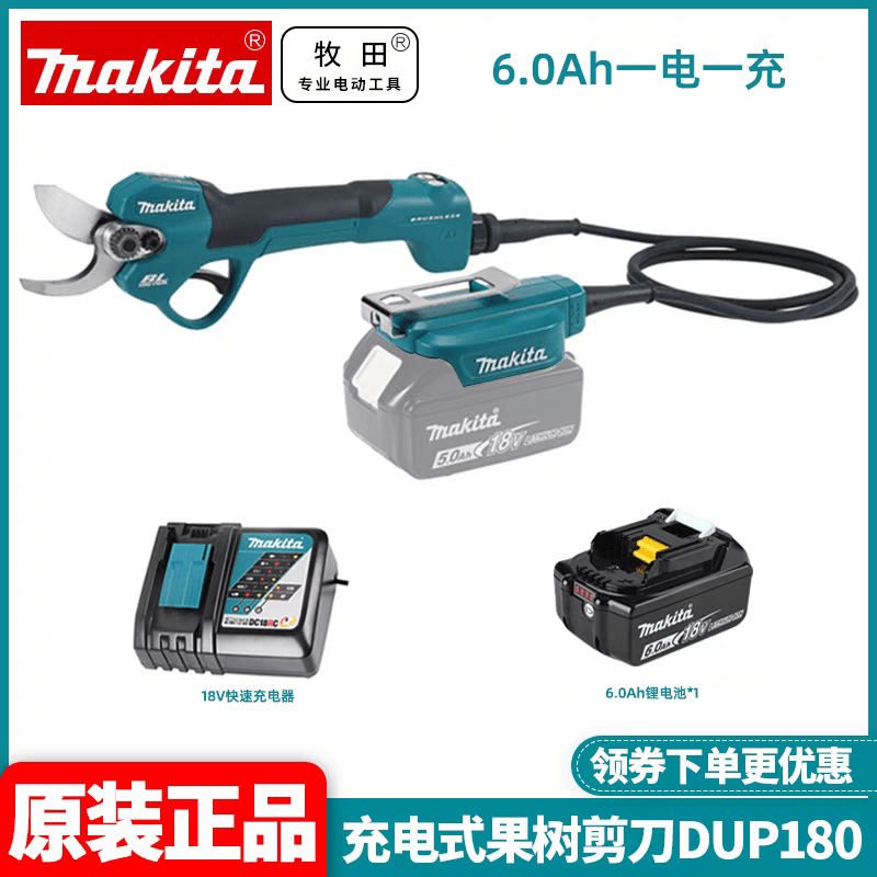 Makita (MAKITA) DUP180Z rechargeable fruit tree scissors electric scissors garden fruit tree pruning branches 18V lithium battery brushless Makita DUP180Z set 6.0AH two batteries and one charge (National Alliance