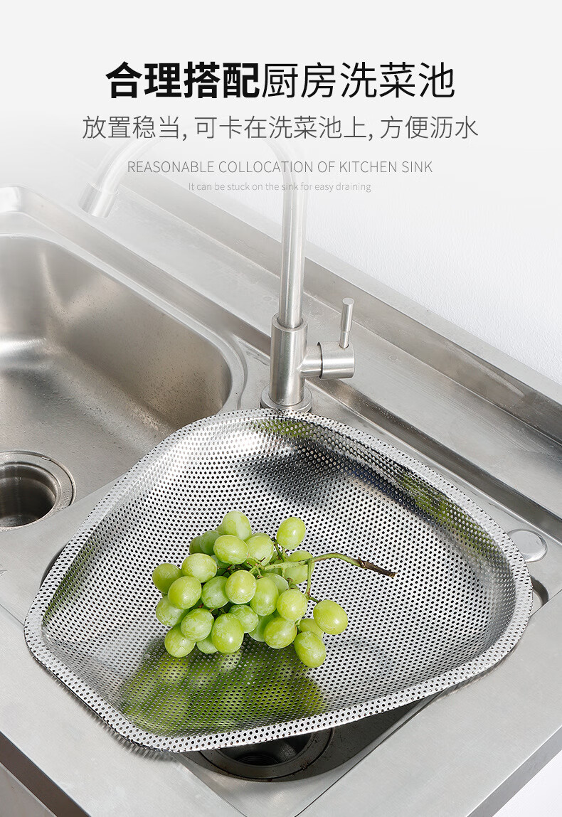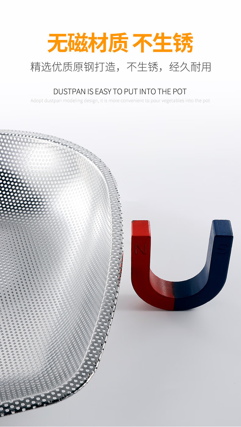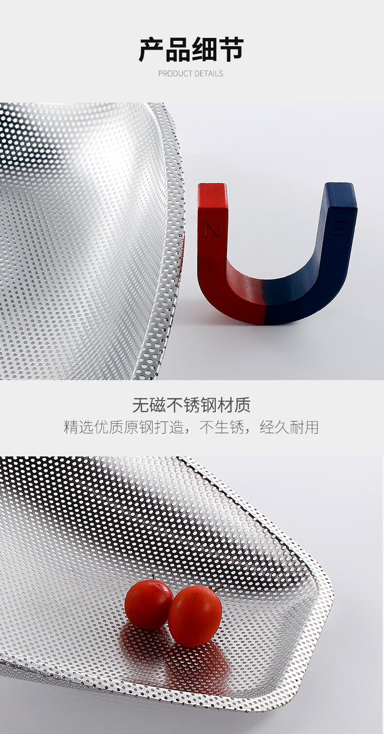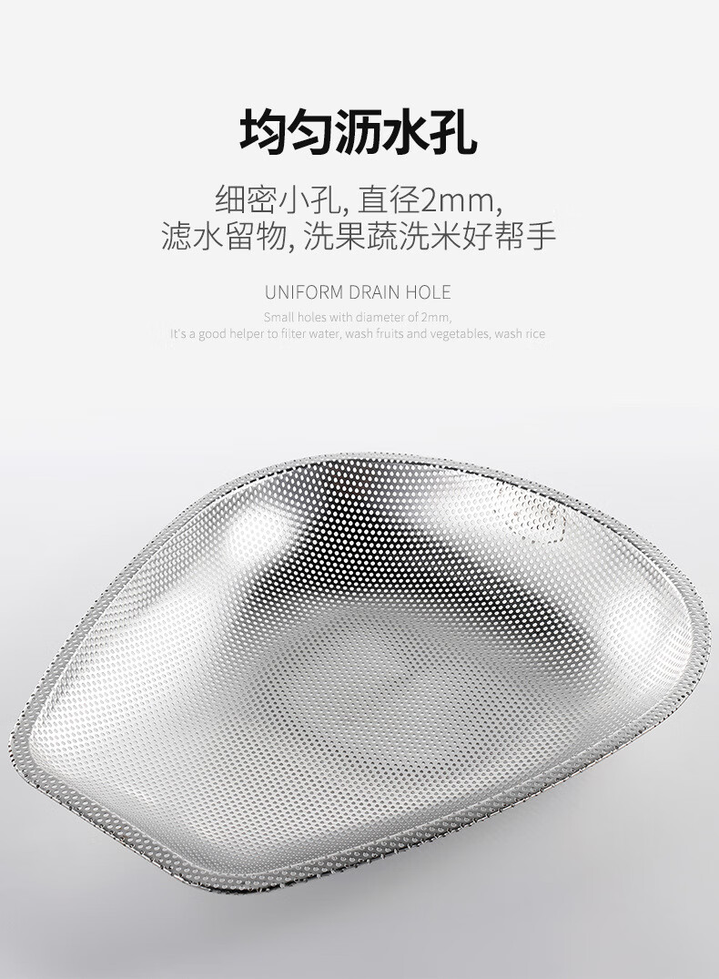 FVFH German stainless steel rice draining sieve leaking rice leaking sieve household vegetable washing rice basin filtering rice sieve leaking basin drain basket dustpan deepened food grade 40cm dense hole dustpan
