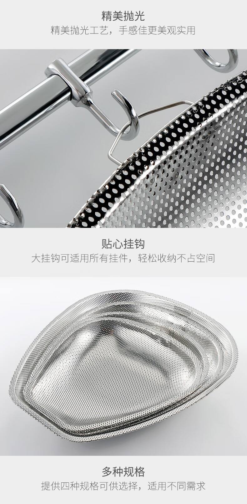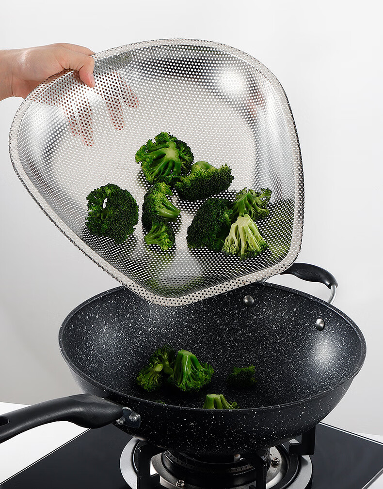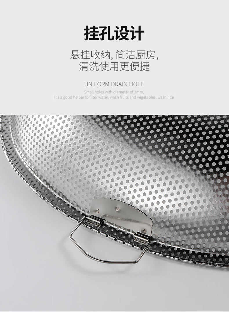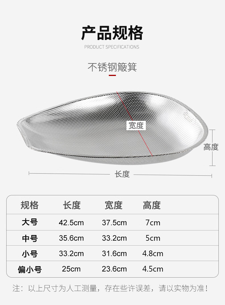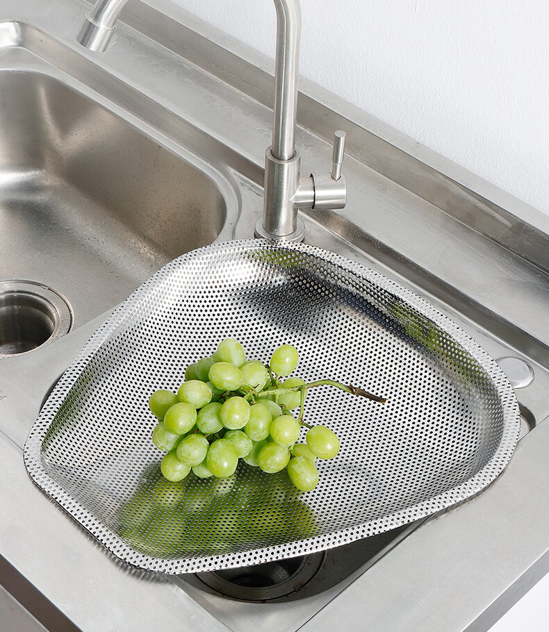FVFH German stainless steel rice draining sieve leaking rice leaking sieve household vegetable washing rice basin filtering rice sieve leaking basin drain basket dustpan deepened food grade 40cm dense hole dustpan
