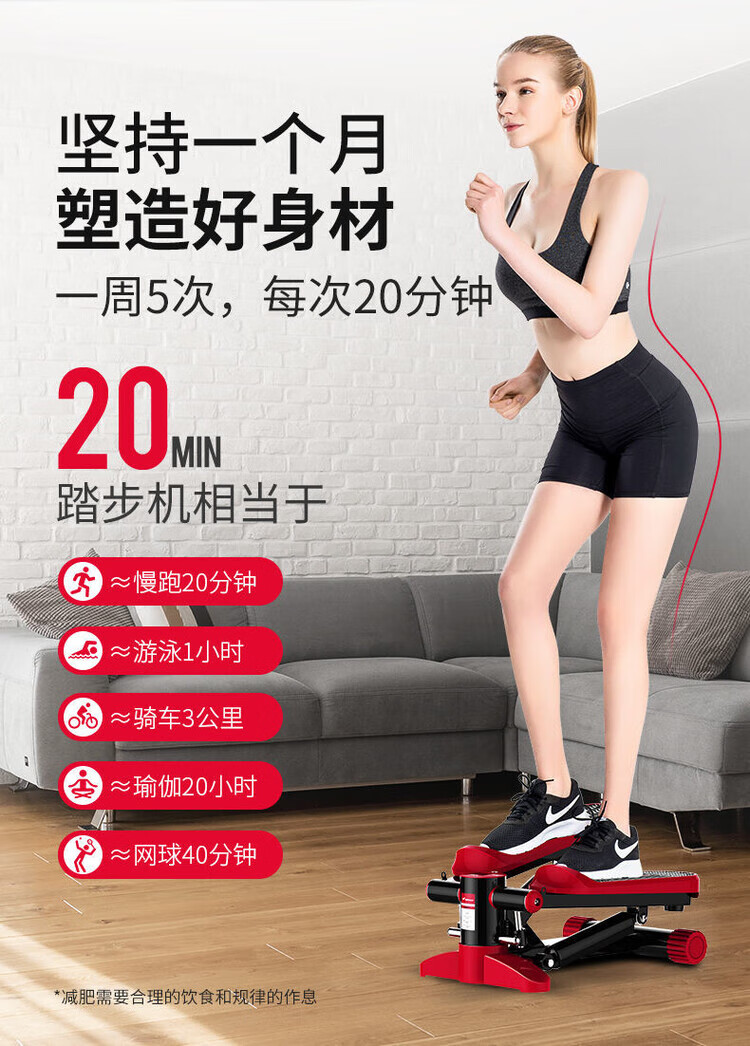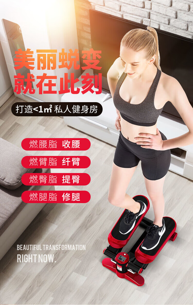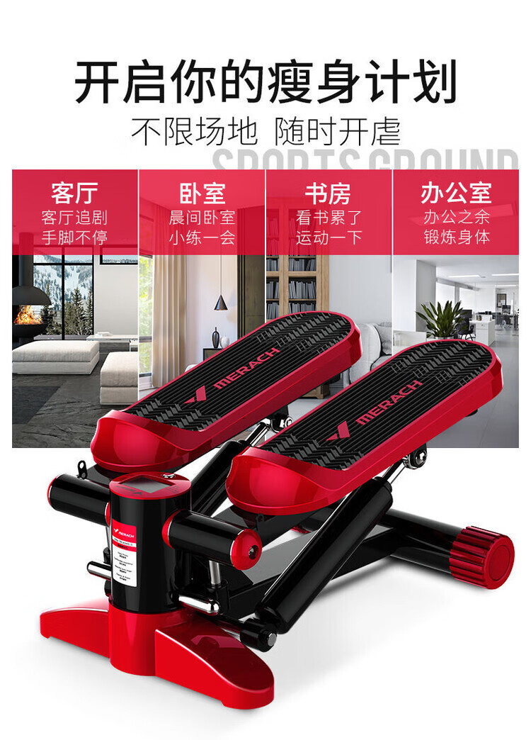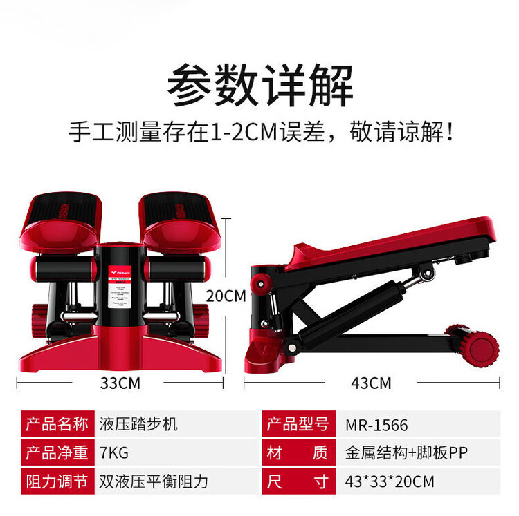 Merrick stepper, weight loss artifact, sports equipment, home fitness equipment, small in-situ pedal machine, silent, powerful dual hydraulic cylinders - reduce fat without hurting the knees, armrest style, silent and compact - load capacity 200 pounds - red