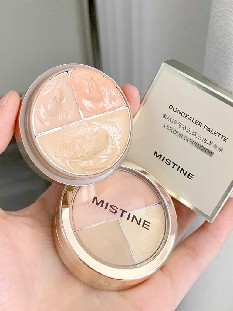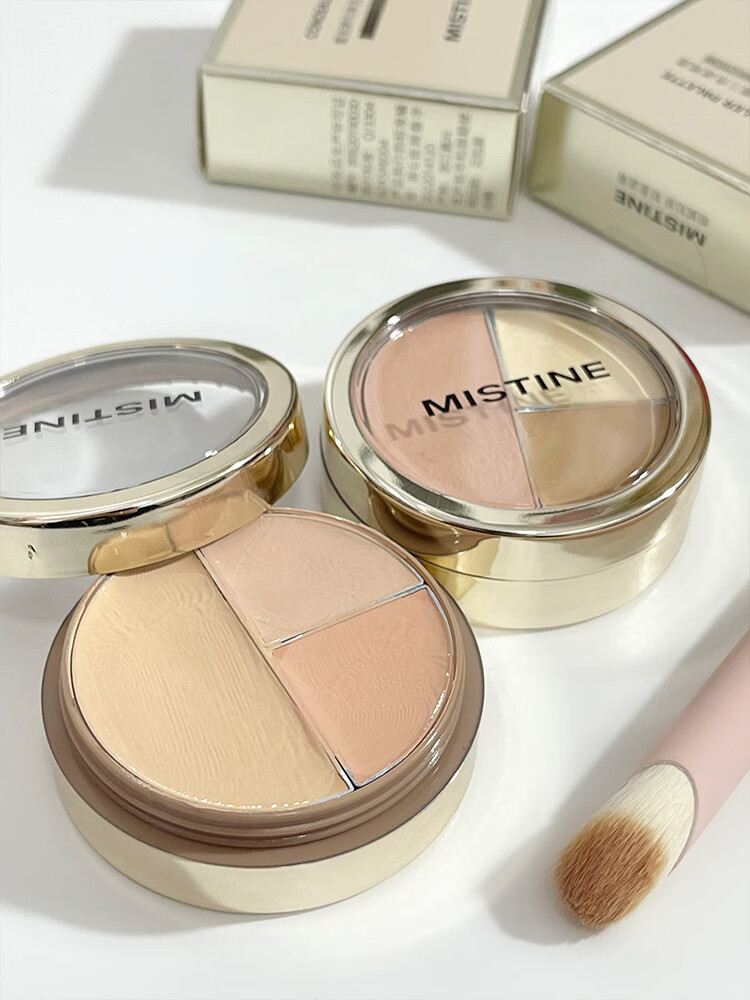 Mistine Three Color Concealer Palette Covers Acne Marks, Spots and Dark Circles, Moisturizes and Repairs Mistine Concealer 02# Custom Concealer Palette Invisible Dark Circles