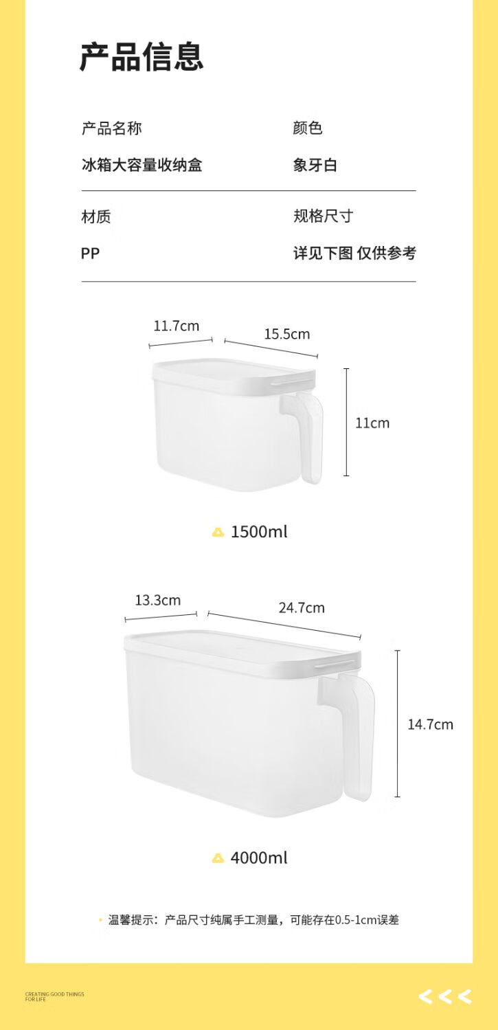 Harvest grain food-grade refrigerator storage box fresh-keeping box kitchen vegetable and fruit special organizing artifact frozen egg dumpling box white 4001ml 2 pieces classified fresh-keeping