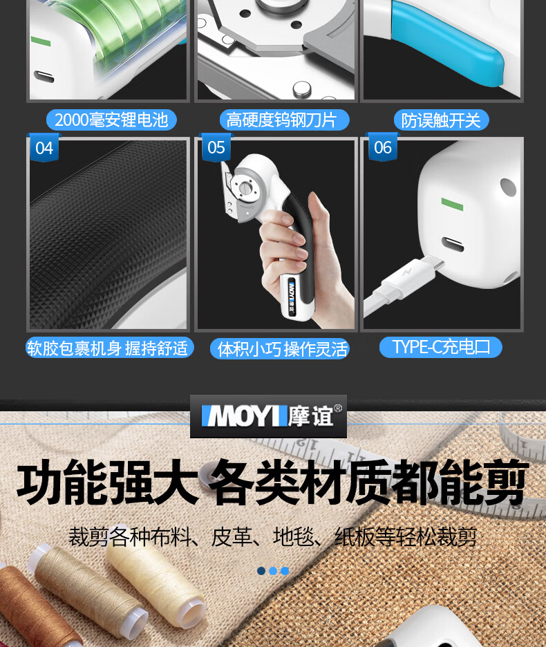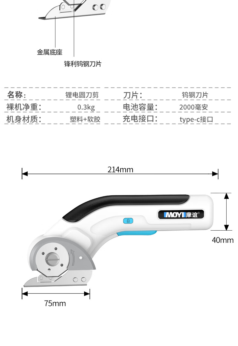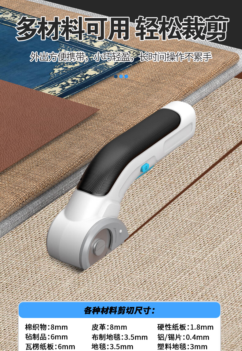 Electric circular knife cutting machine, hand-held household carpet leather cutting machine, small tailor-specific cloth cutting machine, torque upgrade, can cut thick cloth + 1 knife head