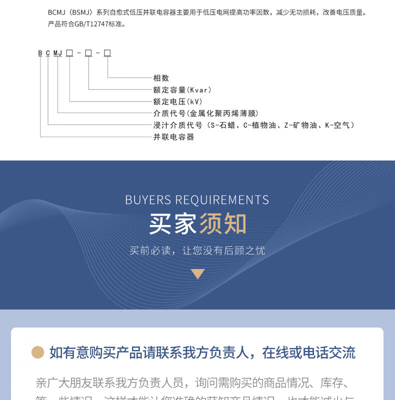 Self-healing low-voltage parallel power capacitor BSMJBCMJ0.4/0.45 three-phase reactive power compensation 0.45-12-3