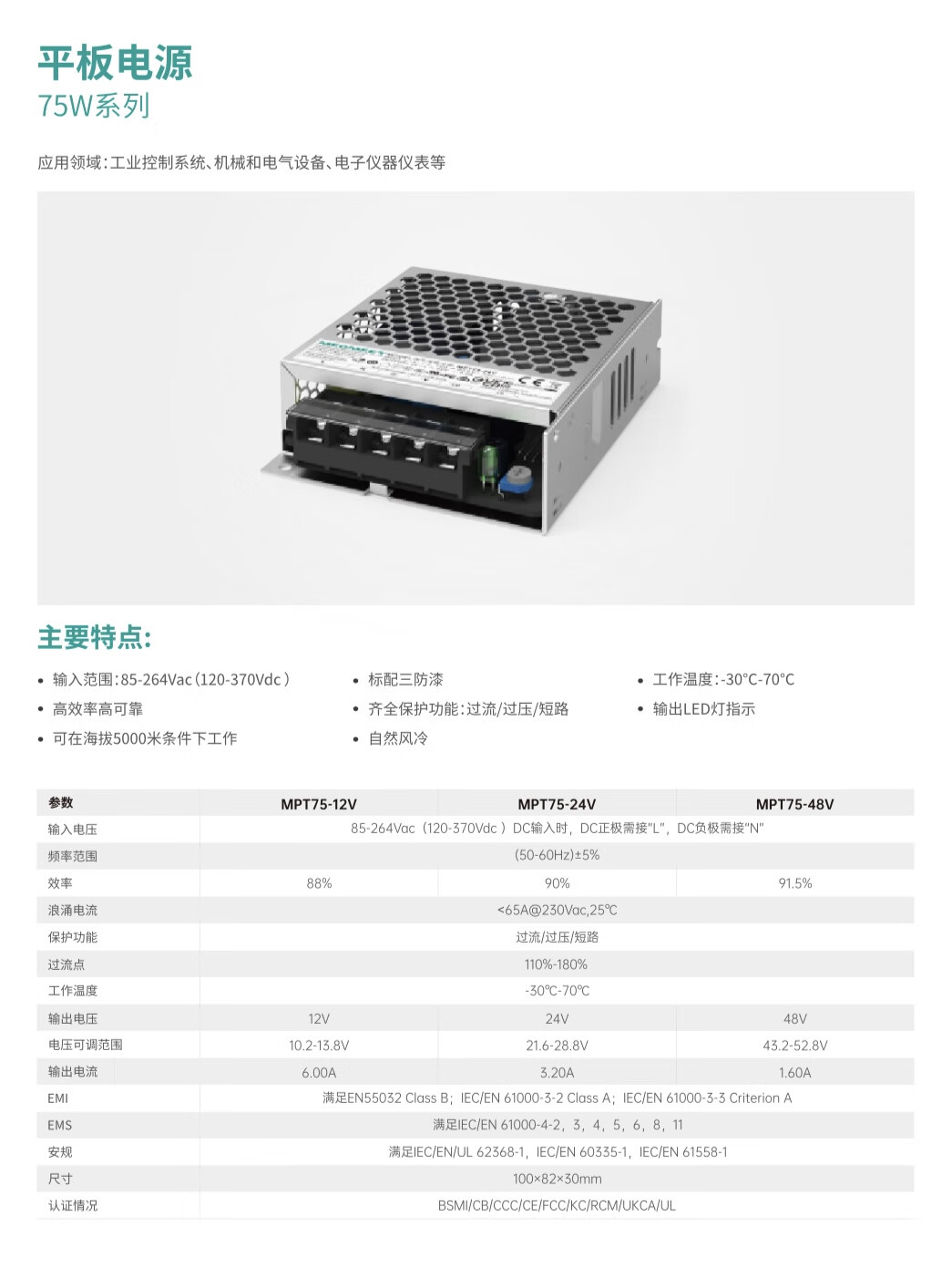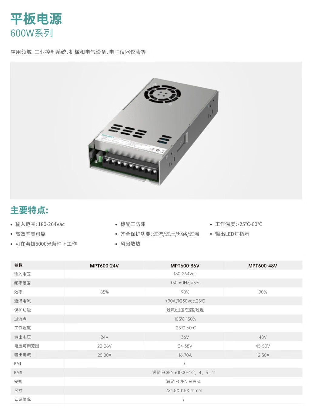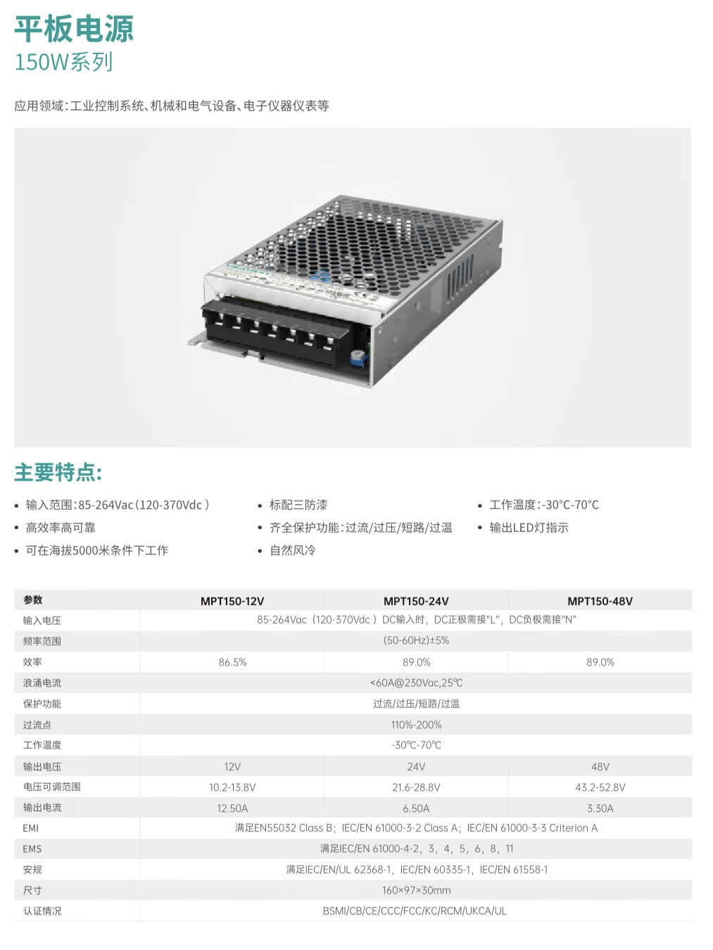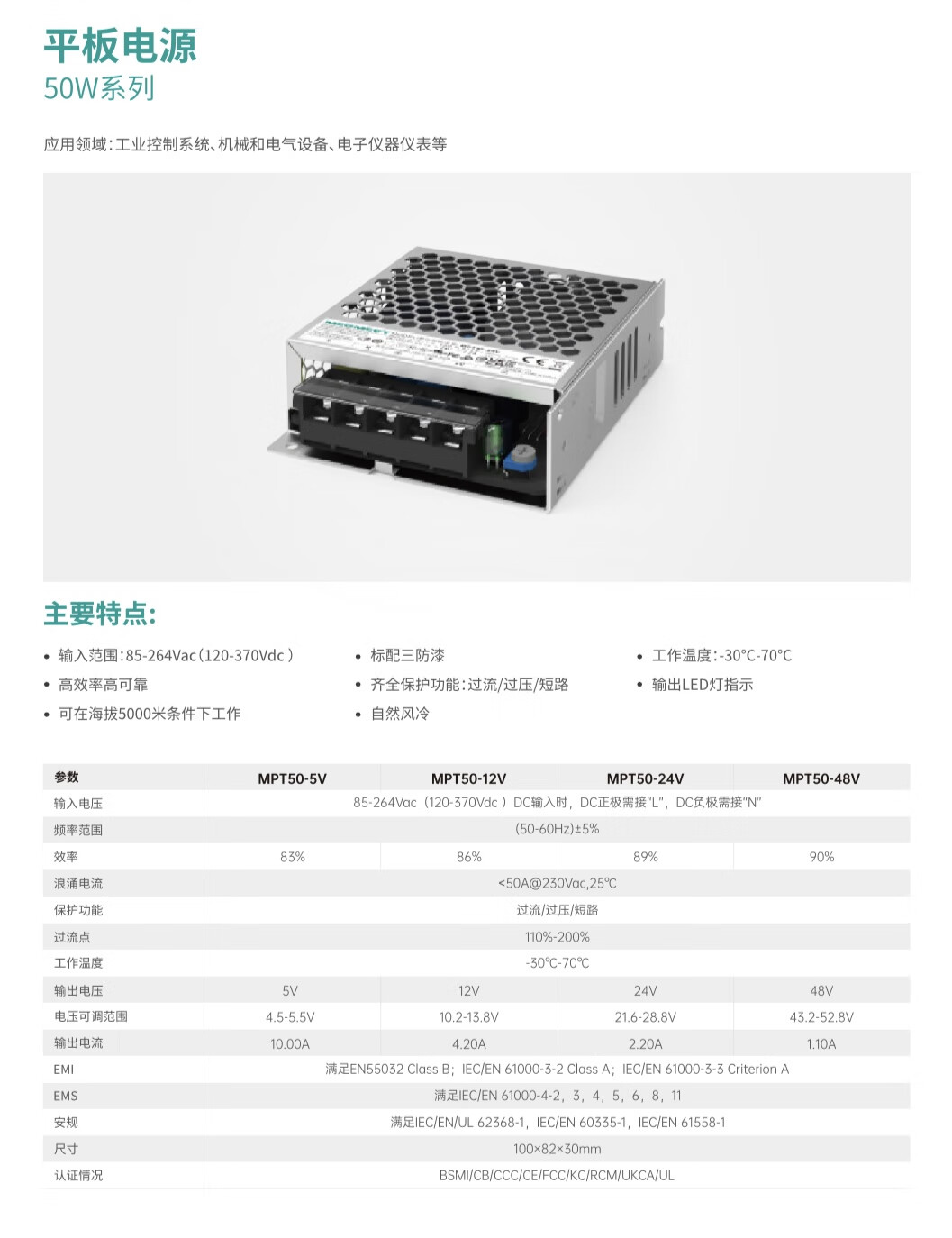 Megmeet 350 switching power supply 220 to 24V12V5 DC 36/48 transformer fully certified including UL MPT50-2424V2.2A