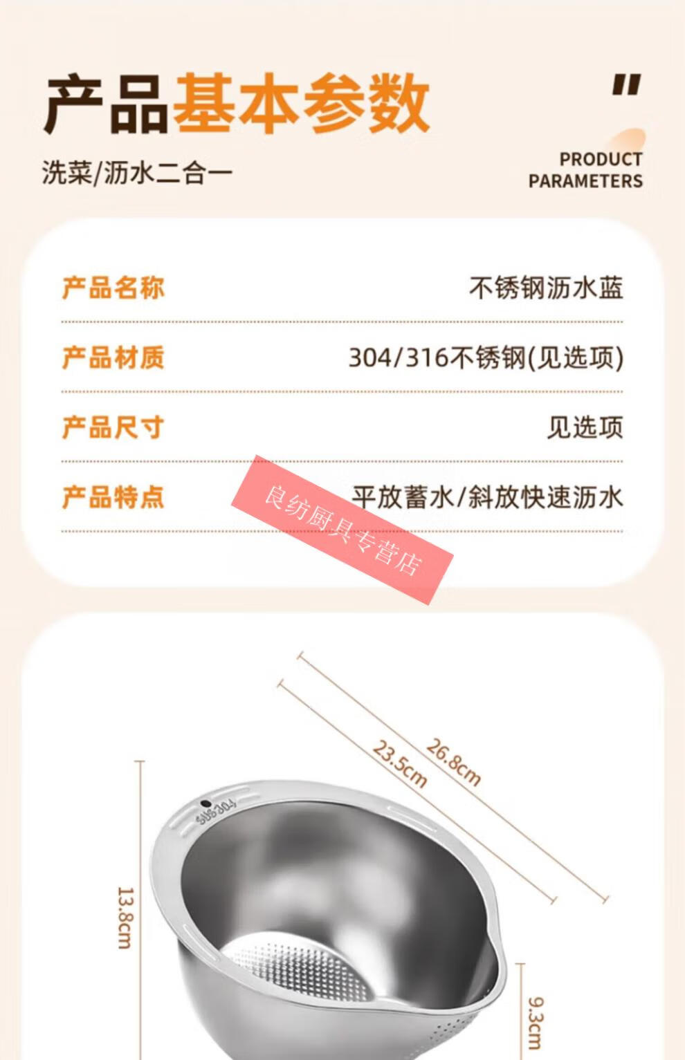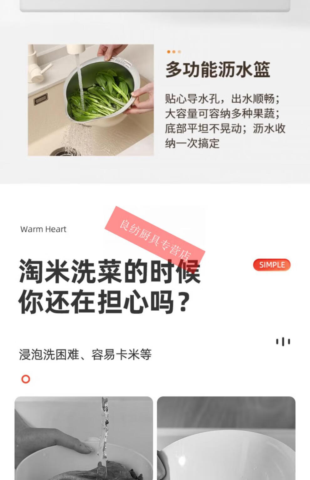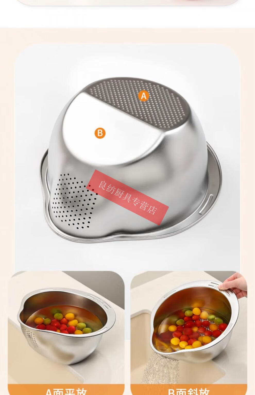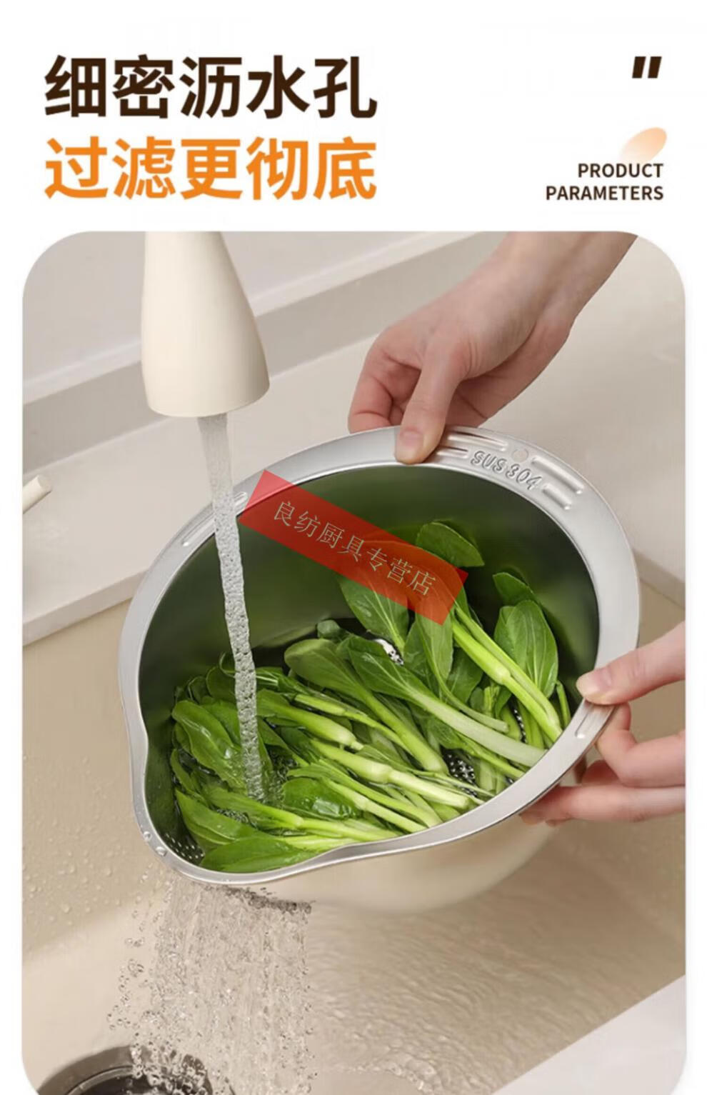 WMF Futengbao 316 stainless steel basin drain basket rice cleaning artifact rice washing sieve household kitchen vegetable washing special drain basin second generation upgrade 304 stainless steel drain basket