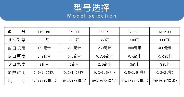 Kaifeng hand-pressed small plastic aluminum foil bag food tea bag film bird's nest film sealing machine 150400 long sf150 long 150mm