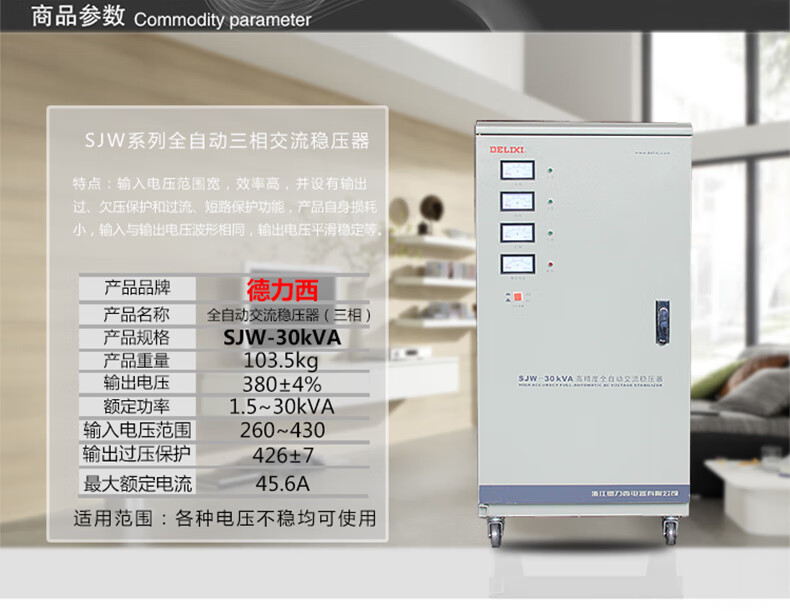 DELIXI ELECTRIC three-phase 380v power supply voltage regulator 30kw high power 30Kv fully automatic voltage regulator 30000w voltage regulator_3KVA