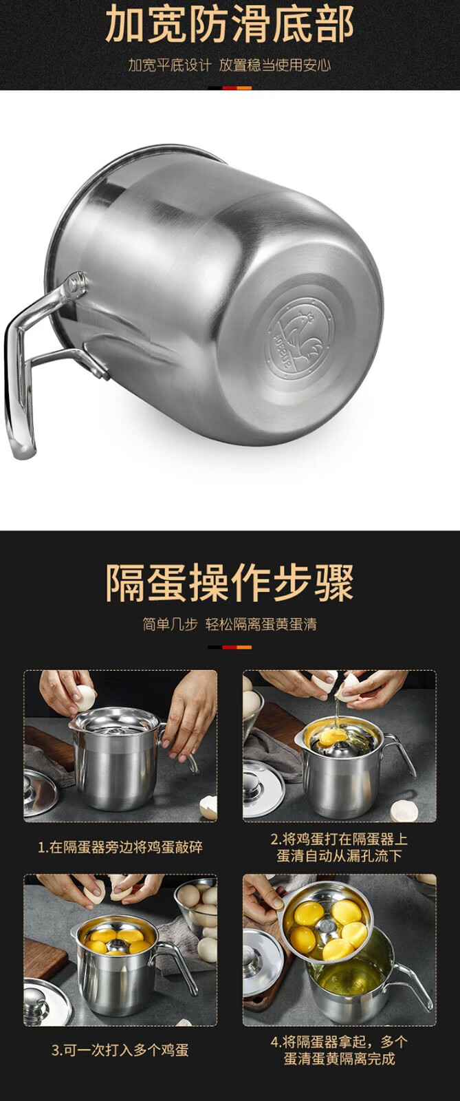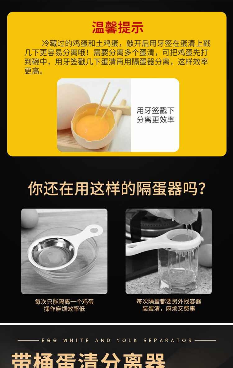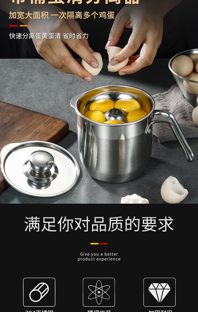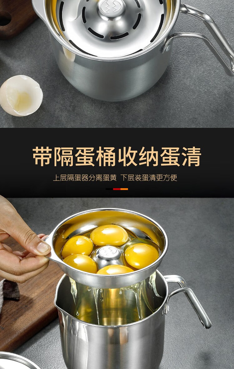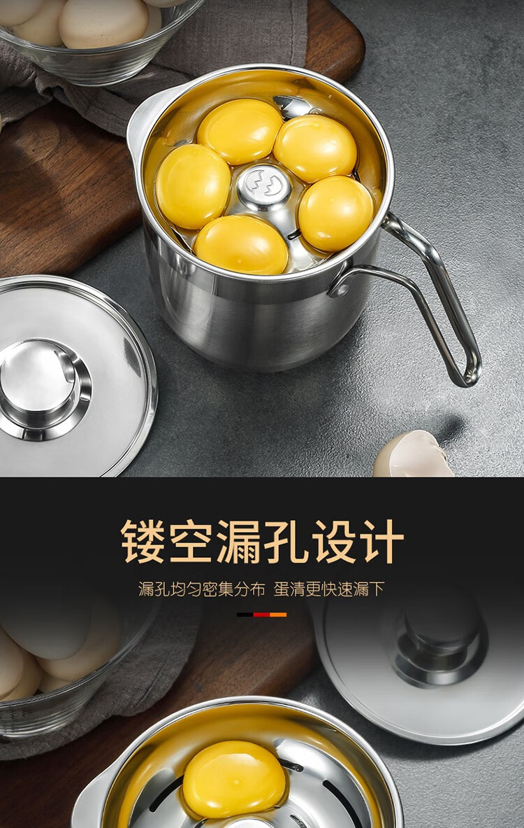 CLH egg white separator 304 stainless steel food supplement egg separator commercial baking gadget leaking egg separator three-piece small egg separator three-piece set