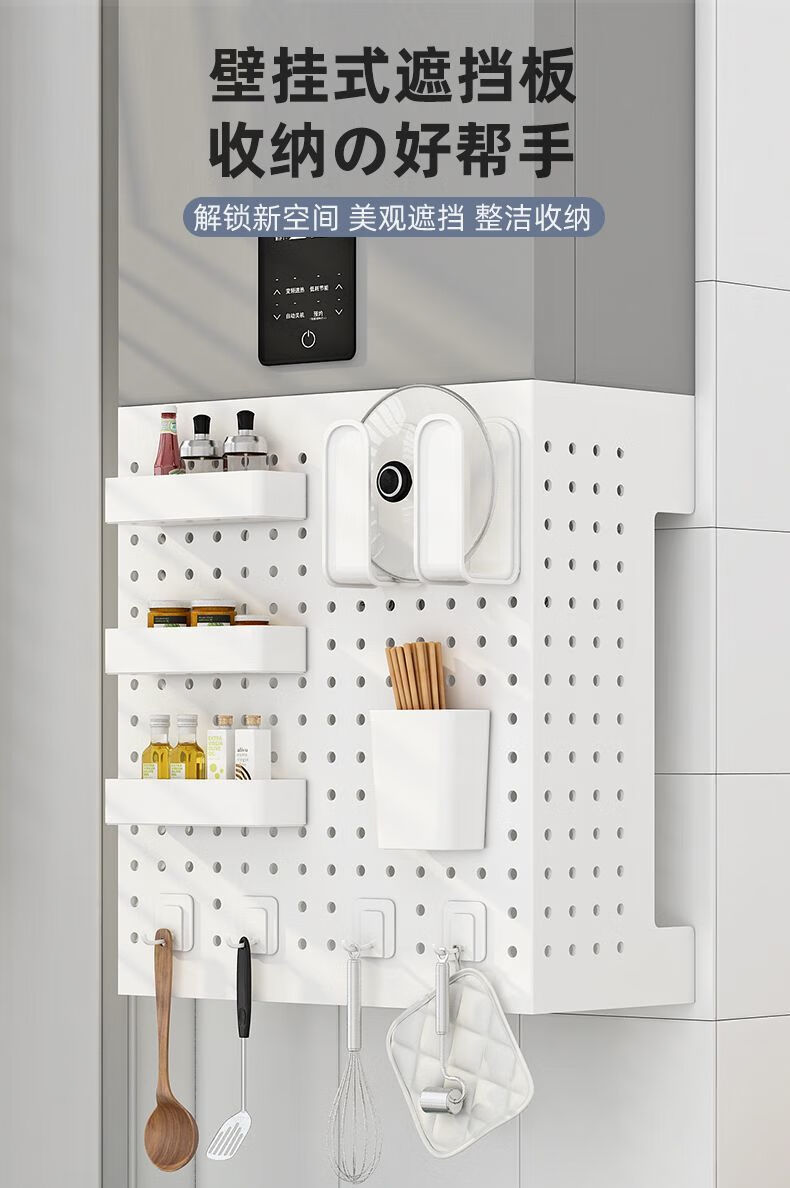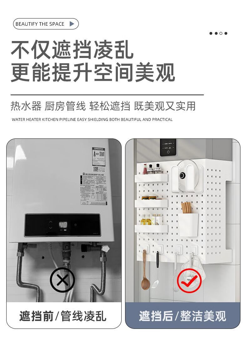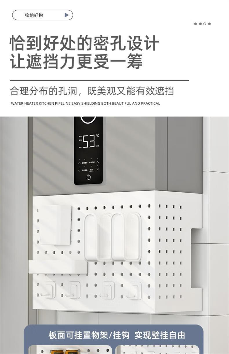 Shantou Lincun gas water heater pipe shielding shelf decorative hole board kitchen wall-mounted gas stove cover white length 35 height 30 depth 17+ storage set