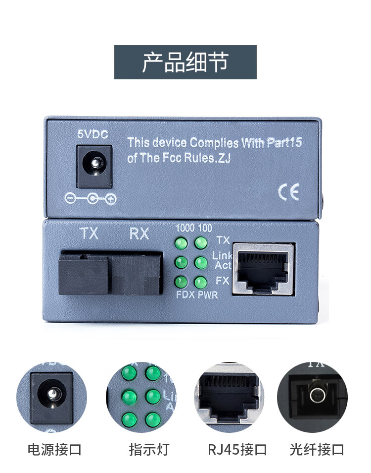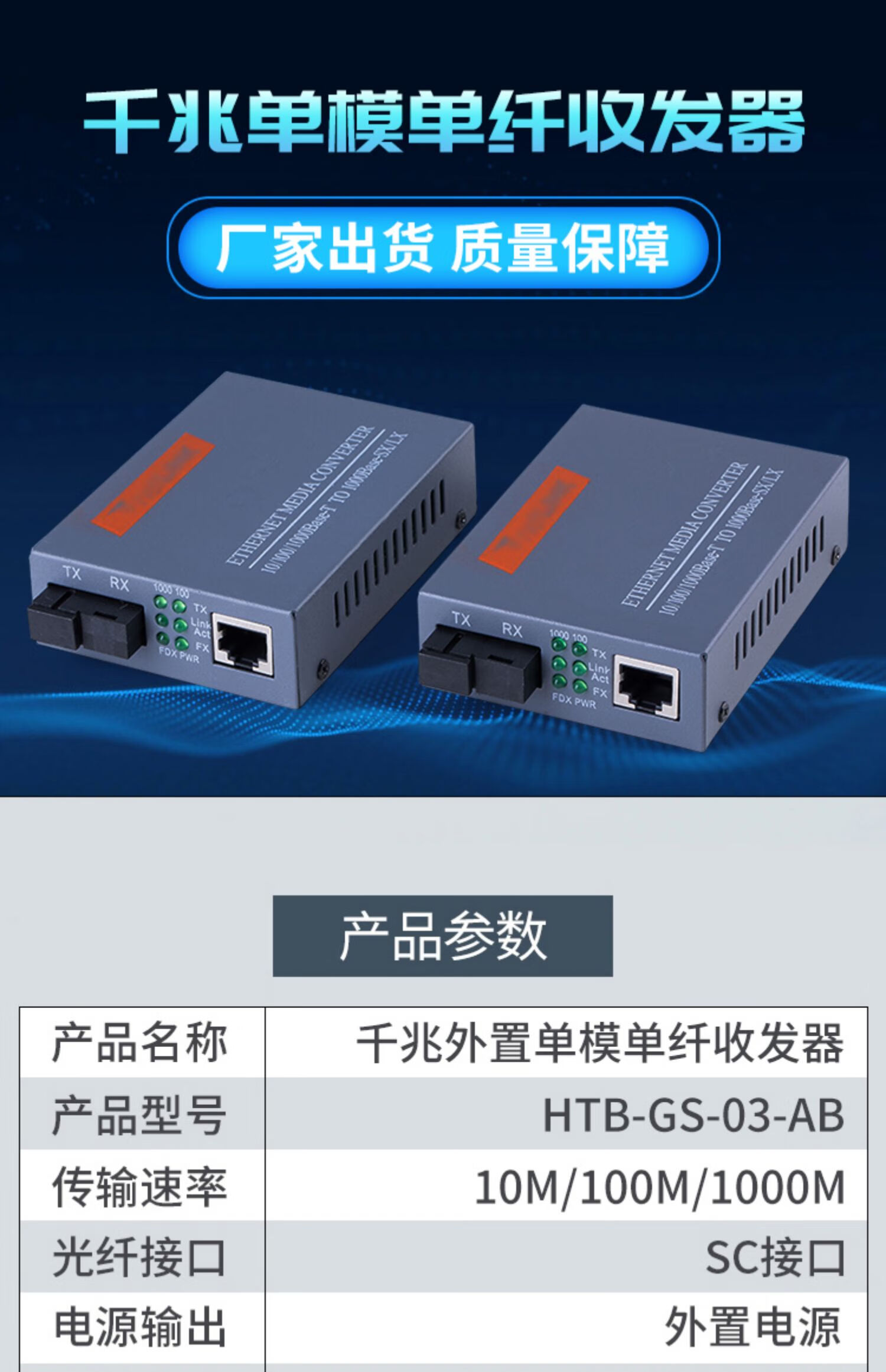 LHGD Gigabit single-mode single-fiber optical fiber transceiver photoelectric converter external power supply GS-03-AB pair black neutral pair large power supply
