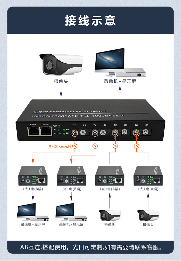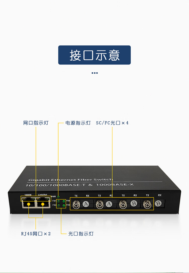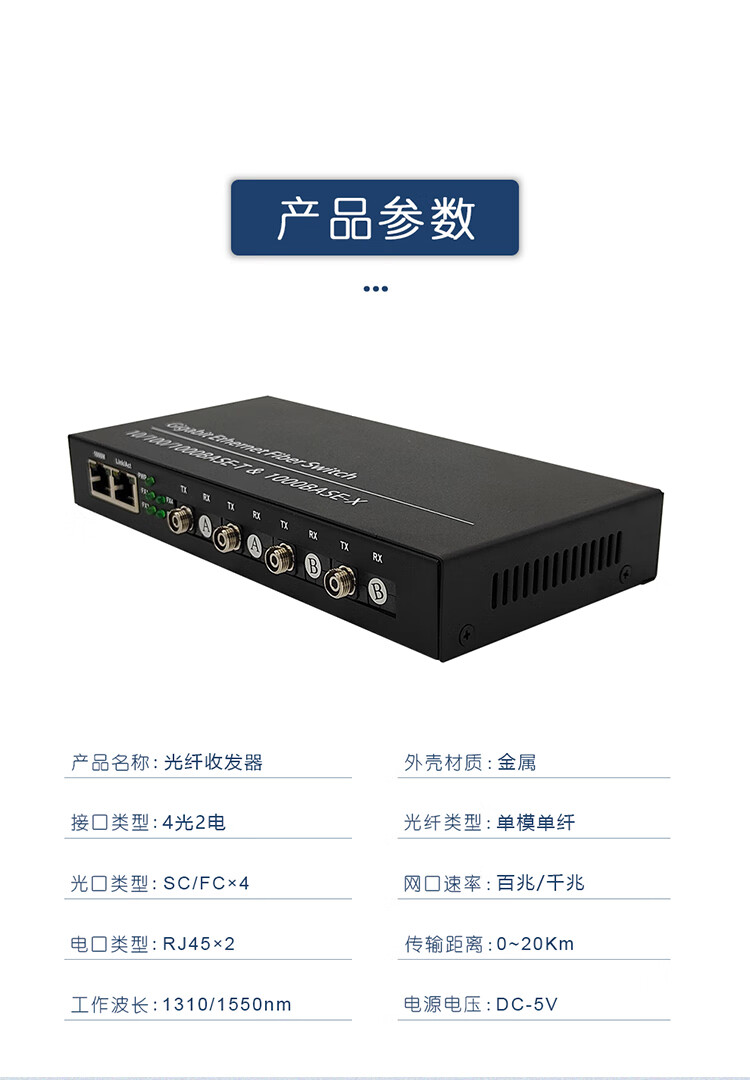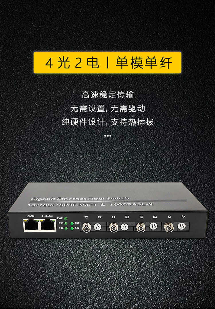Full Gigabit 4 optical 2 electrical fiber optic transceiver four optical 2 electrical optical switch single mode single fiber 100M optical to electrical converter SC square port - Gigabit 4 optical 2 electrical - 1 set