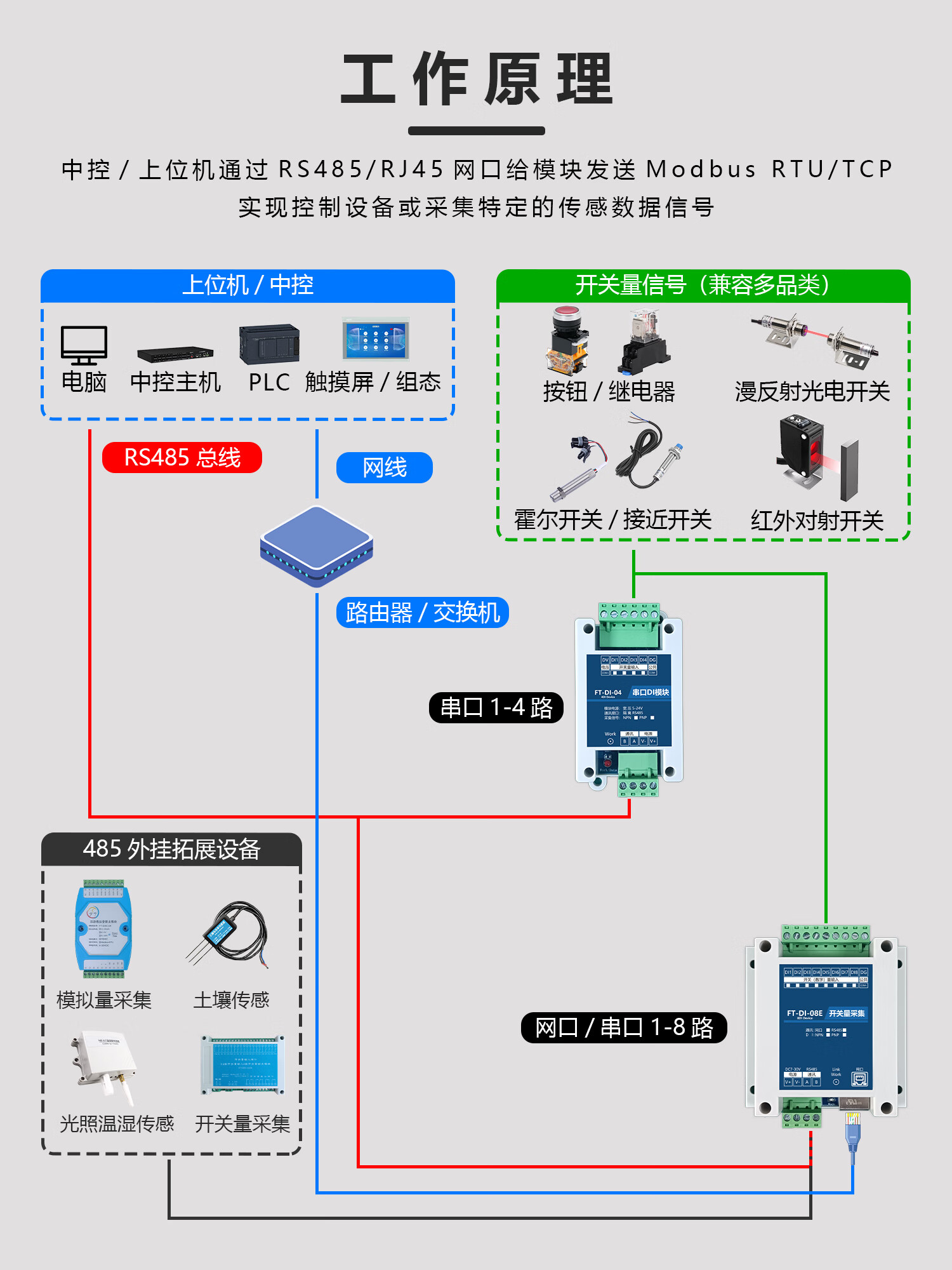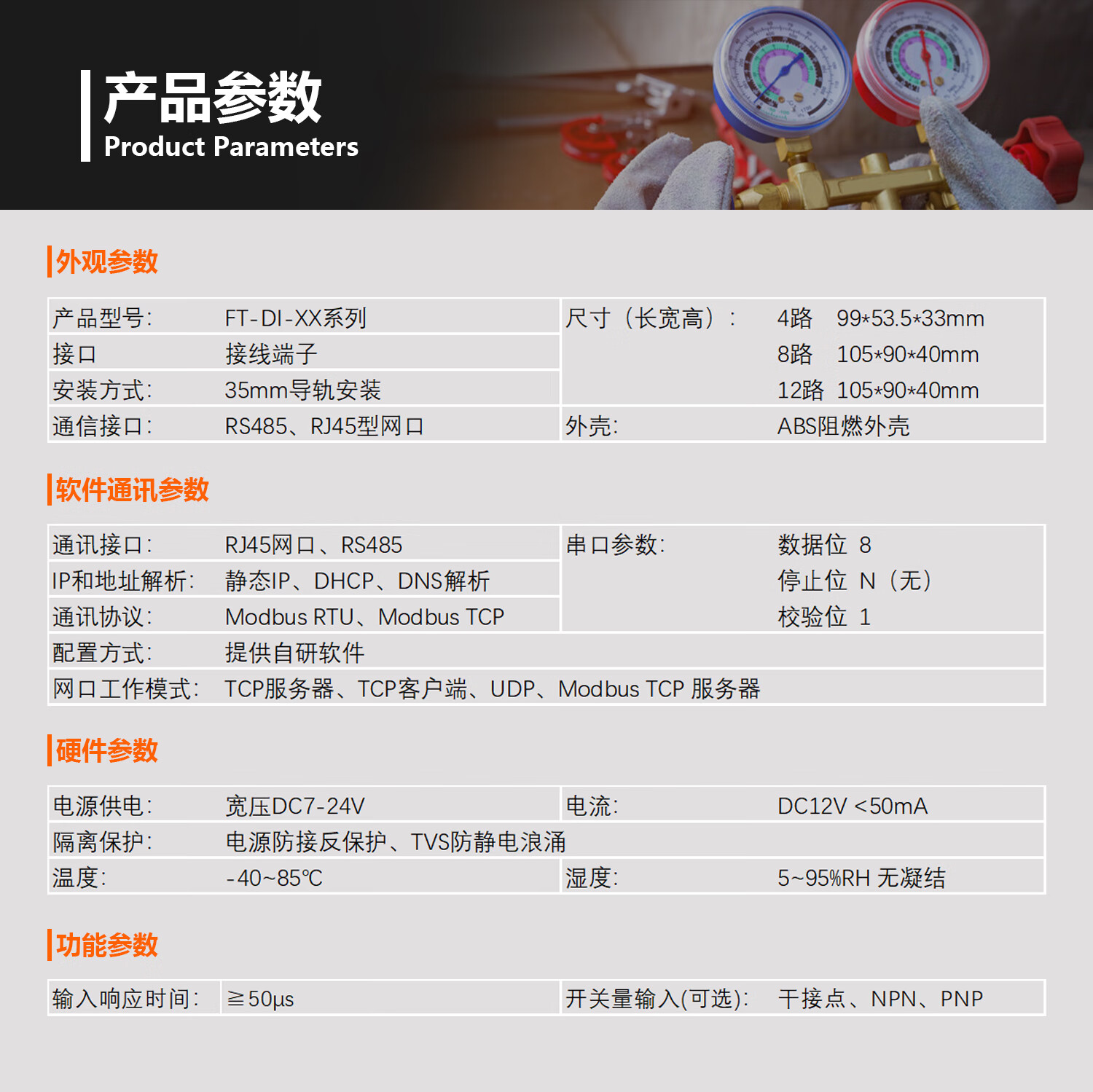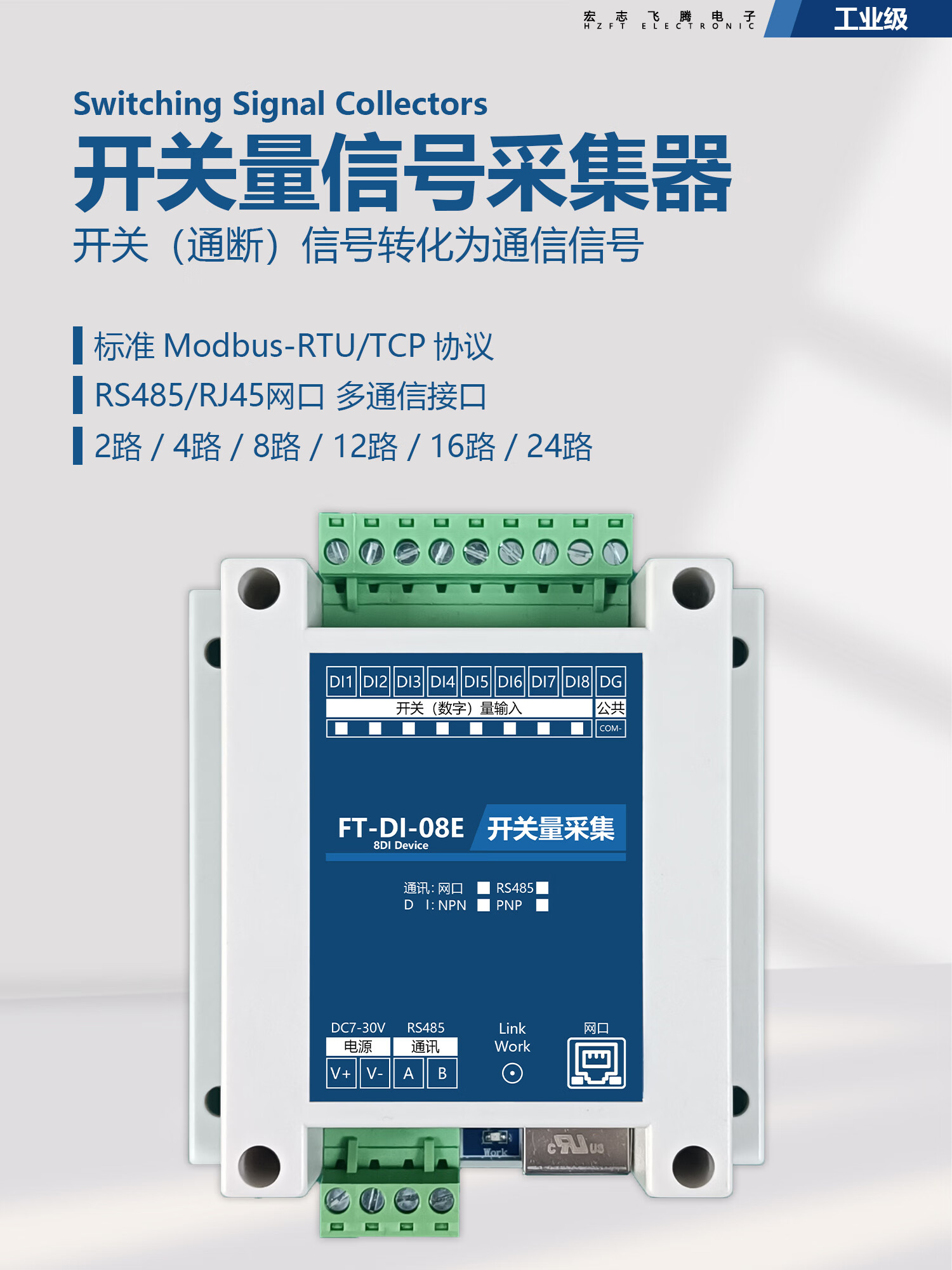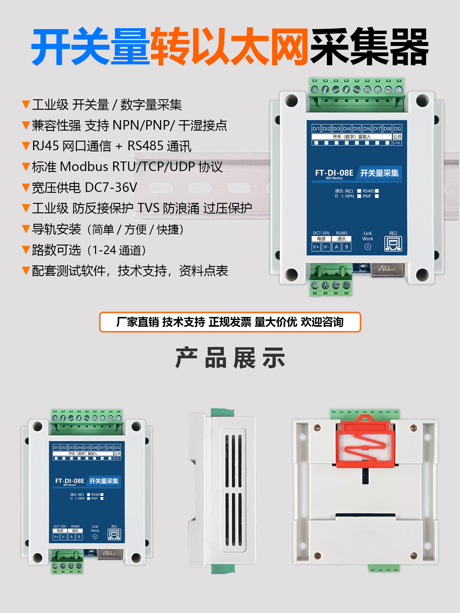Switch to Ethernet switch signal collection digital input modbus serial port proximity switch plc screen 2DI NPN compatible dry contact network port TCP/UDP/IP+48