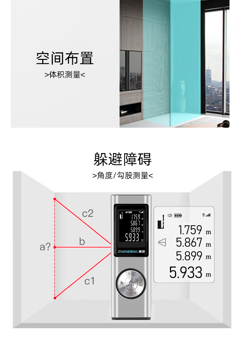 Zhenbing green light laser rangefinder infrared high-precision angle laser measurement handheld mini outdoor room measuring instrument 80 meters green light distance measurement + electronic level