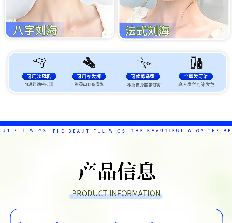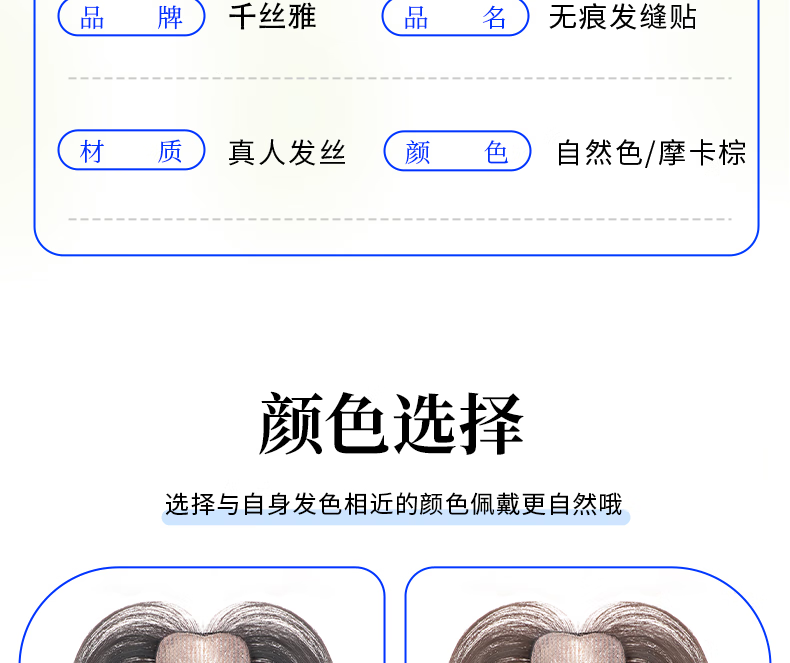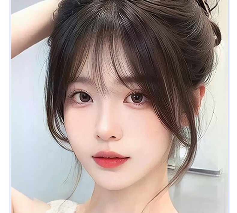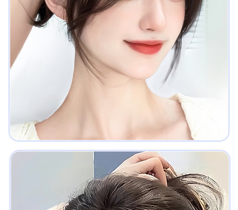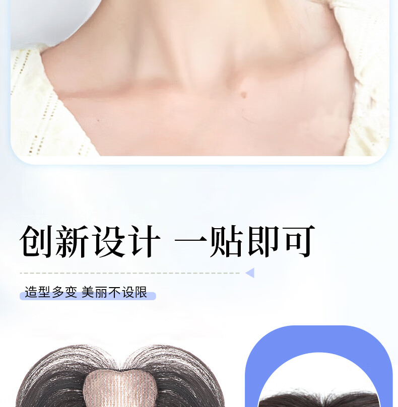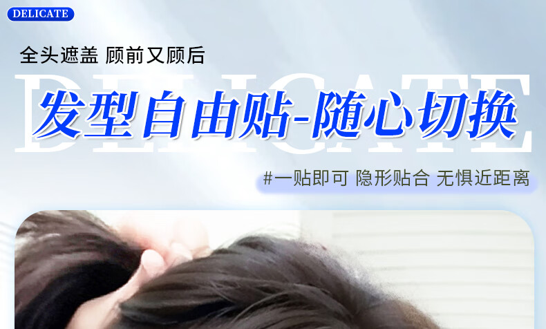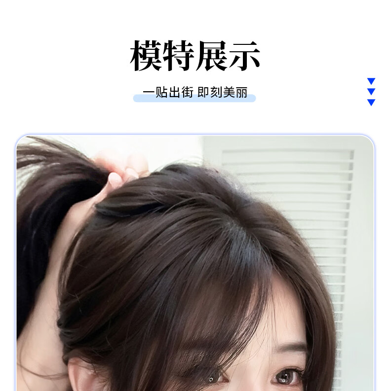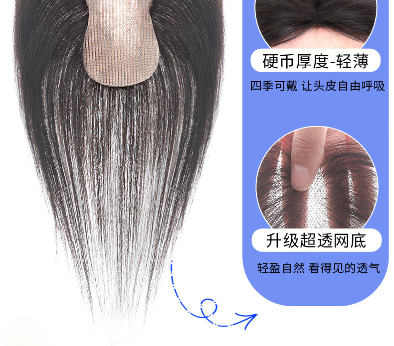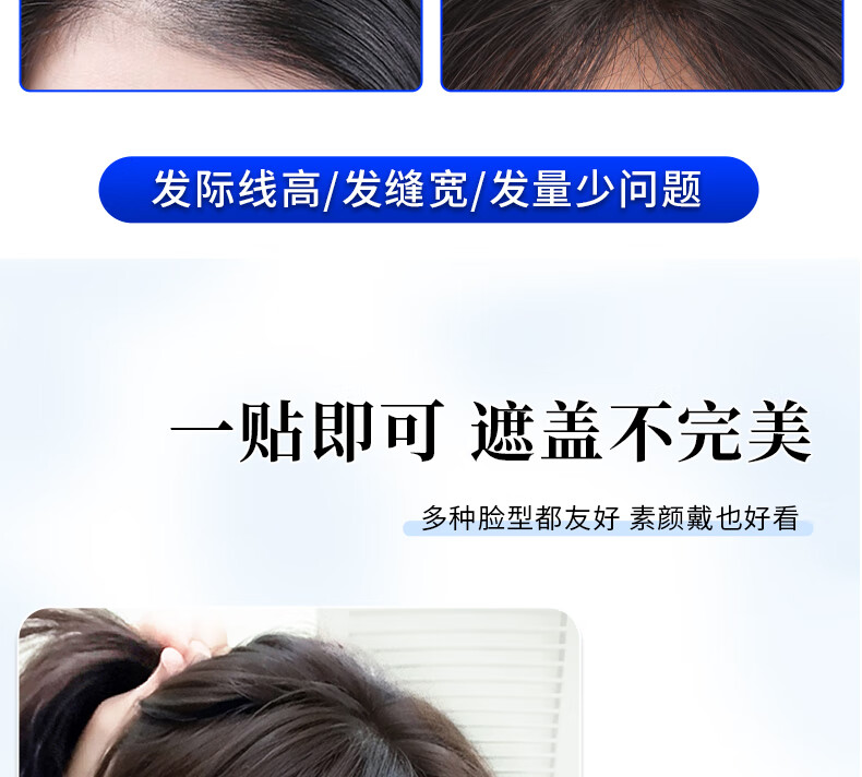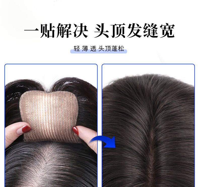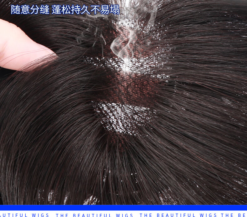 Qiansiya No Need to Hairpin Velcro Wig Women's Top Hair Replacement Fluffy Skull Top Natural Forehead Real Hair Bangs Replacement Full Head Coverage-Remove the Sticker 7*11 Natural Color Eight-Character Style 27CM