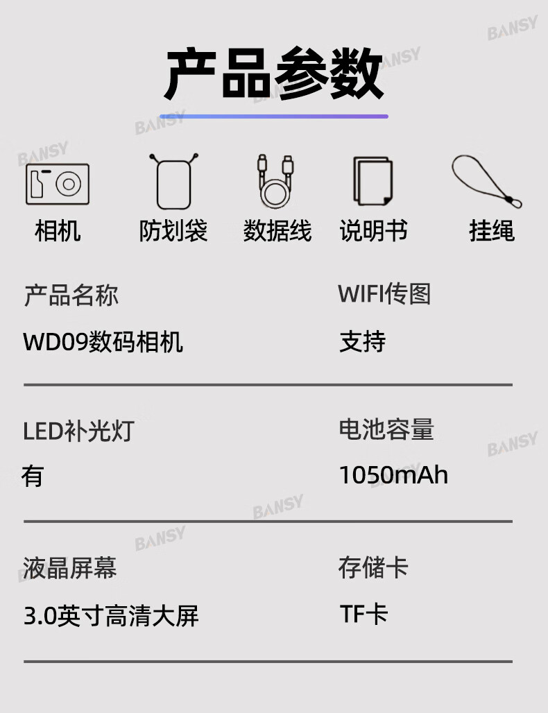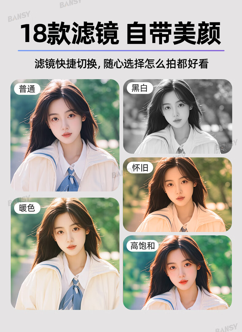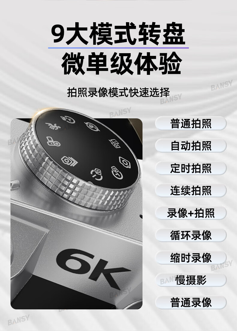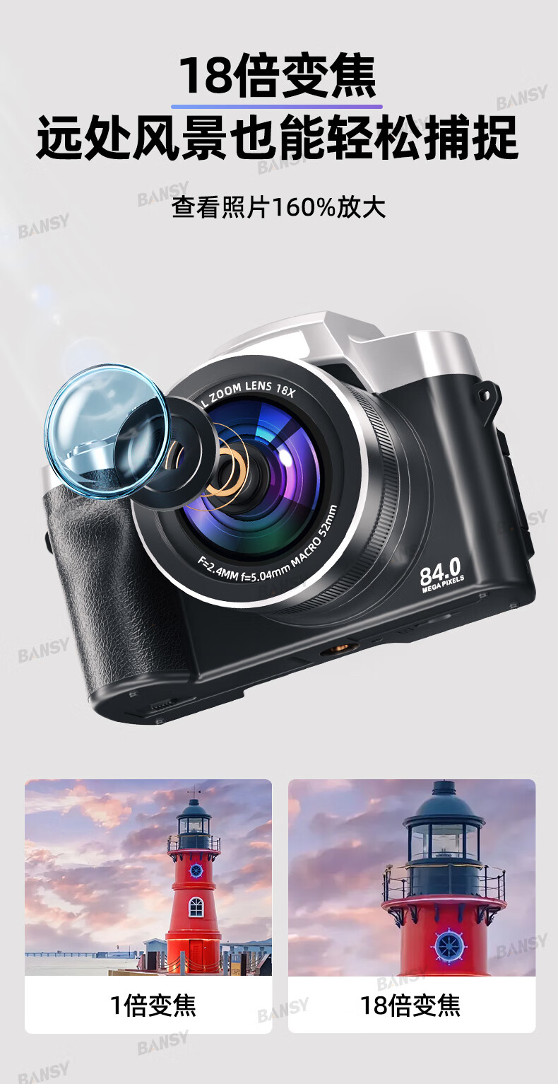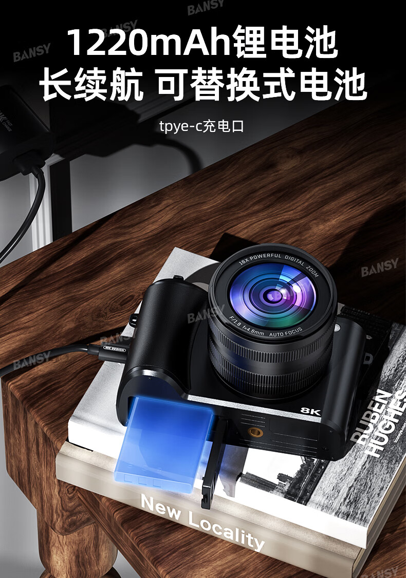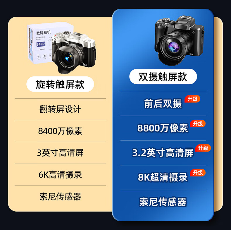 Bansy high-definition digital camera for photography and travel, entry-level 8K mirrorless camera for students, CCD replacement for high pixels, transferable to mobile phone, high school vlog shooting, SLR portable, 3.2-inch dual camera + 128G card + 8800W + 8K video recording, Sony sensor | Beauty filter | WiFi image transmission | Fill light