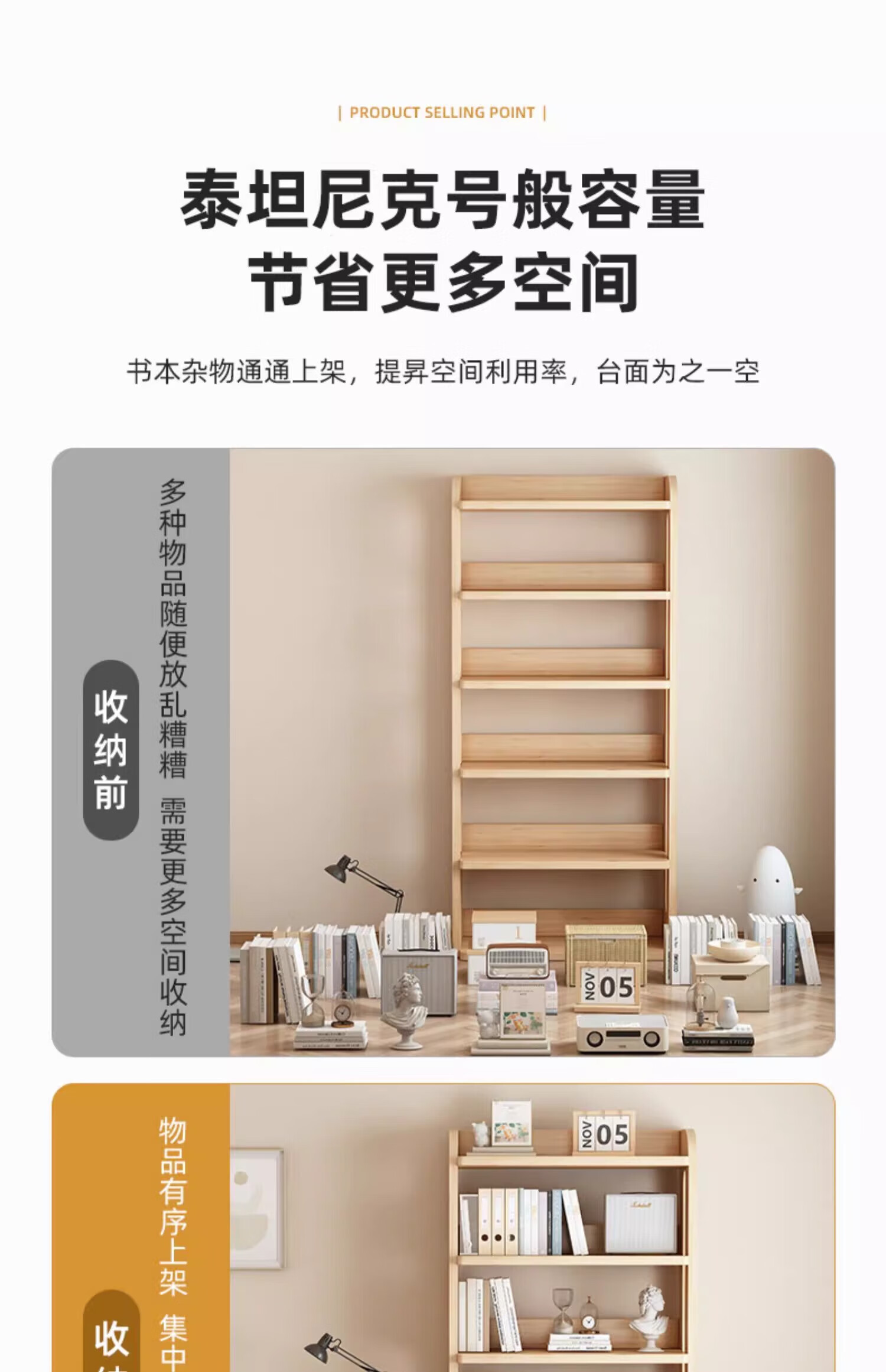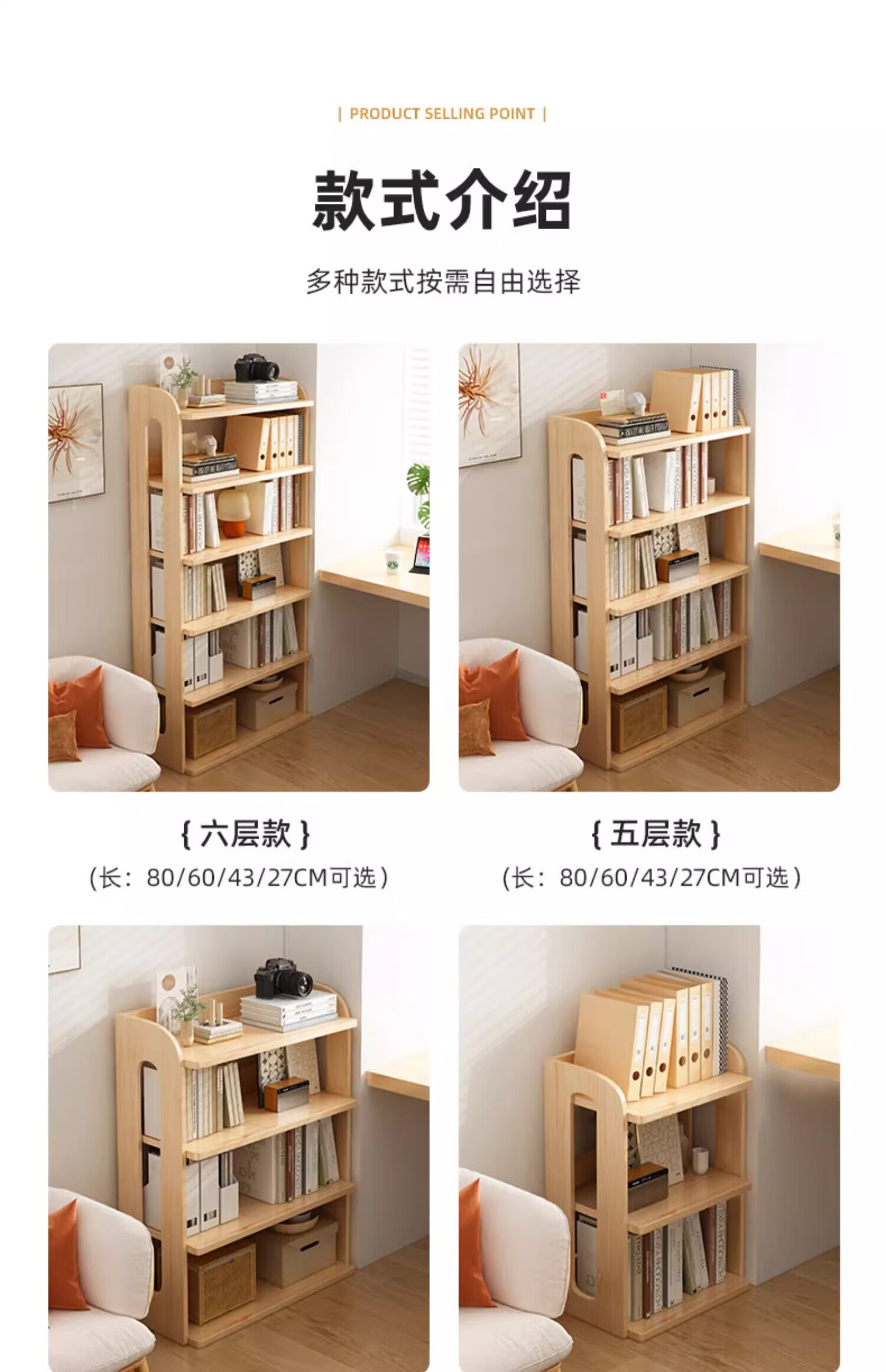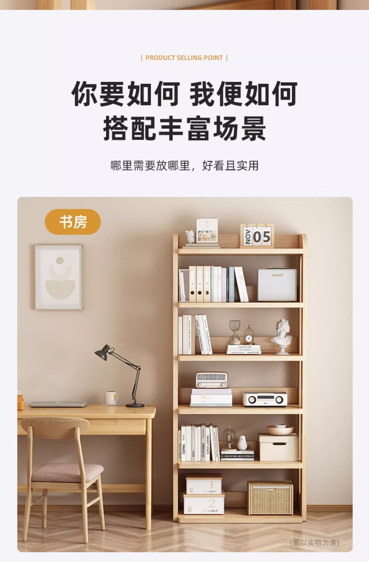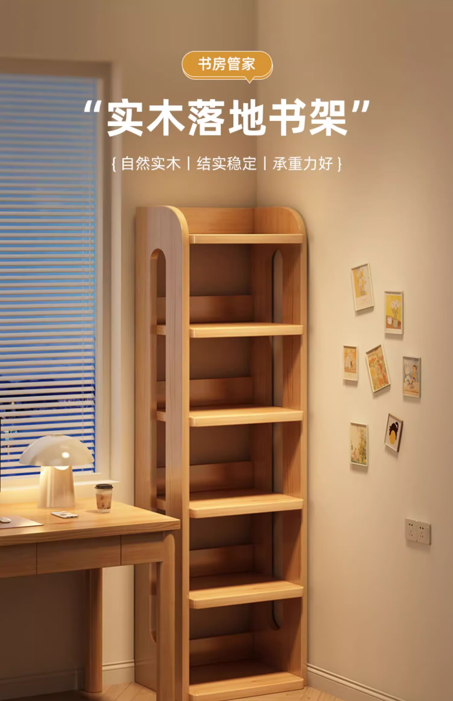 Solid wood multifunctional bookshelf and storage rack, floor-standing integrated wall-mounted corner pine wood storage rack for living room, student bedroom, pine wood - 6 layers, wood color 80*26*160CM, assembly - self-installation - with installation tools