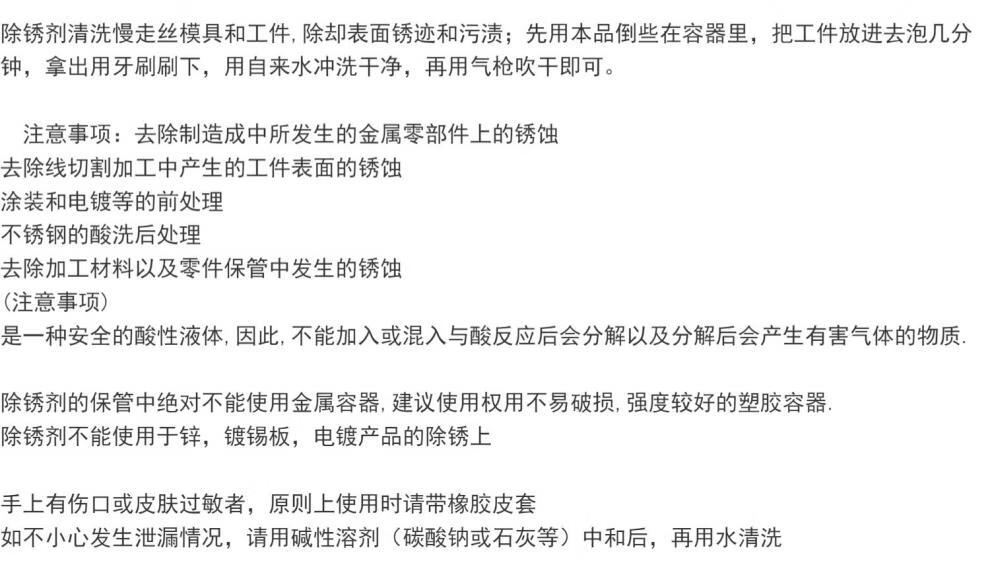 Rust remover line Wire cutting slow wire rust removal water cleaning agent oxalic acid line Wire cutting rust remover line Wire cutting accessories Jiangsu, Zhejiang, Shanghai and Anhui K200_20L_1 barrel unit price