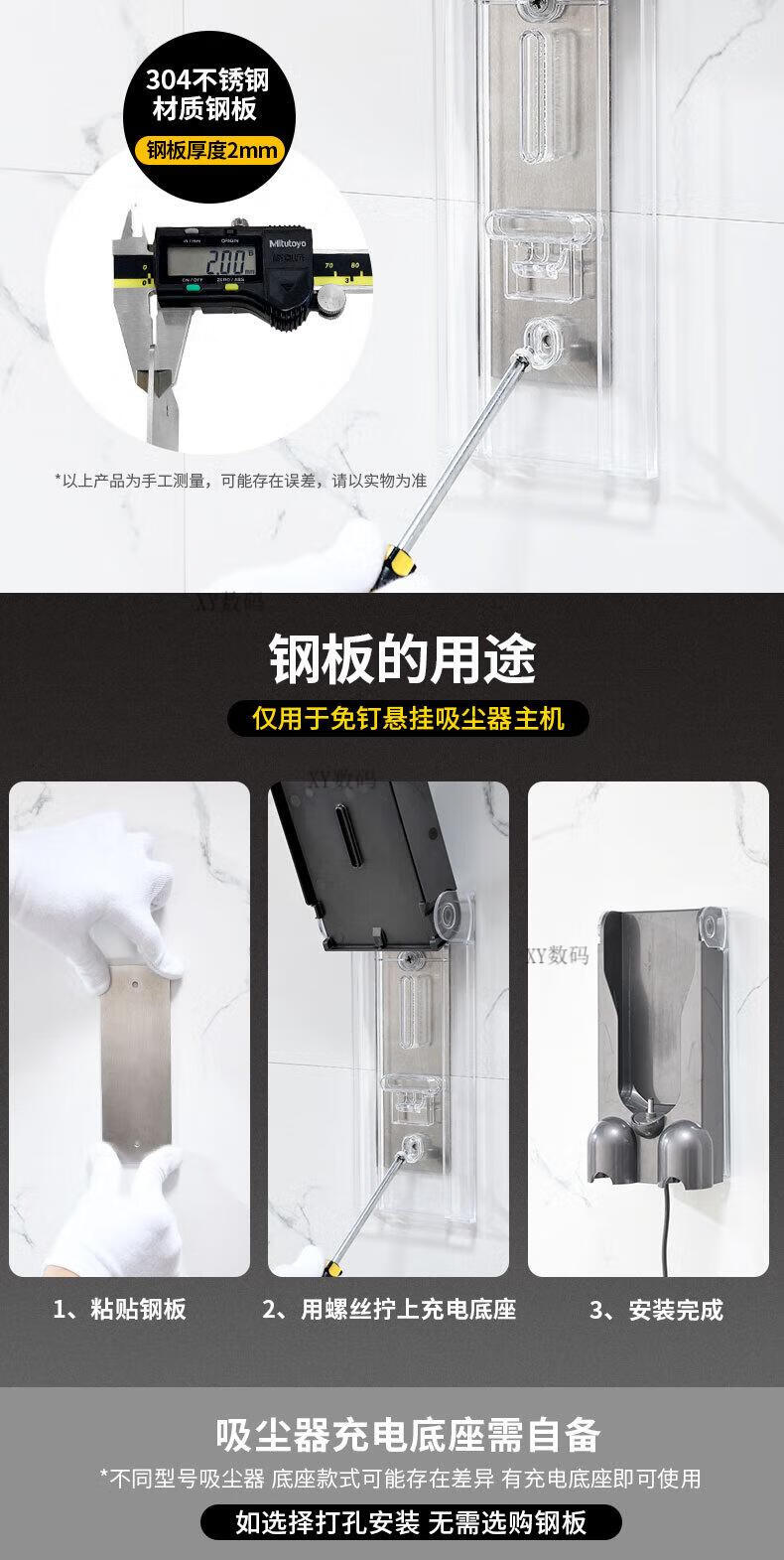 Xiulei (XIULEI) is suitable for Dyson v8 bracket Dyson vacuum cleaner storage rack wall-mounted punch-free bracket V7V8V0VV2V5 suction nail-free steel plate can be nail-free storage charging base