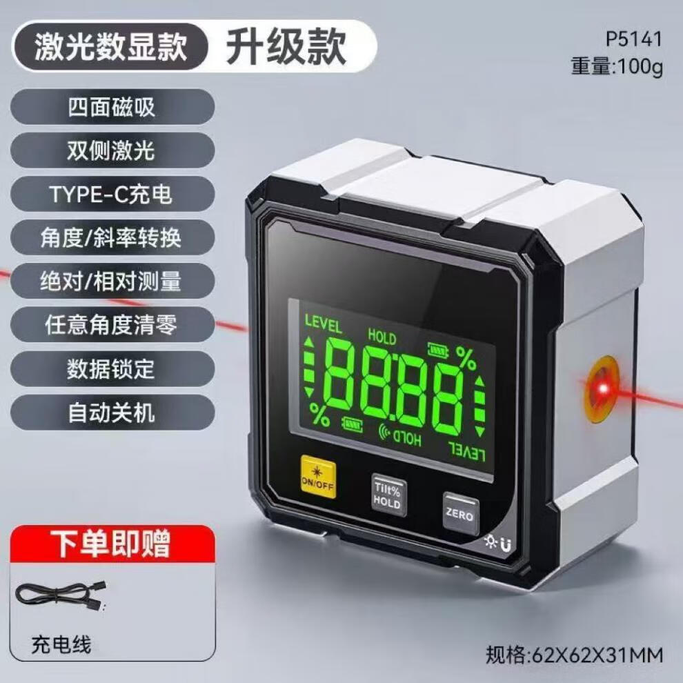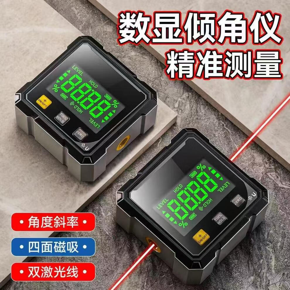 Weici high-precision digital display inclinometer with magnetic angle slope measuring instrument laser electronic level multi-functional slope ruler flagship upgrade dual laser / four-sided strong magnet / aluminum alloy exterior