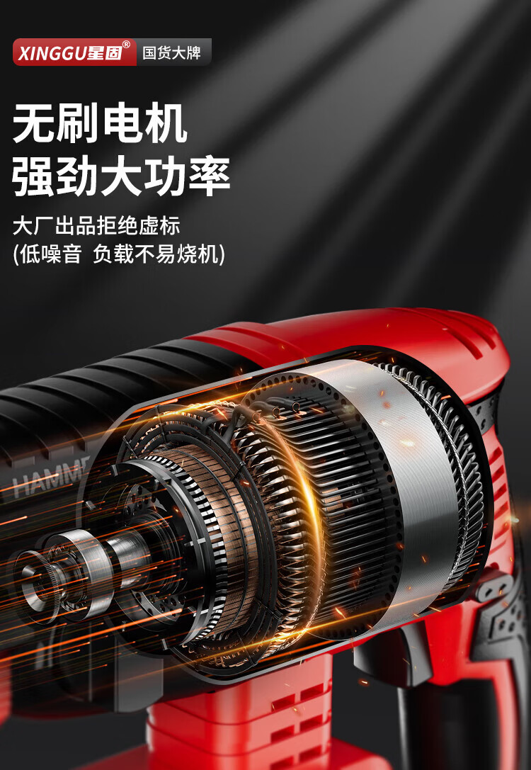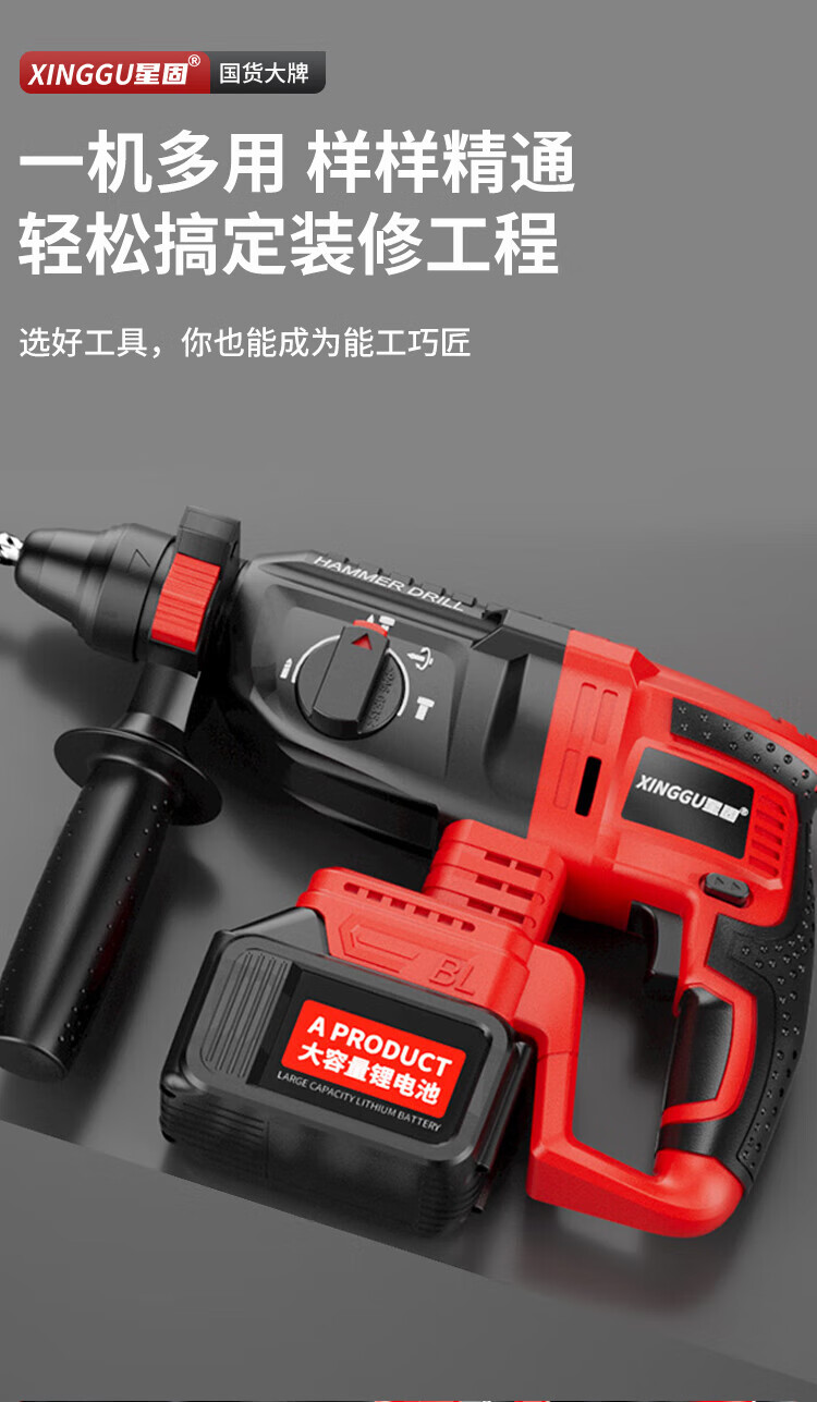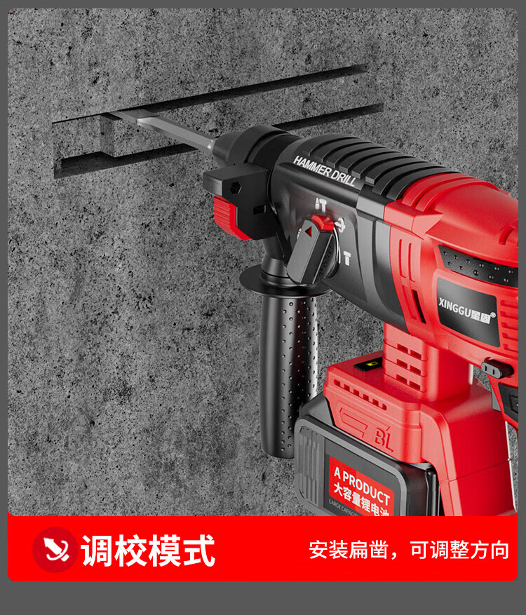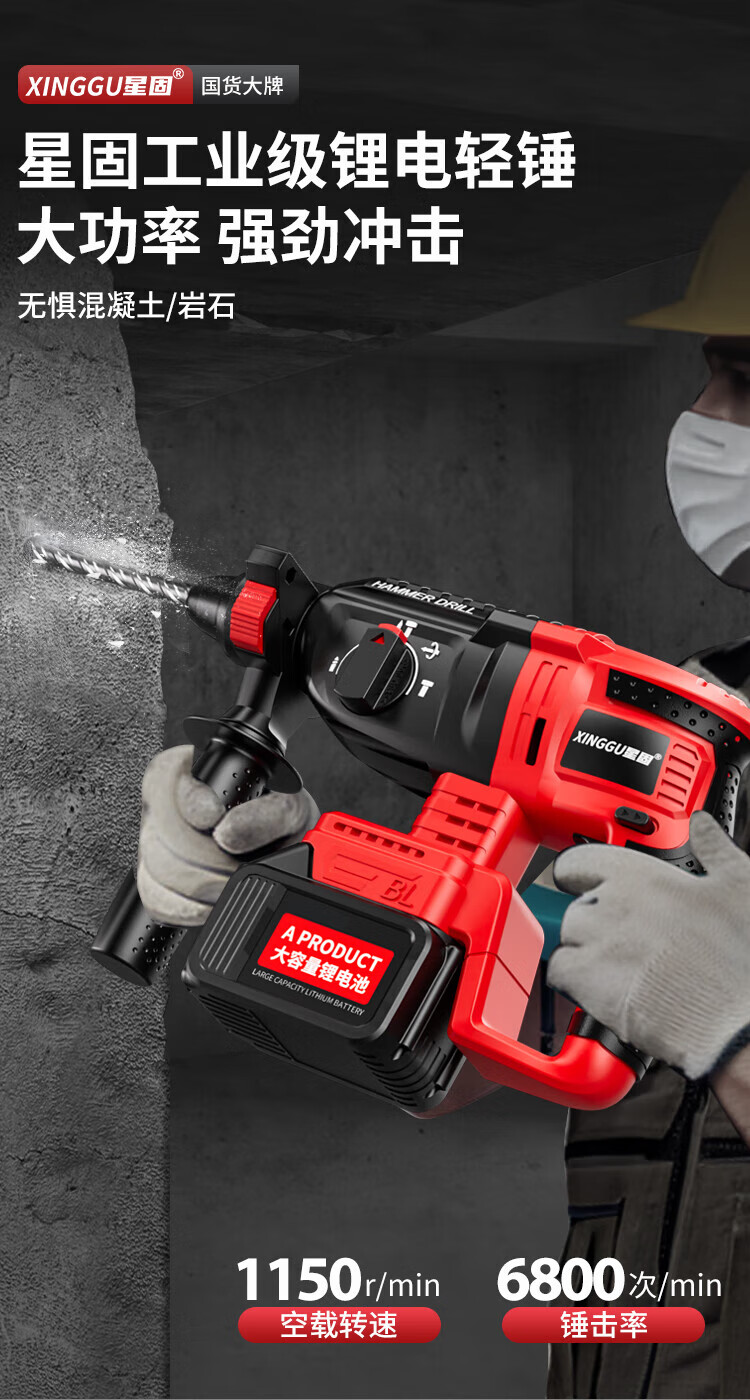 Xinggu Rechargeable Electric Hammer Brushless Lithium Impact Drill Electric Pick Three-Purpose Multi-Function Concrete Drilling Machine Demolition Grooving Machine Luxury Package丨15-section Dual Battery丨Long Battery Life
