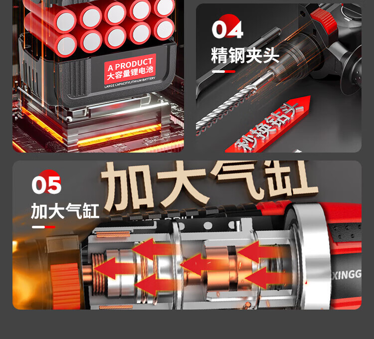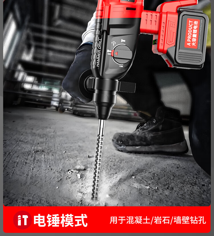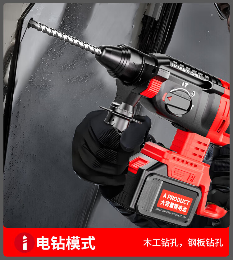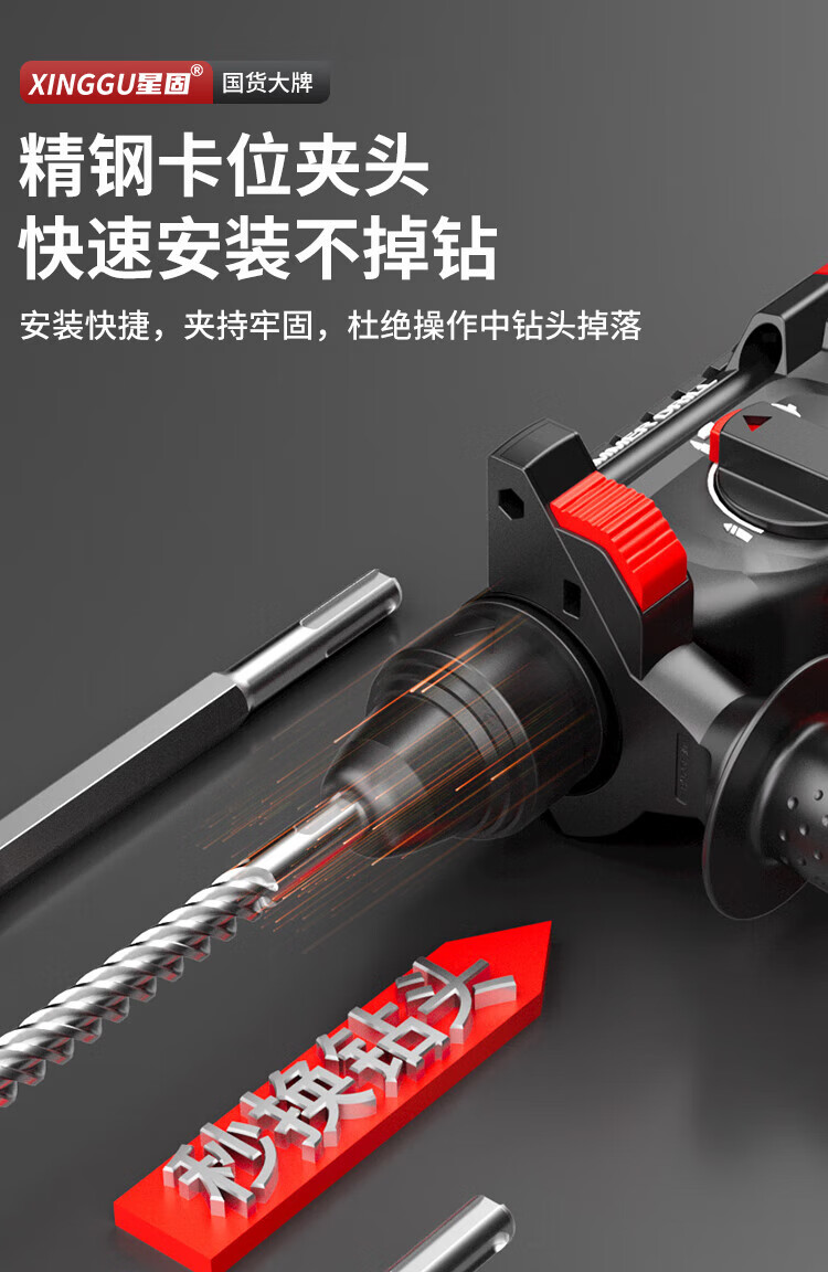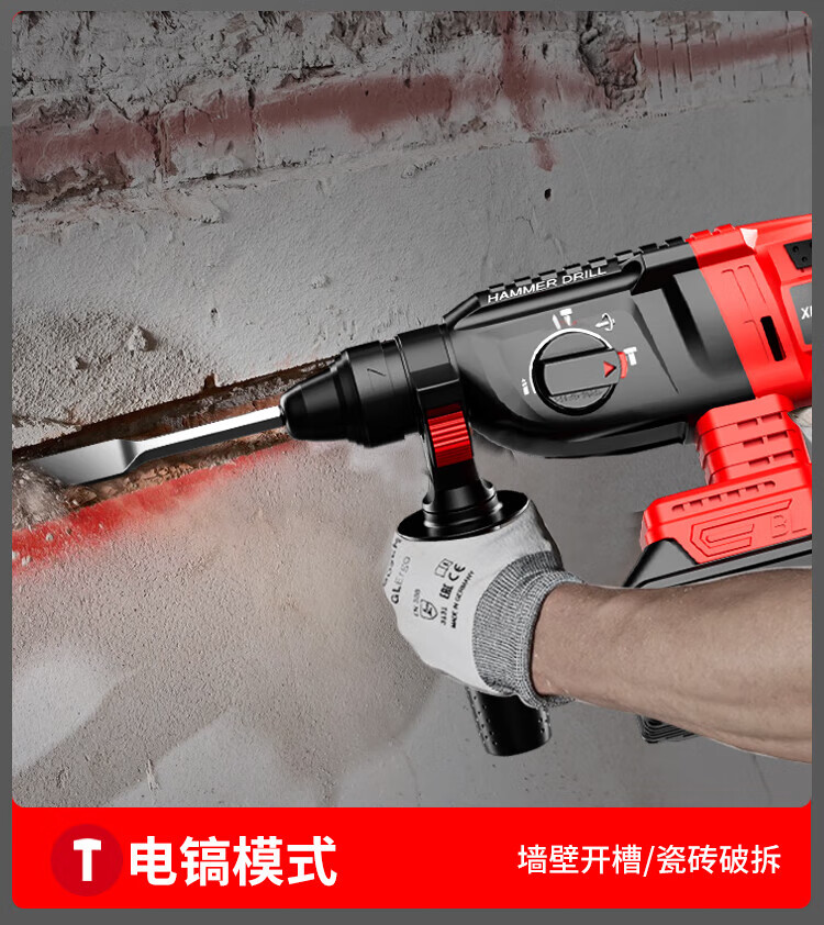 Xinggu Rechargeable Electric Hammer Brushless Lithium Impact Drill Electric Pick Three-Purpose Multi-Function Concrete Drilling Machine Demolition Grooving Machine Luxury Package丨15-section Dual Battery丨Long Battery Life