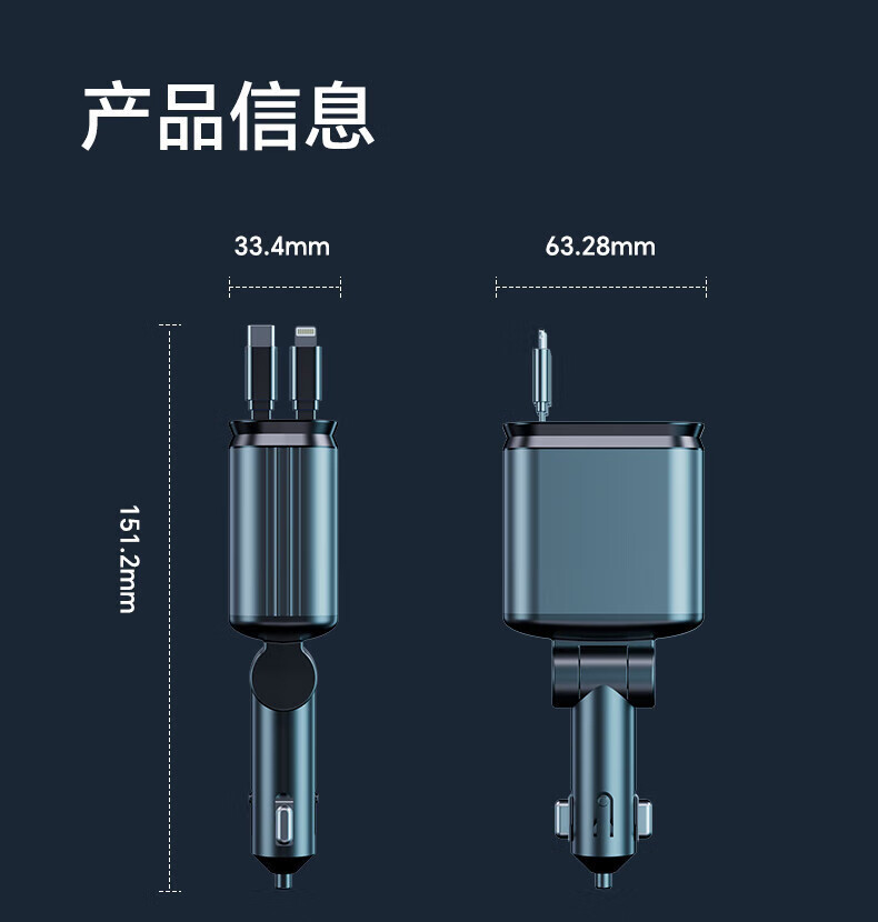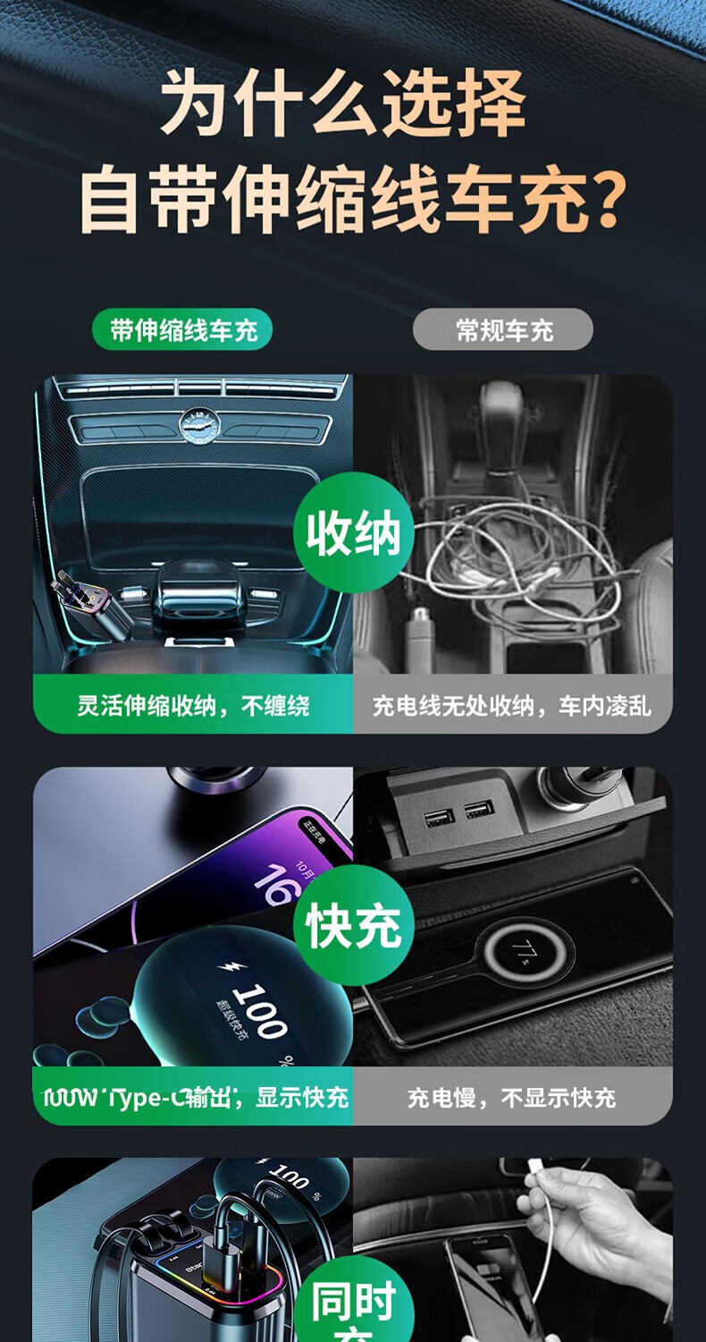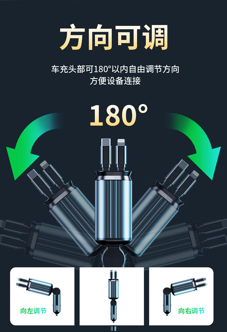 Starry sky top car charger 120W fast charging car charger with retractable cord ambient light car cigarette lighter 2025 model *TYPE-C+ starry sky top+fast